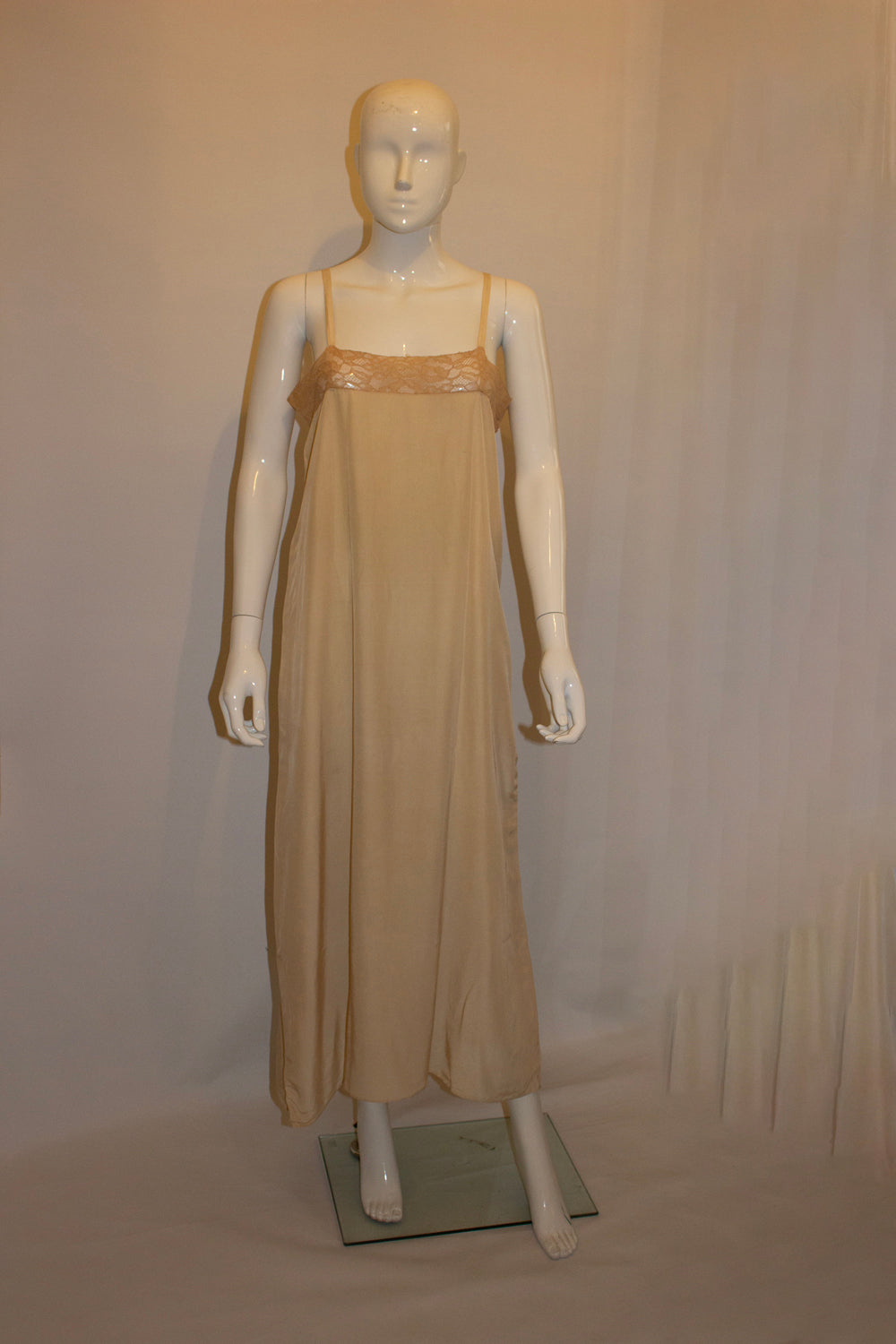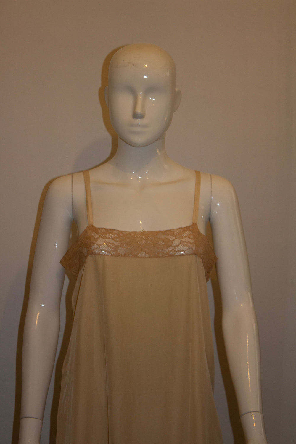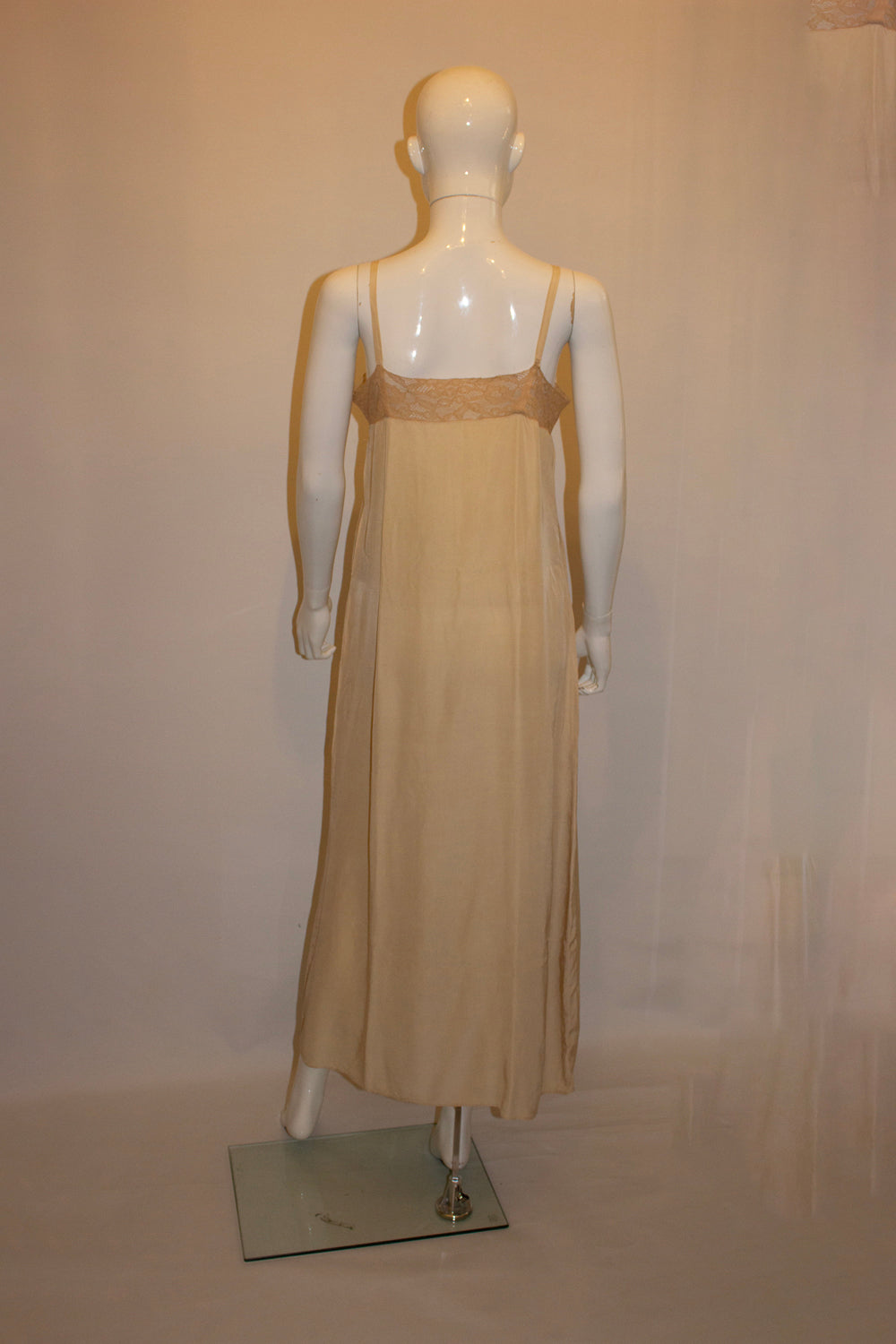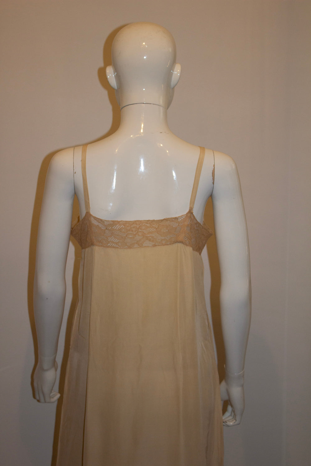 Vintage Pale Coffee Colour Silk Slip with Lace Detail.