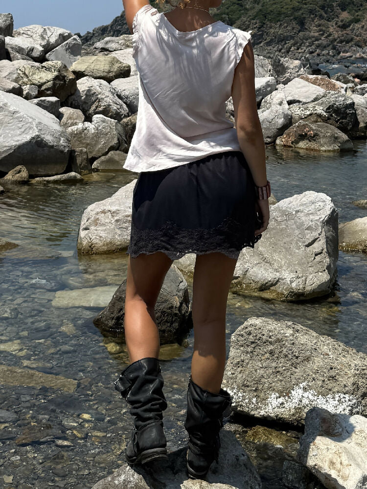Vintage pure silk sleeveless shirt in soft blush with a fluid draped neckline and relaxed fit. Lightweight, breathable, and effortlessly elegant — perfect for summer evenings or layering.