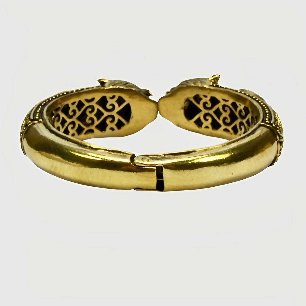 BRASS ORNATE TIGER'S HEADS BANGLE WITH LAPIS LAZULI
