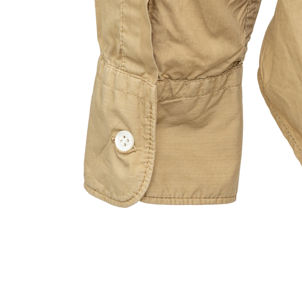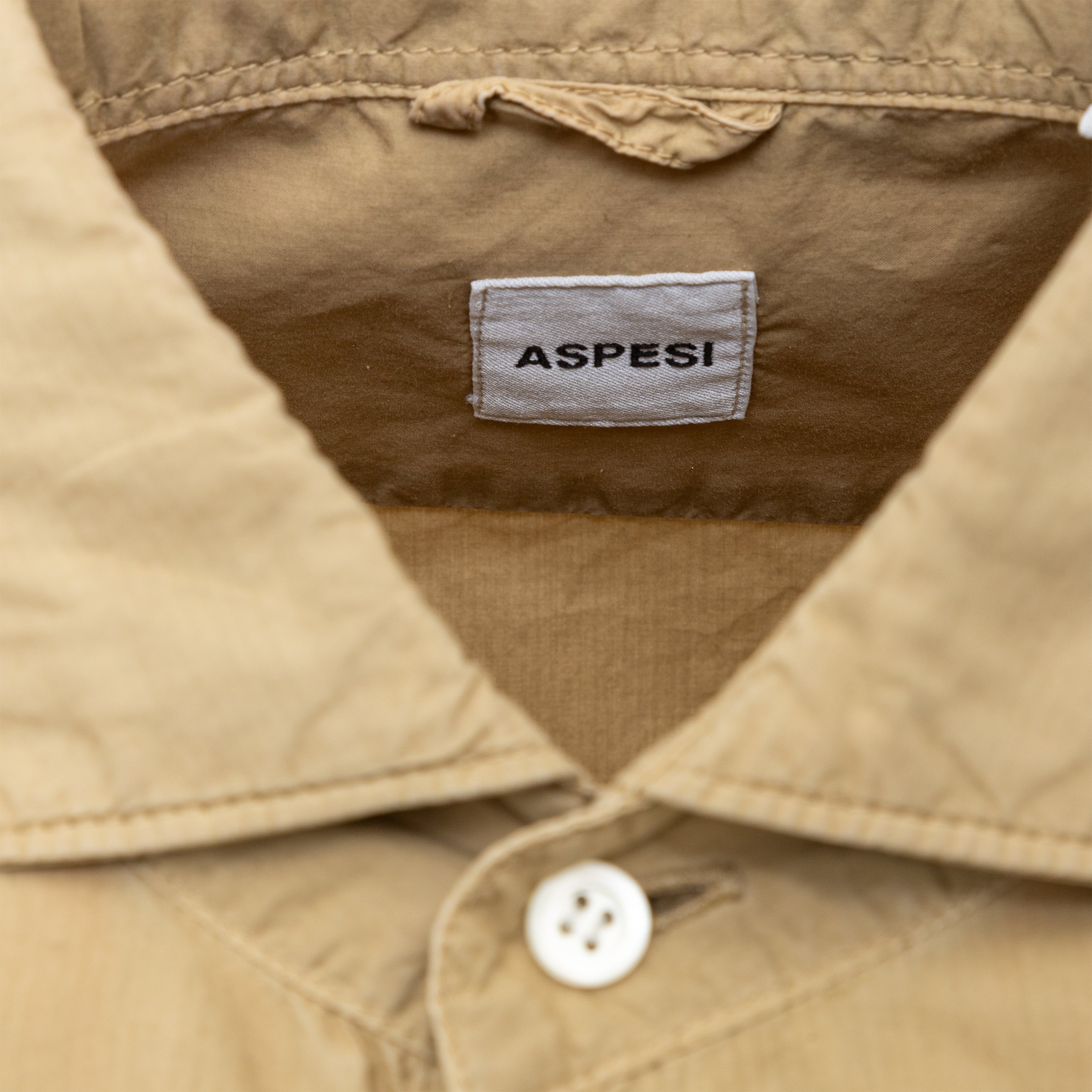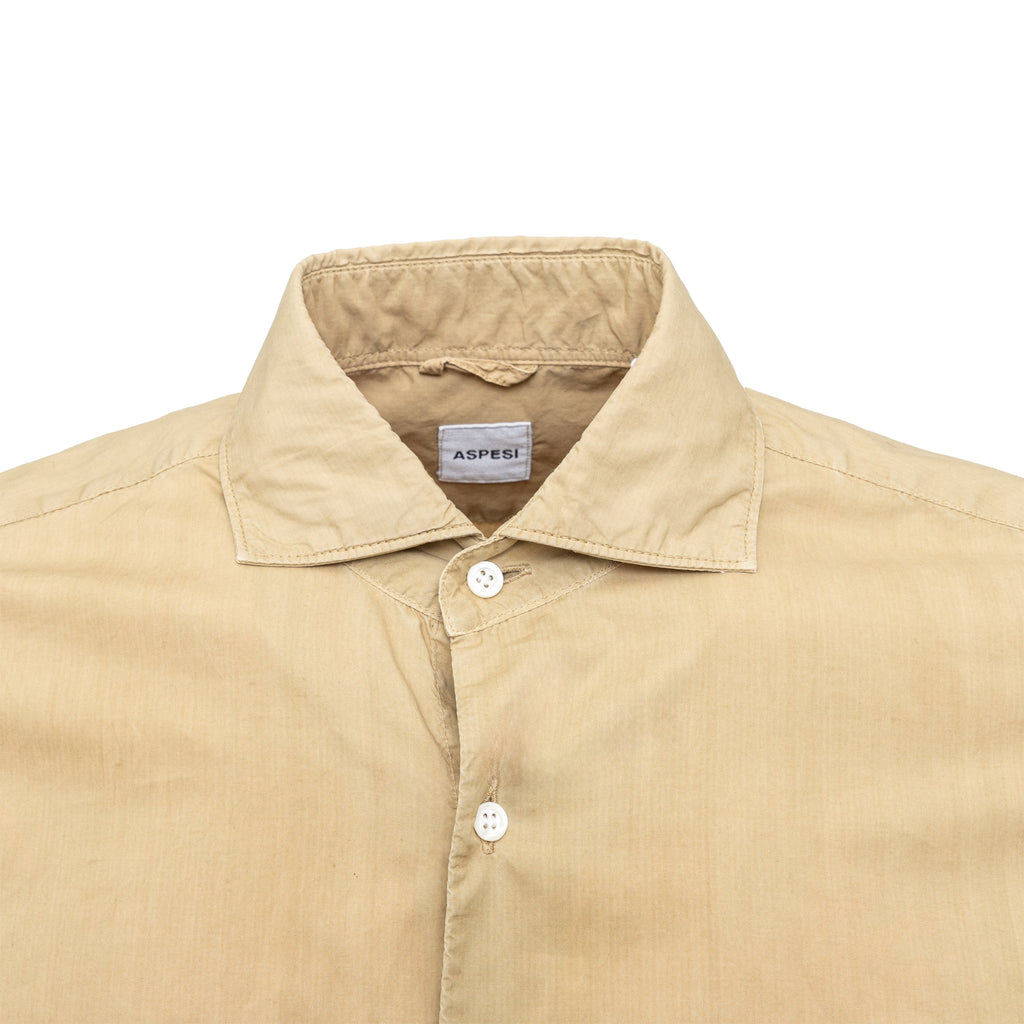 This Aspesi shirt is a wardrobe essential for summer. Crafted from 100% cotton, this light khaki button down shirt features a collar and cuff for a polished look. A versatile piece that pairs well with any outfit for any occasion.
