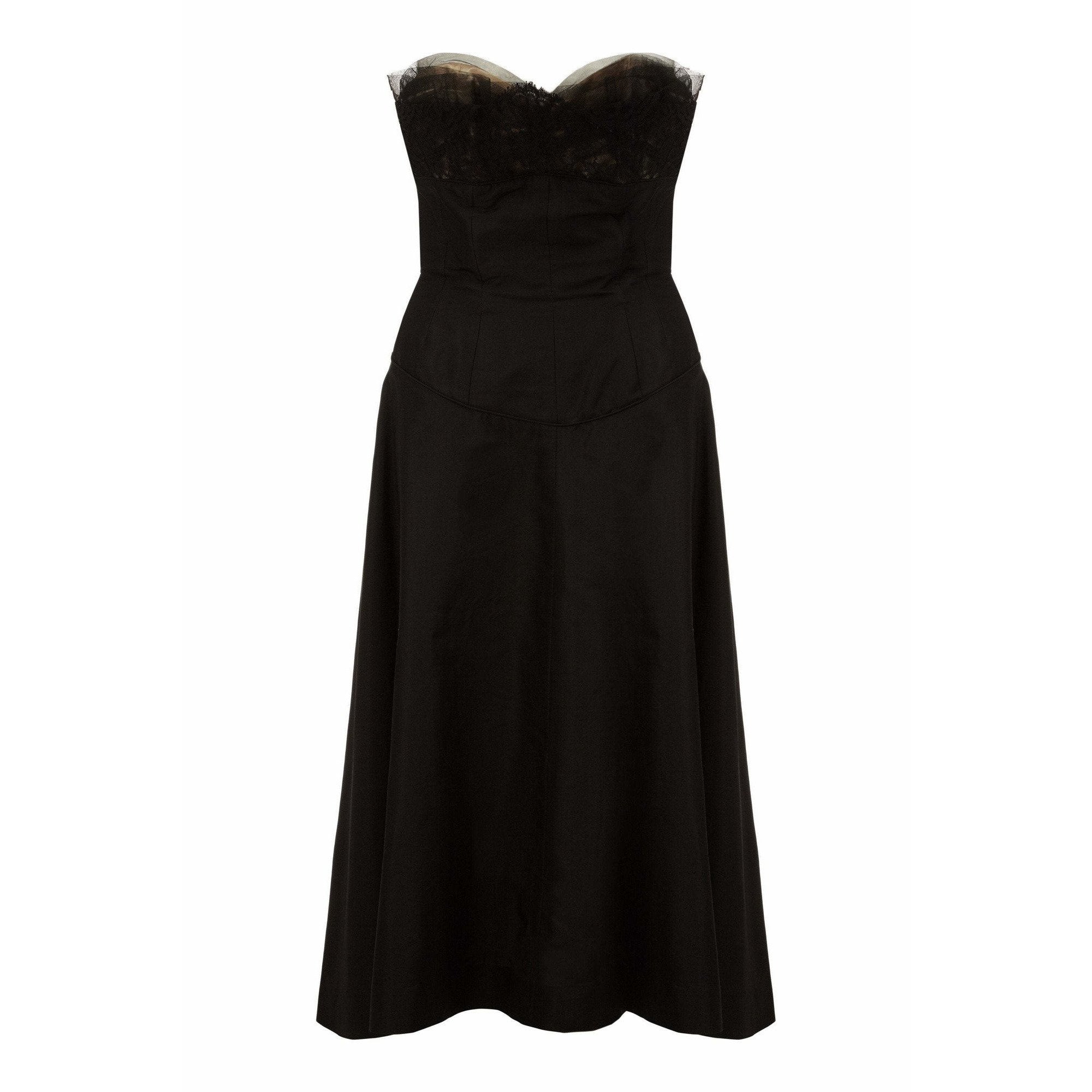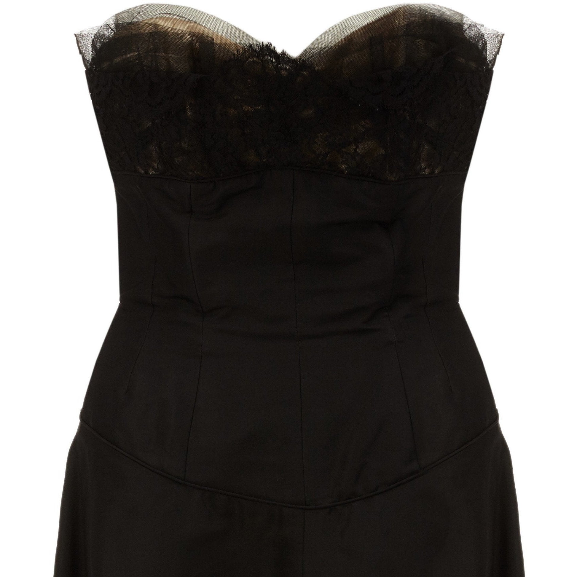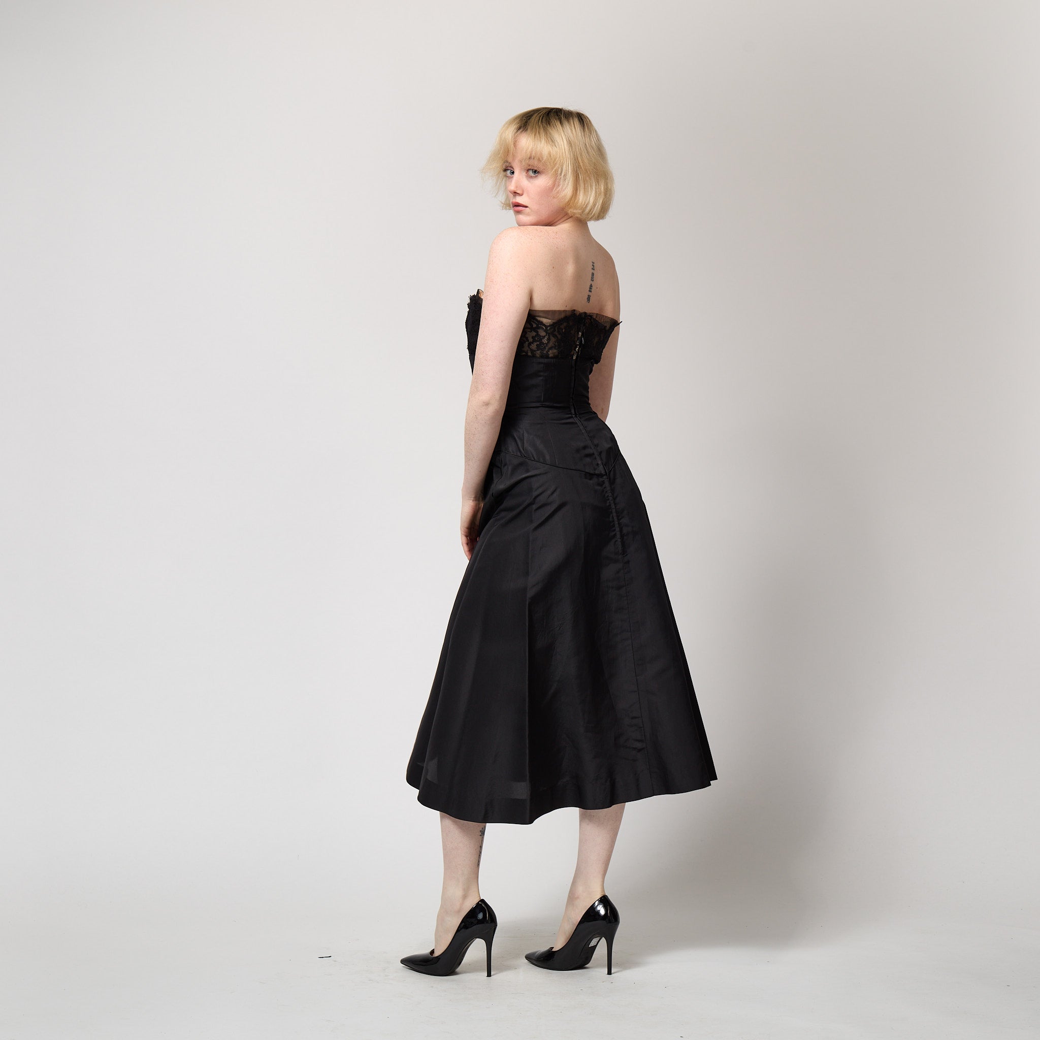 1950s Black Strapless Dress With Sweetheart Neckline and Lace Trim