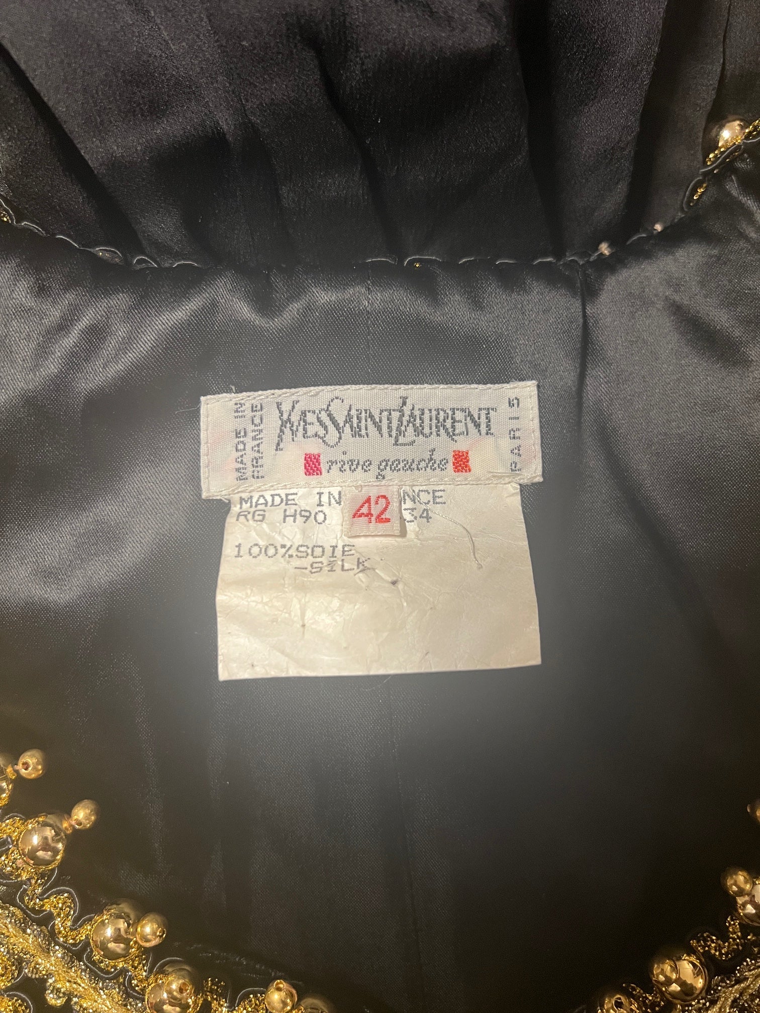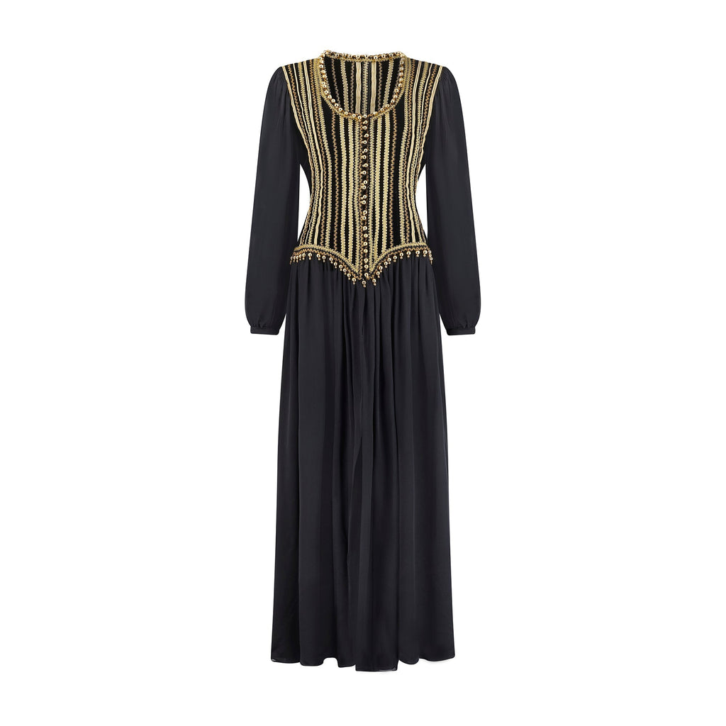 1990 Yves Saint Laurent Black Silk Dress with Gold Embellished Bodice