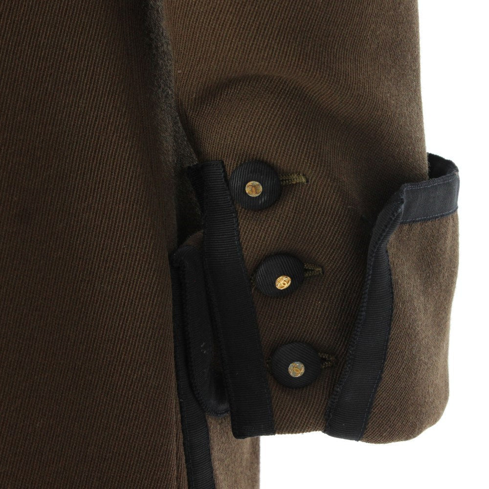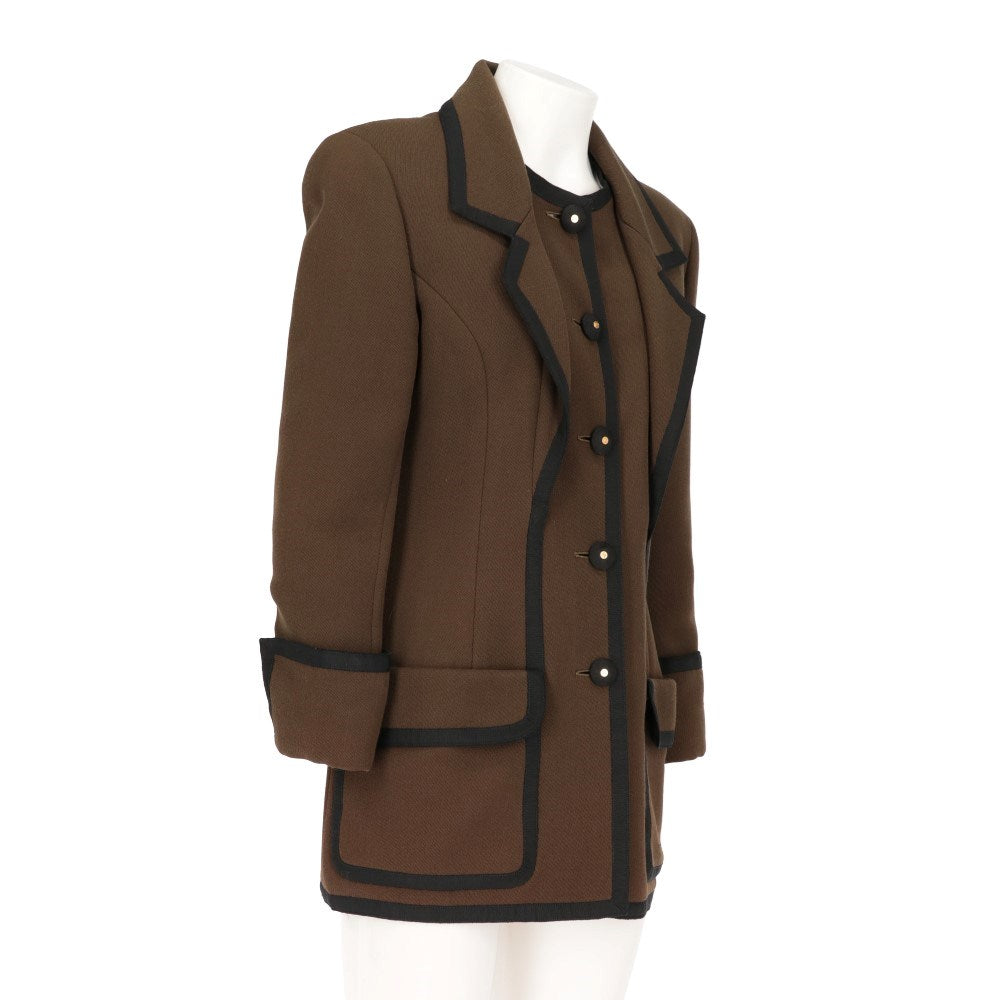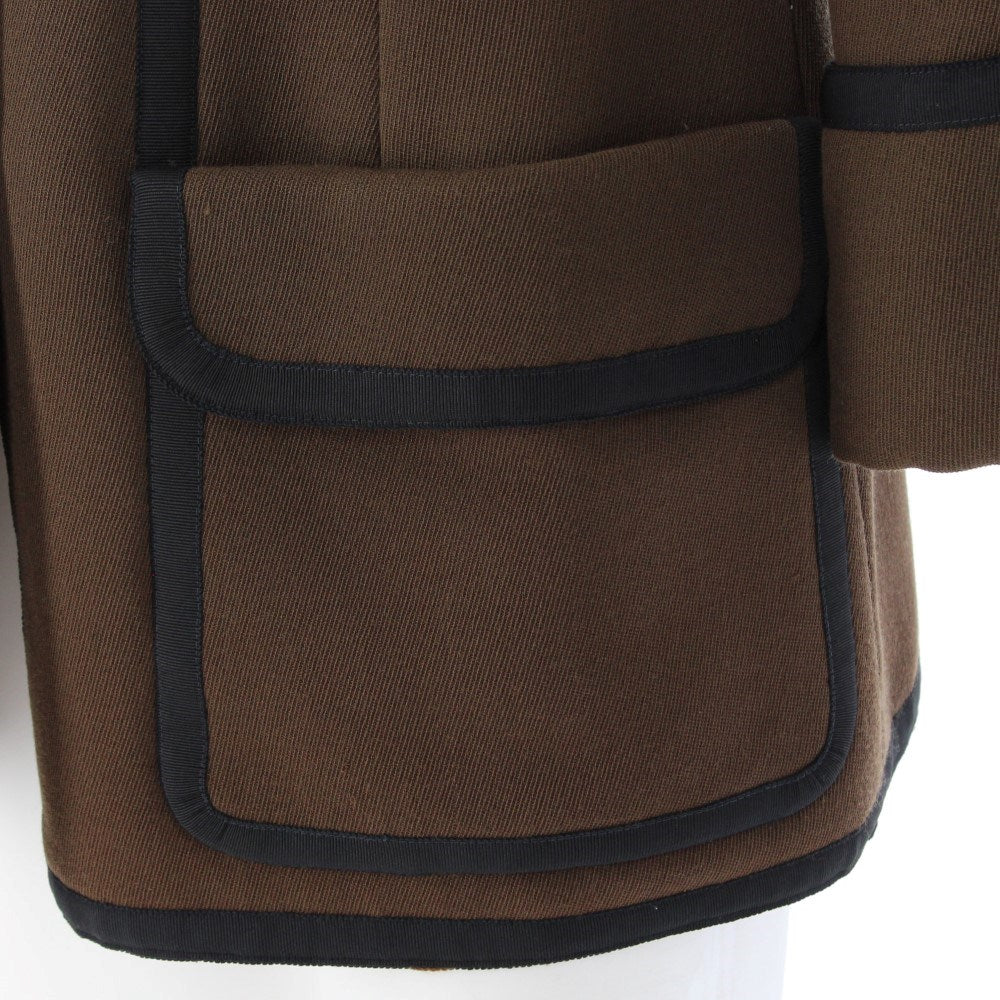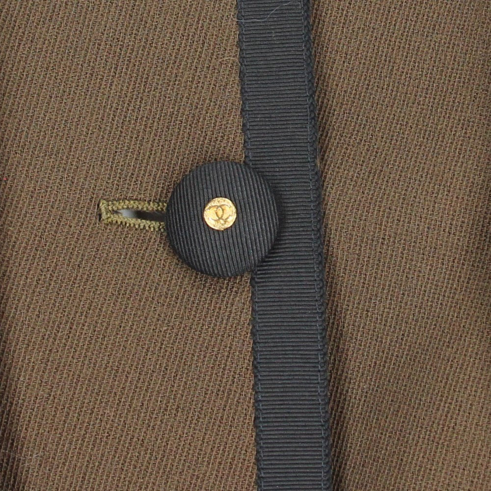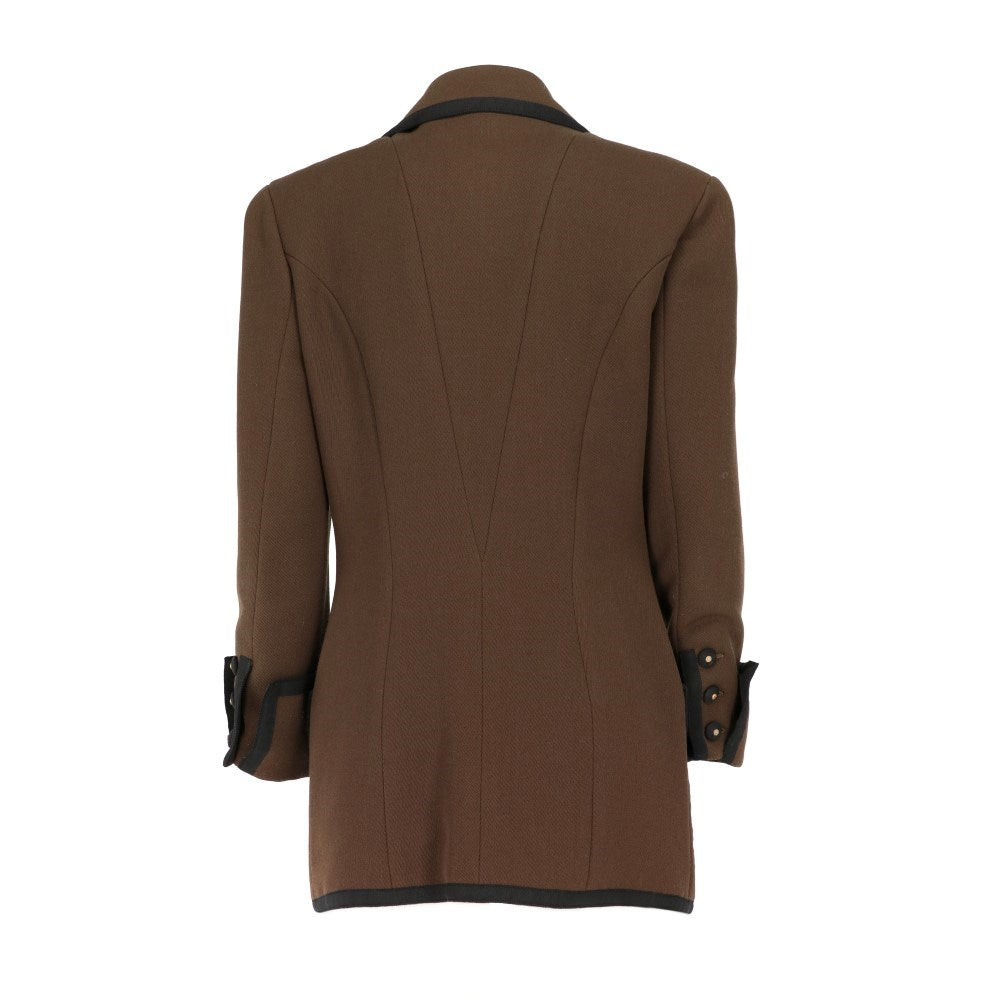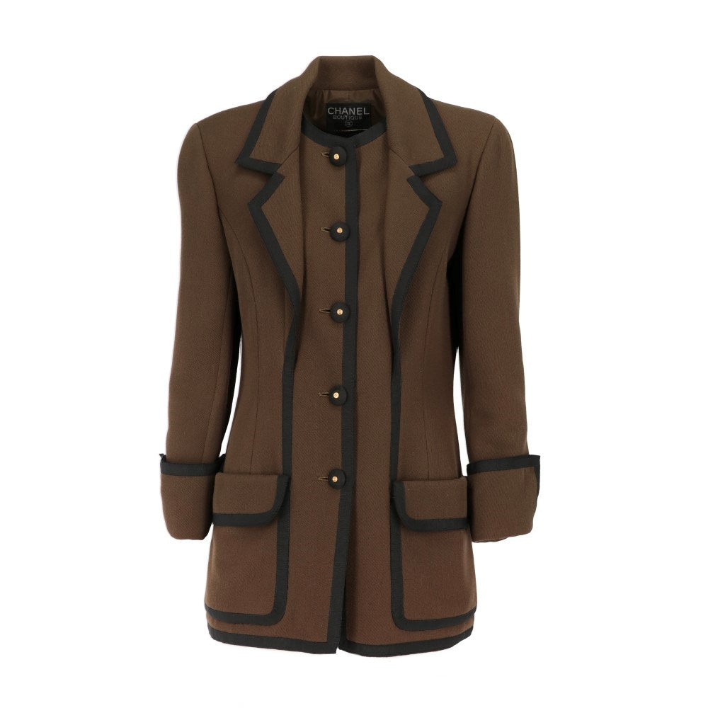 Chanel by Ratti brown wool blazer, with black details. Model from the 2000s. Round collar with applied lapel, central closure with logoed buttons and two front patch pockets. Cuffs with three buttons. Fully lined in logoed silk.