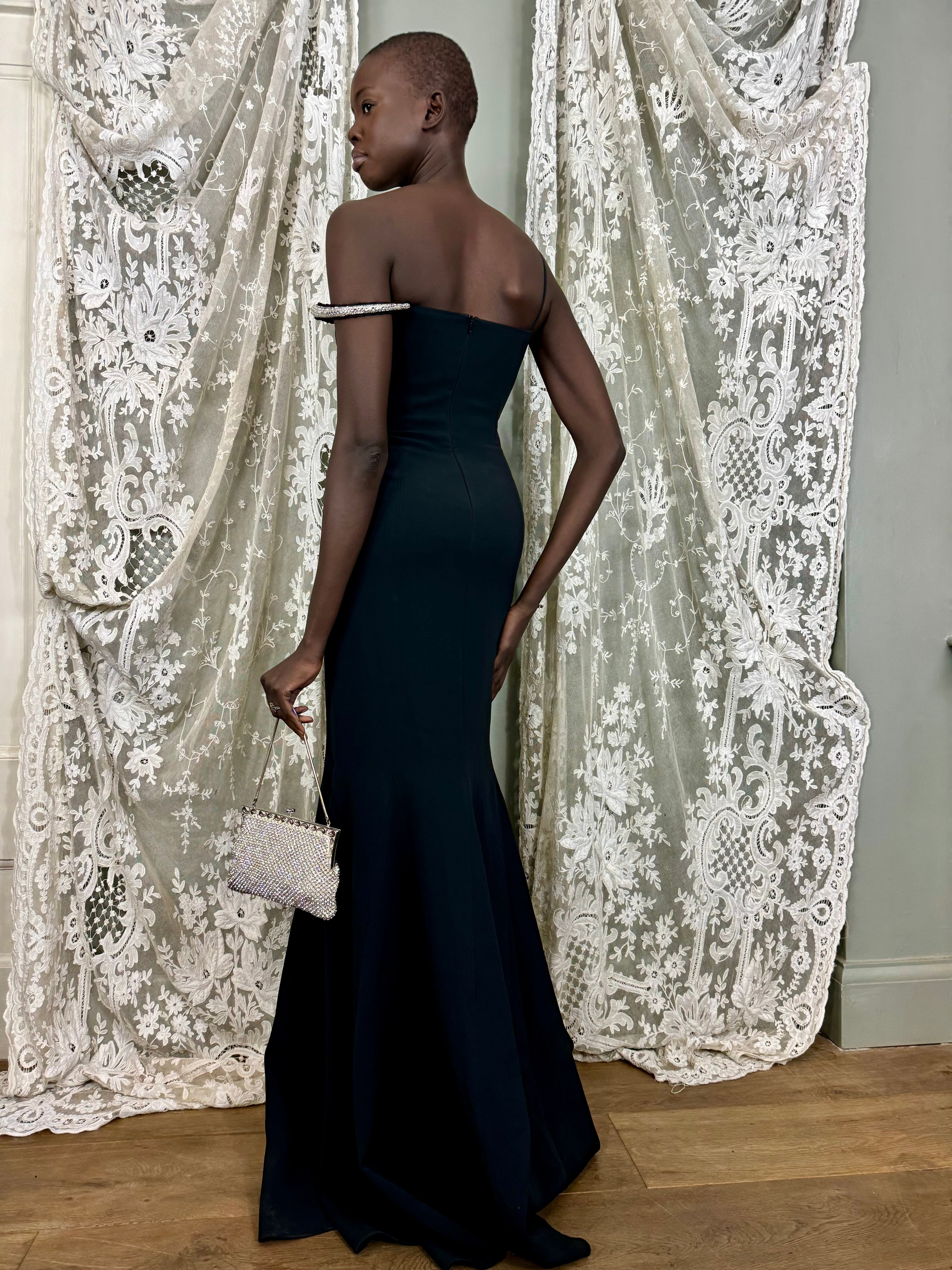 David Koma, black and rhinestone sculptural gown