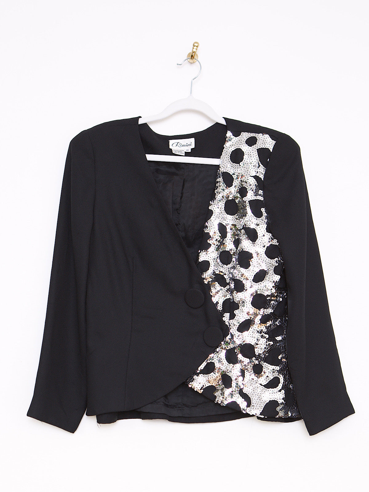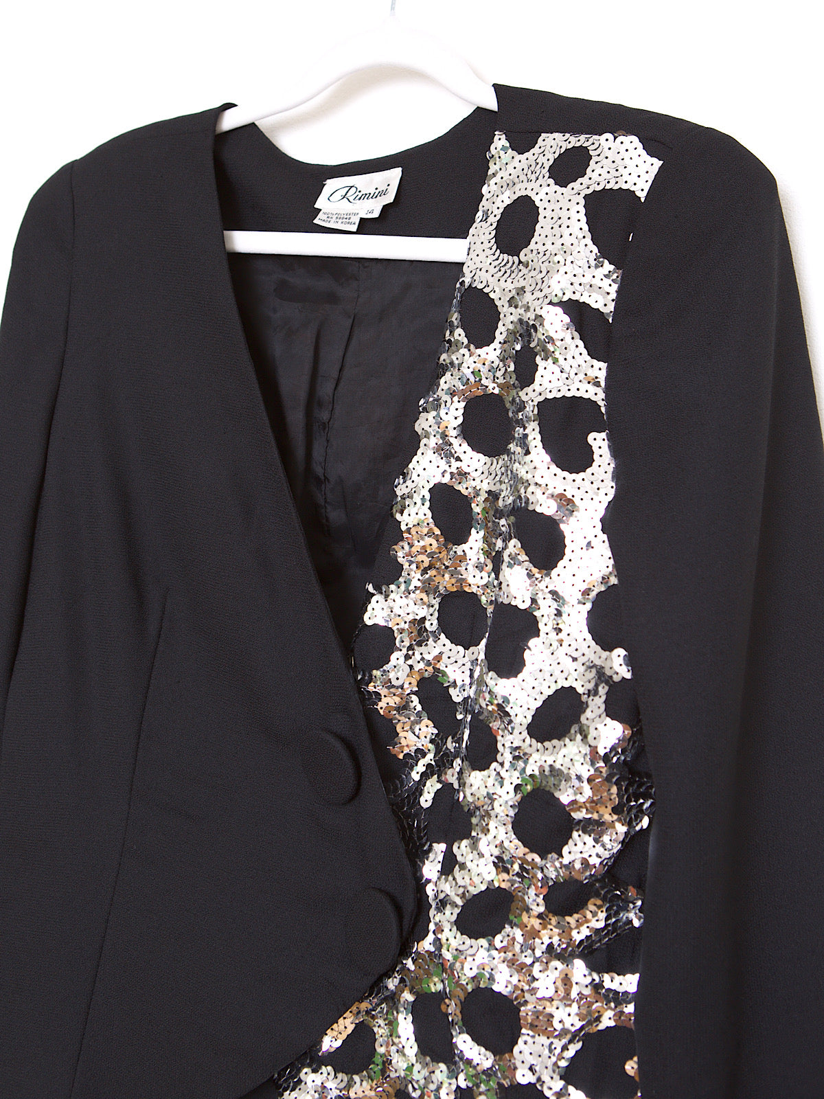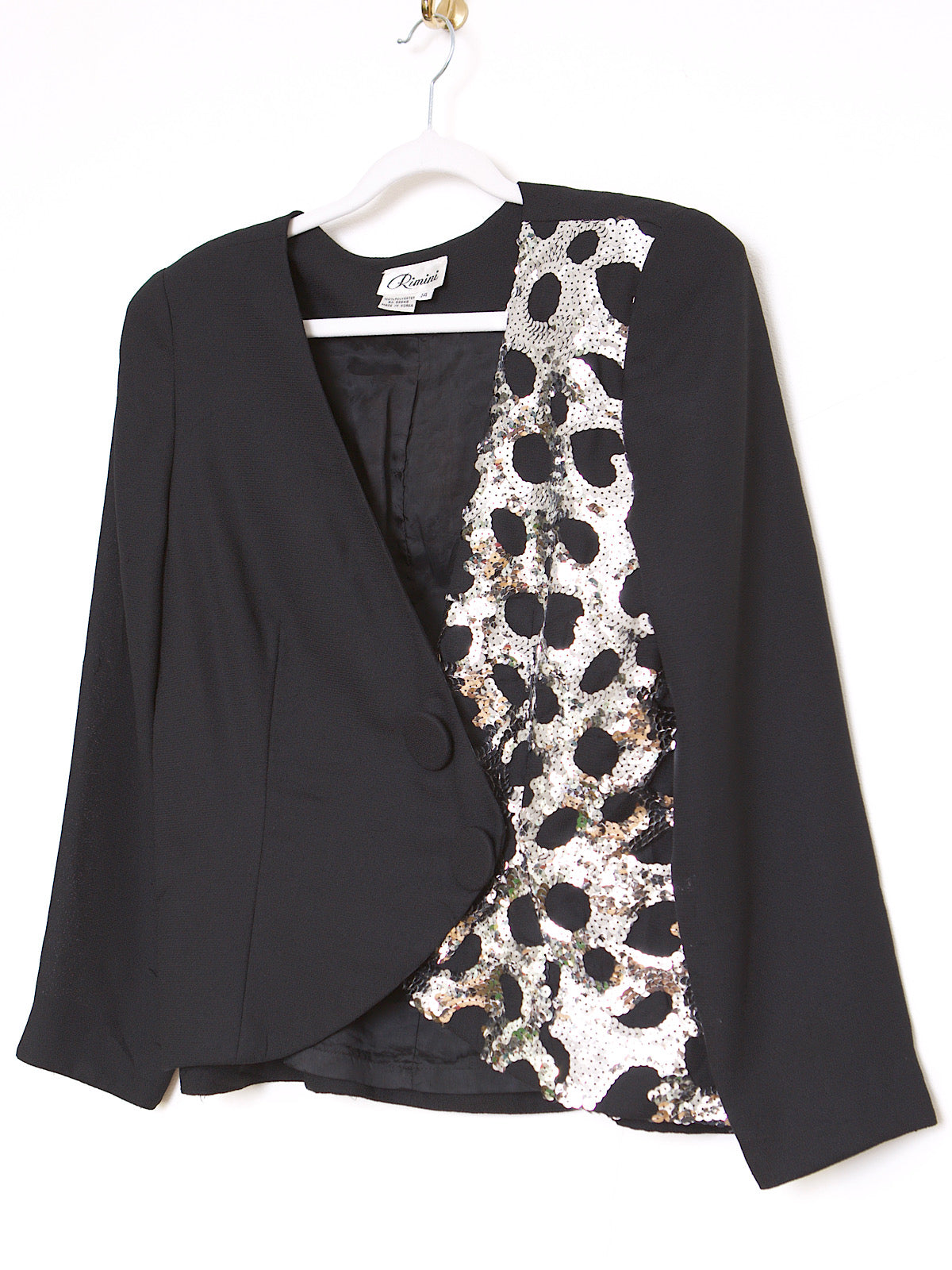 VINTAGE BLACK SILVER SEQUINS FITTED BLAZER