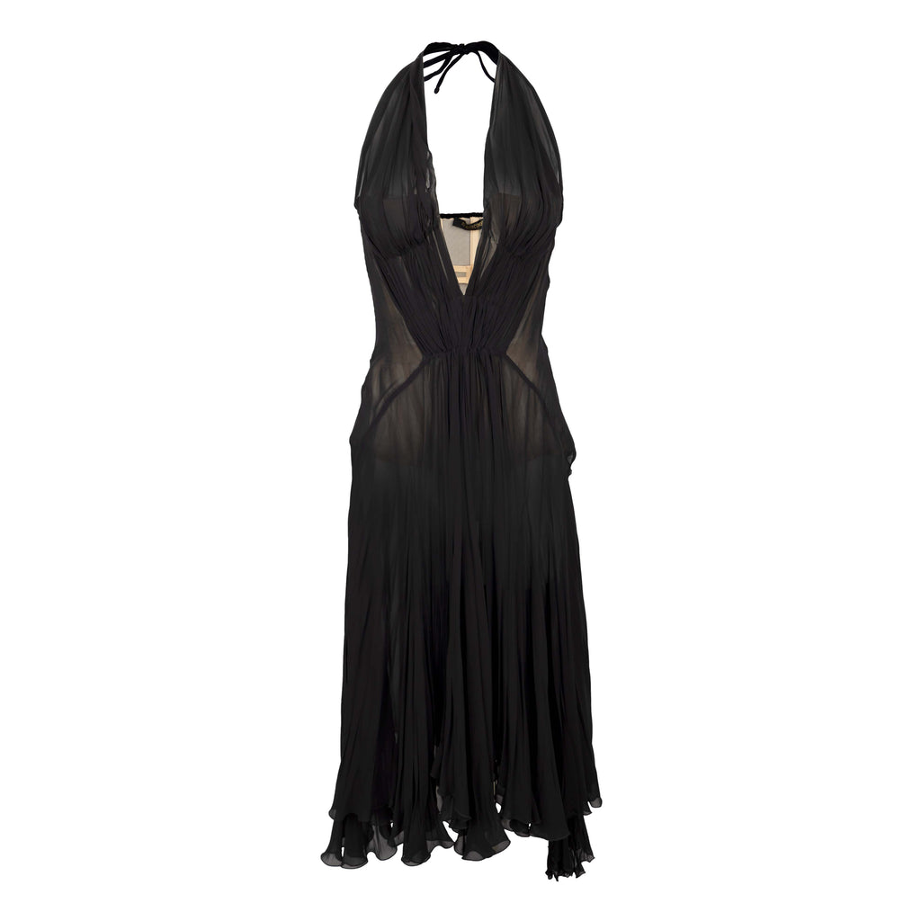 Roberto Cavalli Black Plunge Neck Corset Dress - '00s