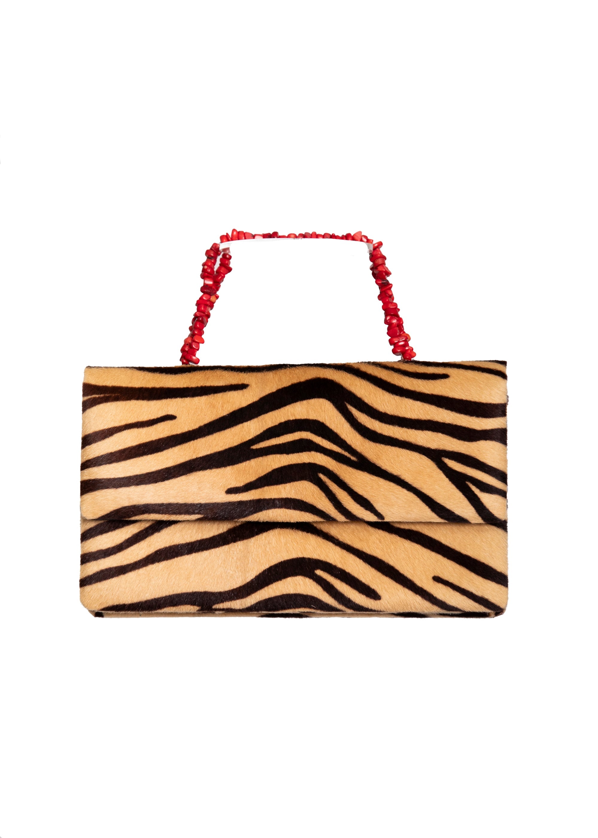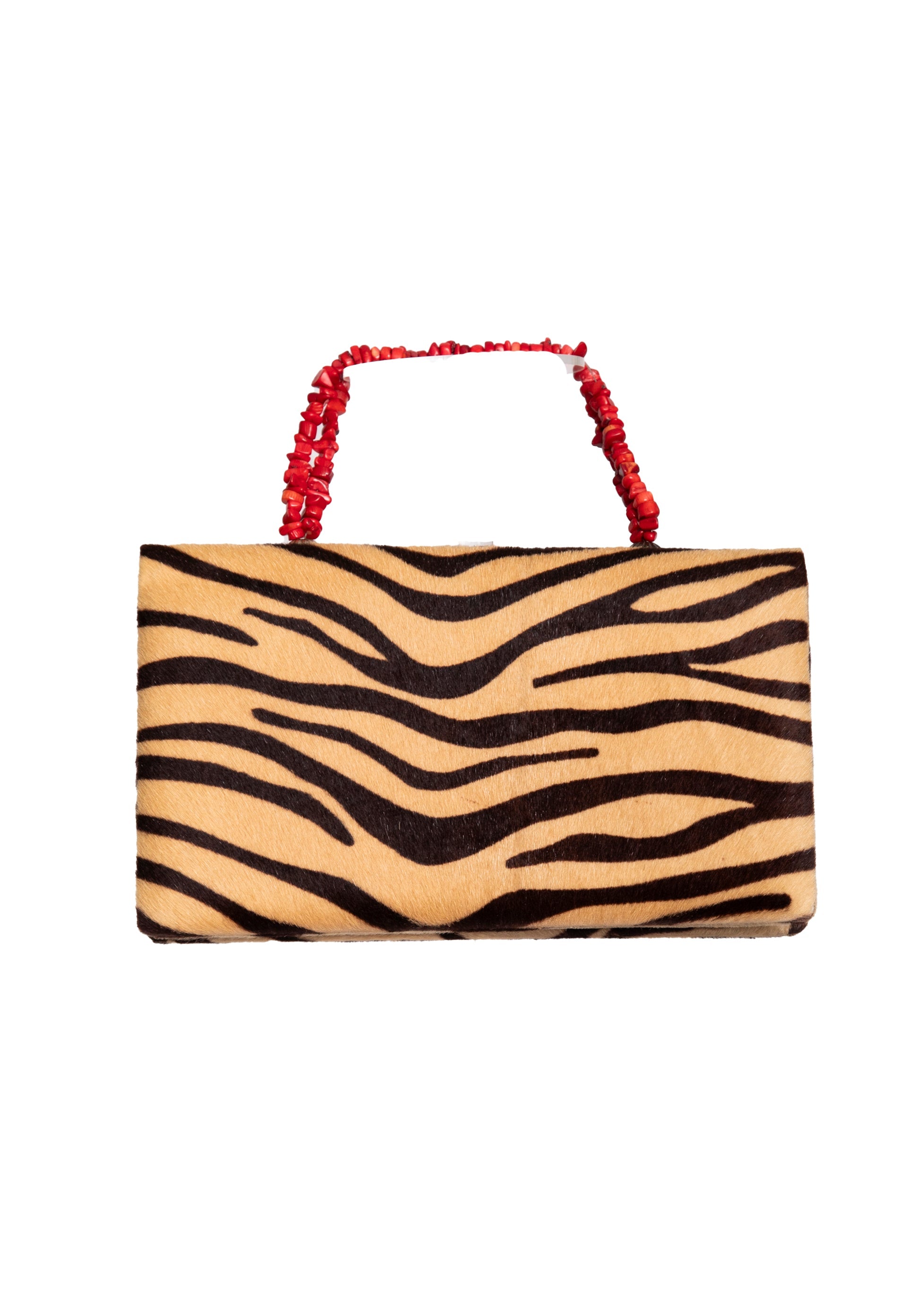 Tiger Print Haircalf & Coral Handled Handbag by Darby Scott.