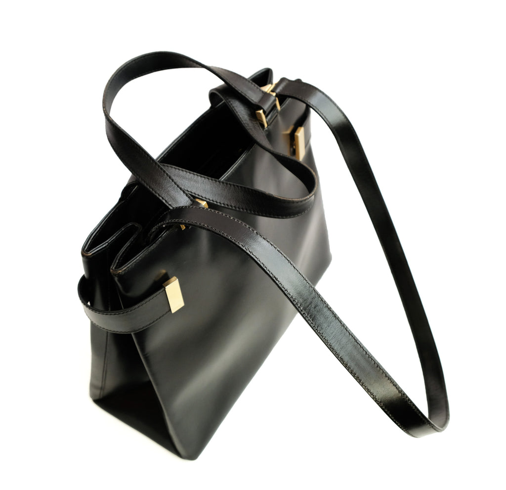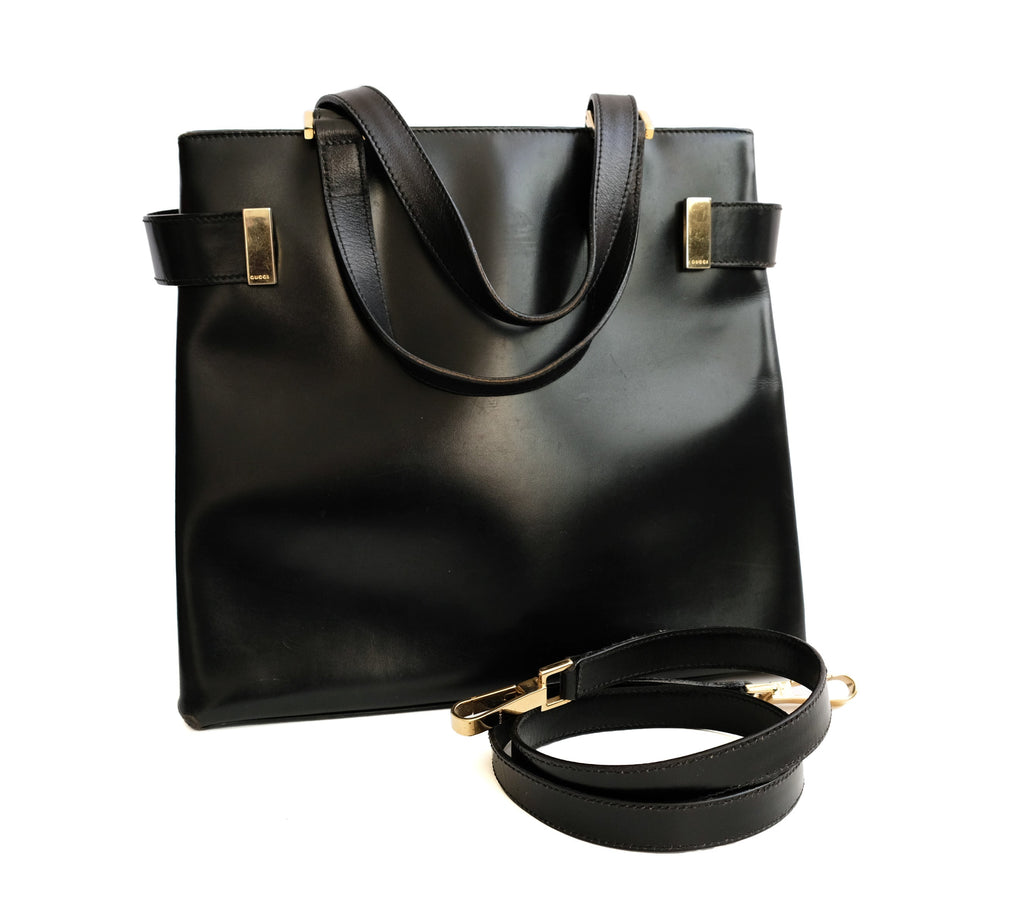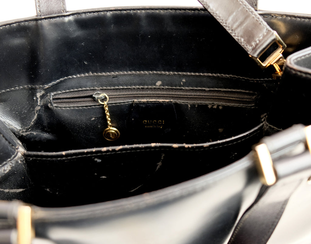 Gucci Vintage Handbag in Black Leather with Detachable Shoulder Strap