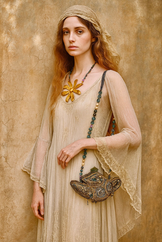 Moussa, Afghan shell beaded woven bag with beaded handle