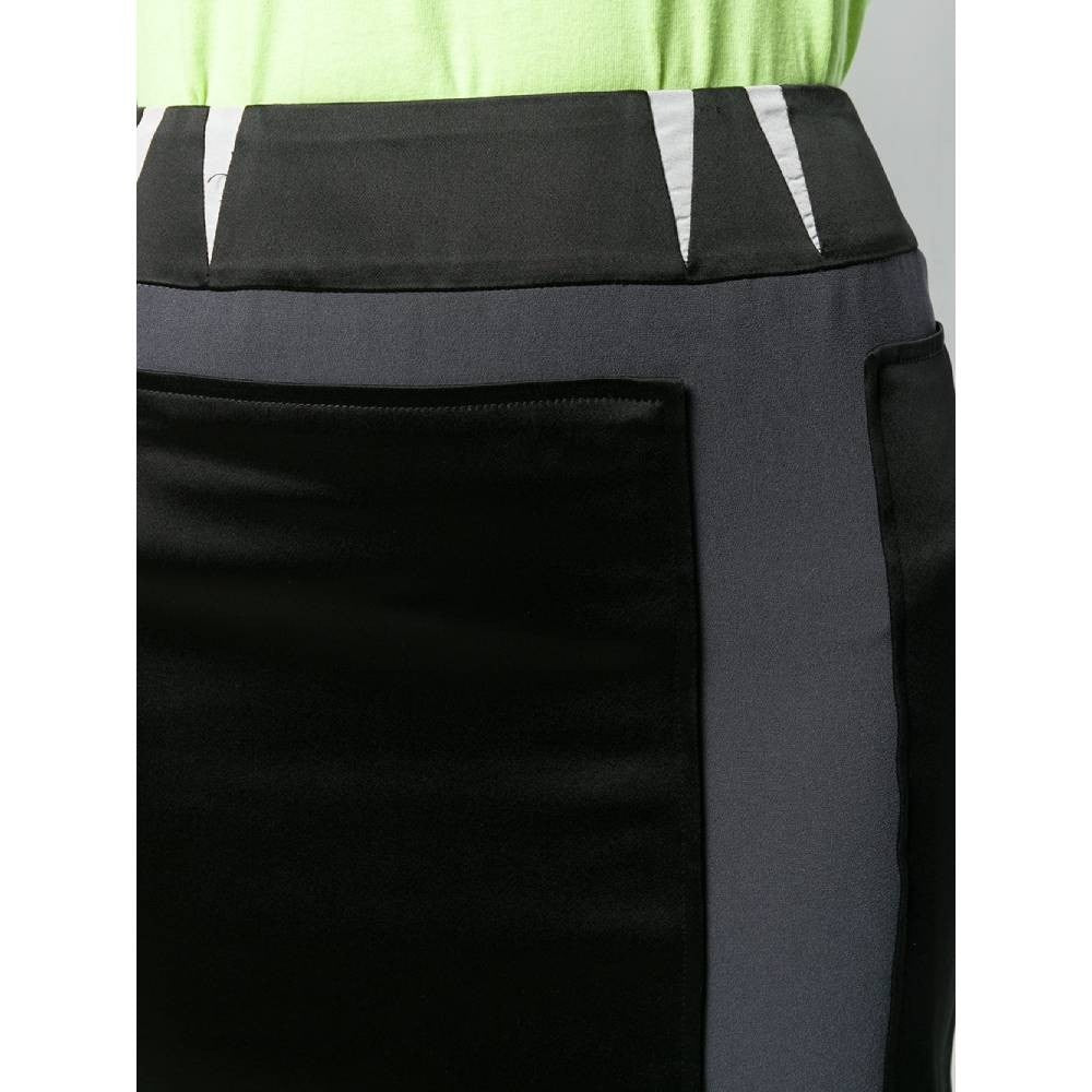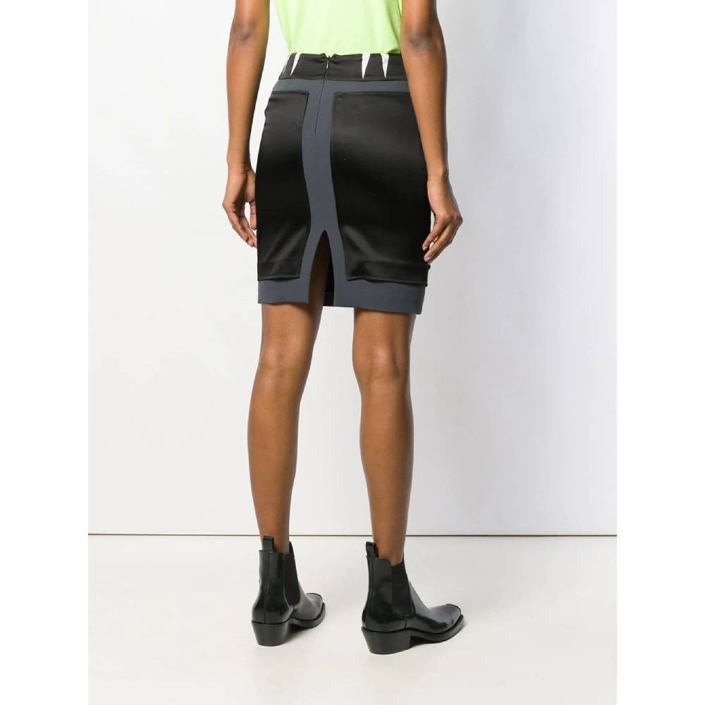 Balenciaga black mini skirt with grey and white inserts. High waist model with hook and zip back closure and central vent.