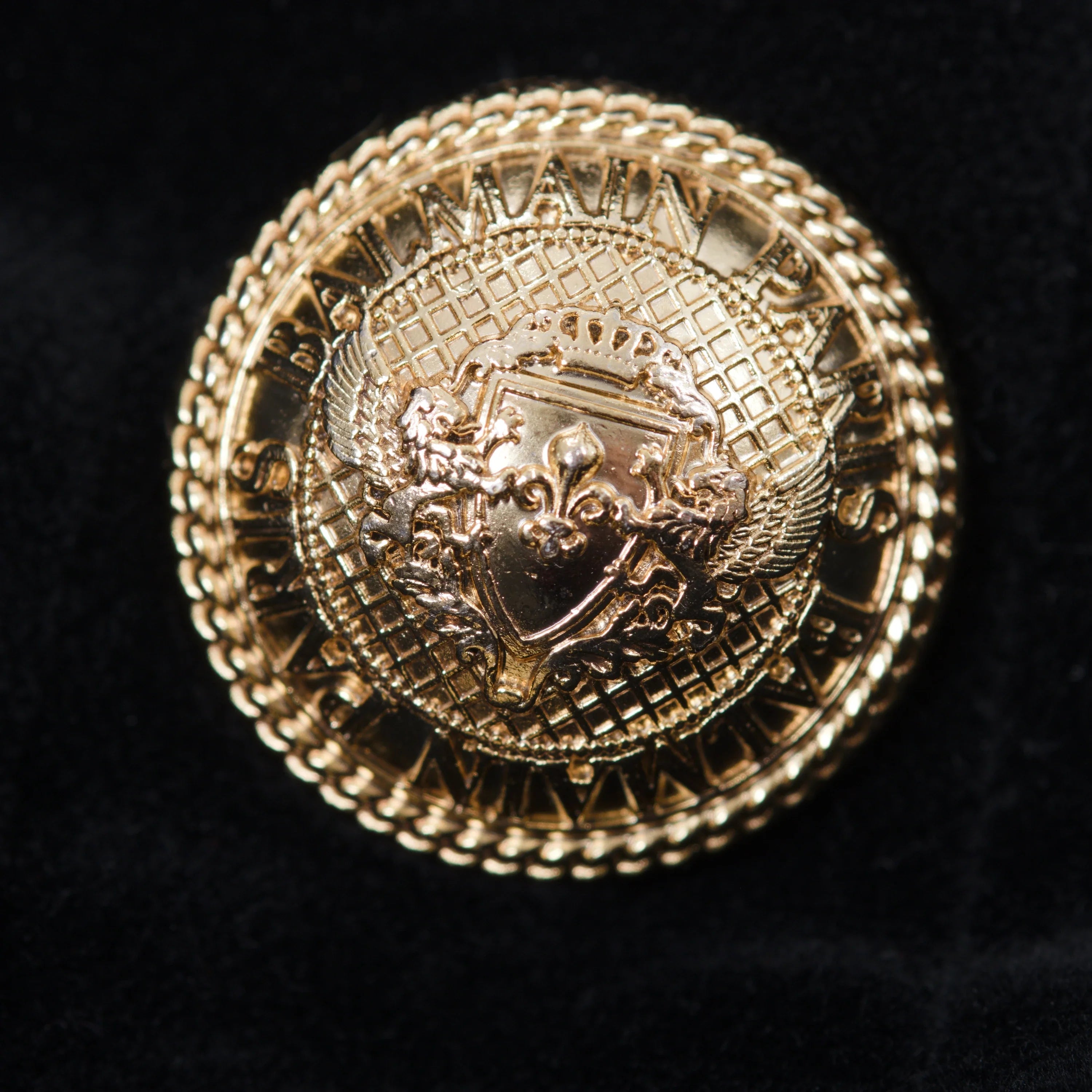 Worn as a complete set, this Balmain ensemble creates a strong statement look. The blazer can also be worn separately, paired with jeans or tailored trousers, making it an extremely versatile piece suitable for a variety of occasions.