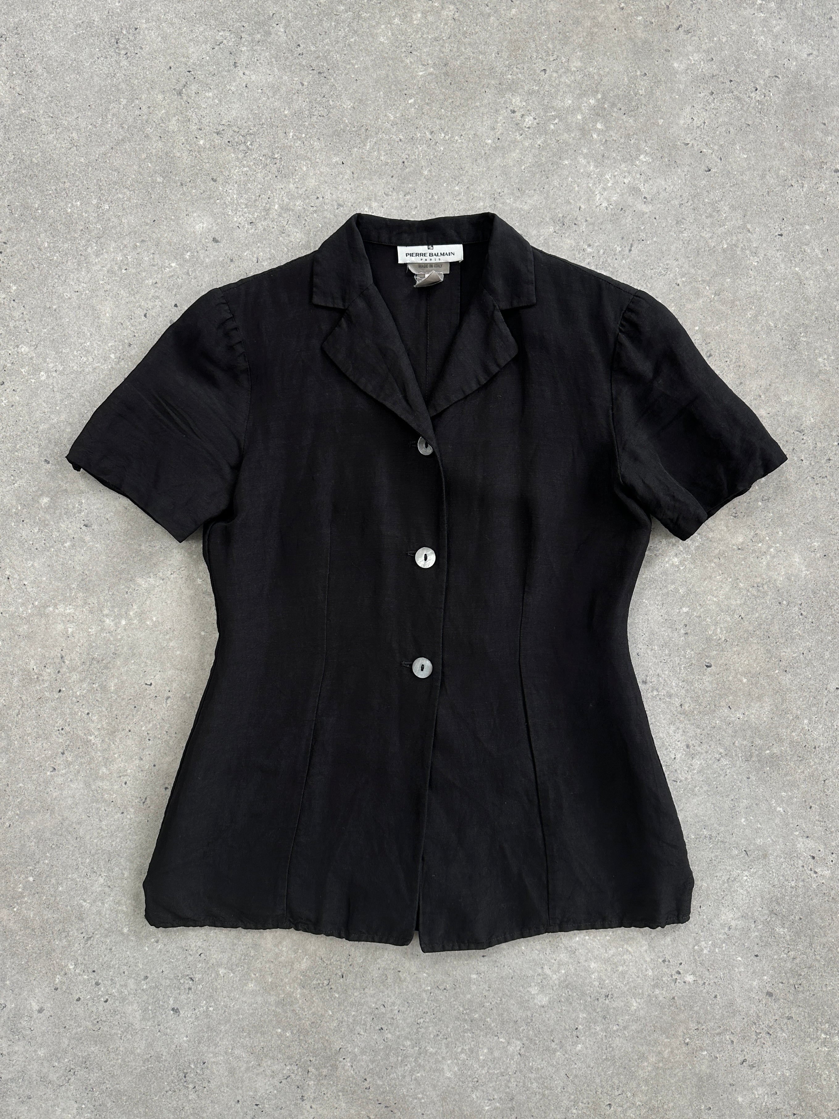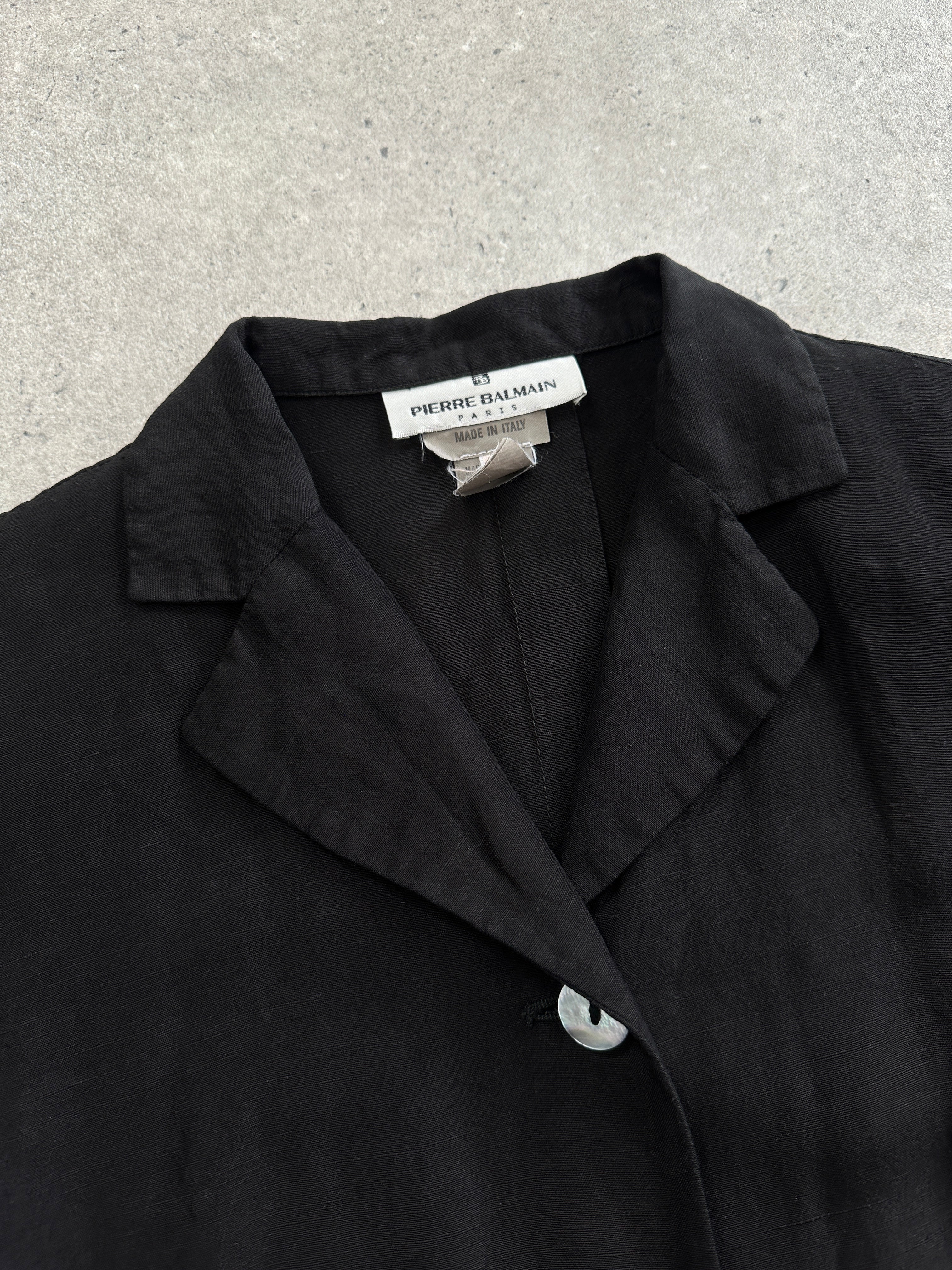 Pierre Balmain 90s Linen Short Sleeve Fitted Blazer - M