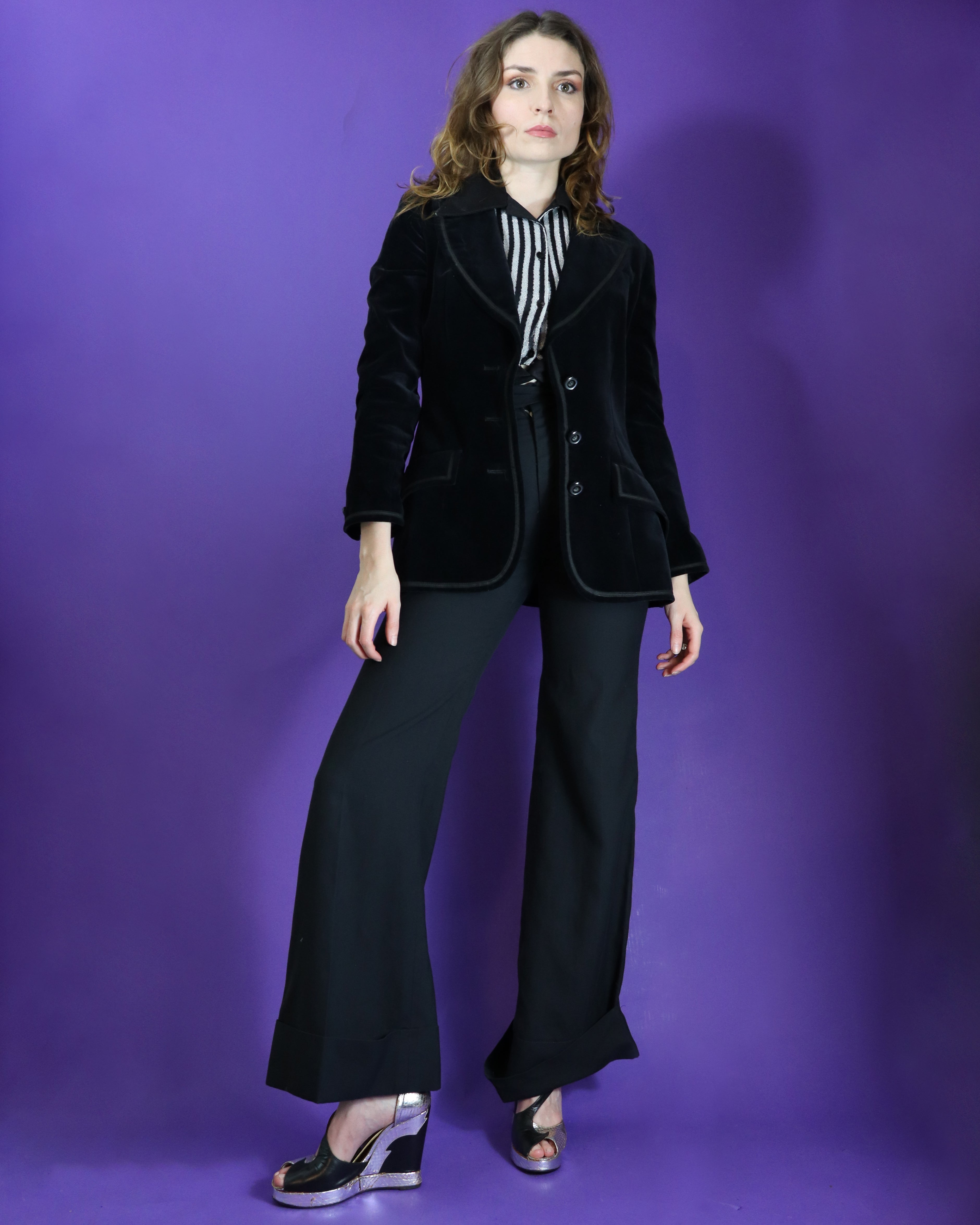 Vintage 1970s Black Velvet Blazer with Satin Trim
