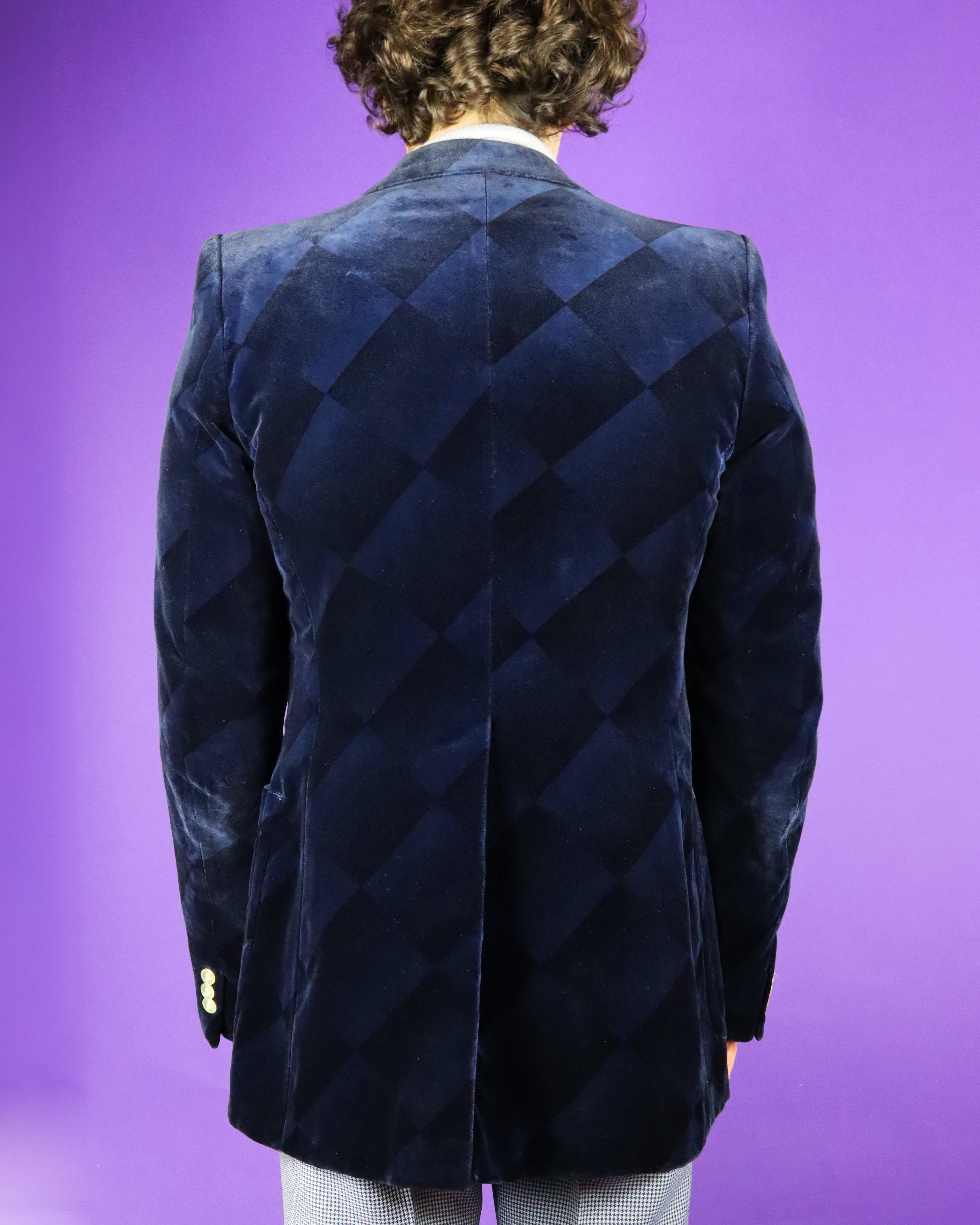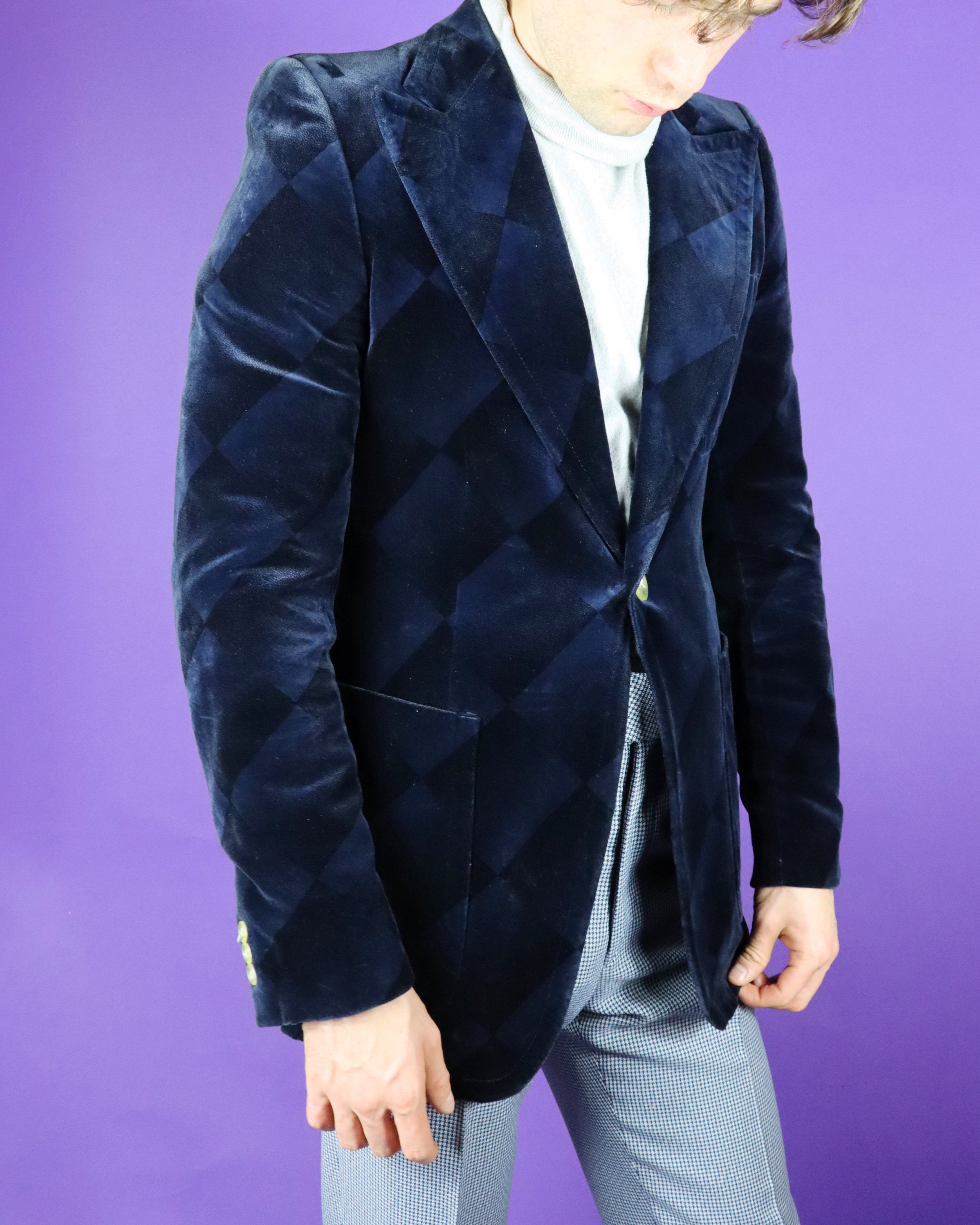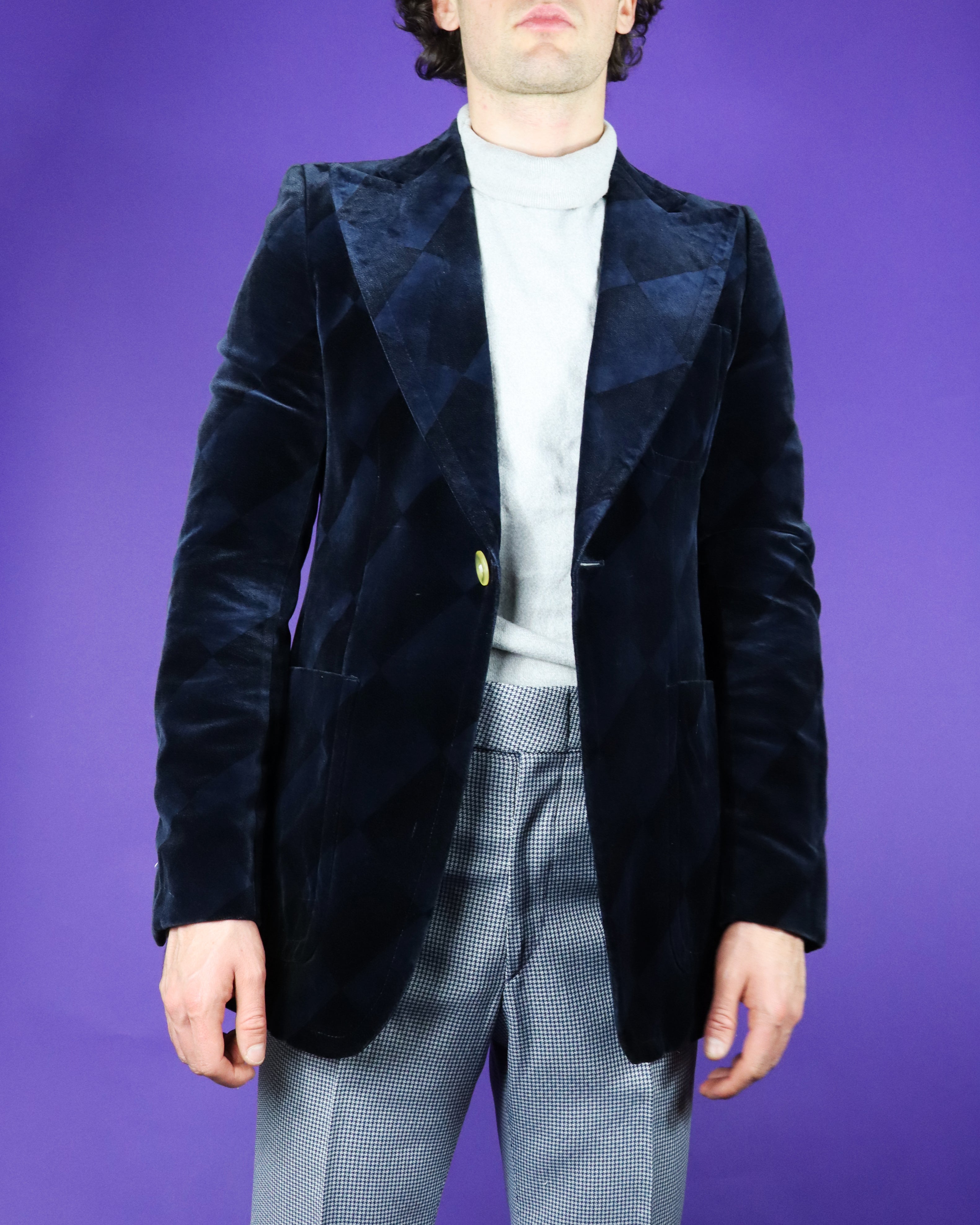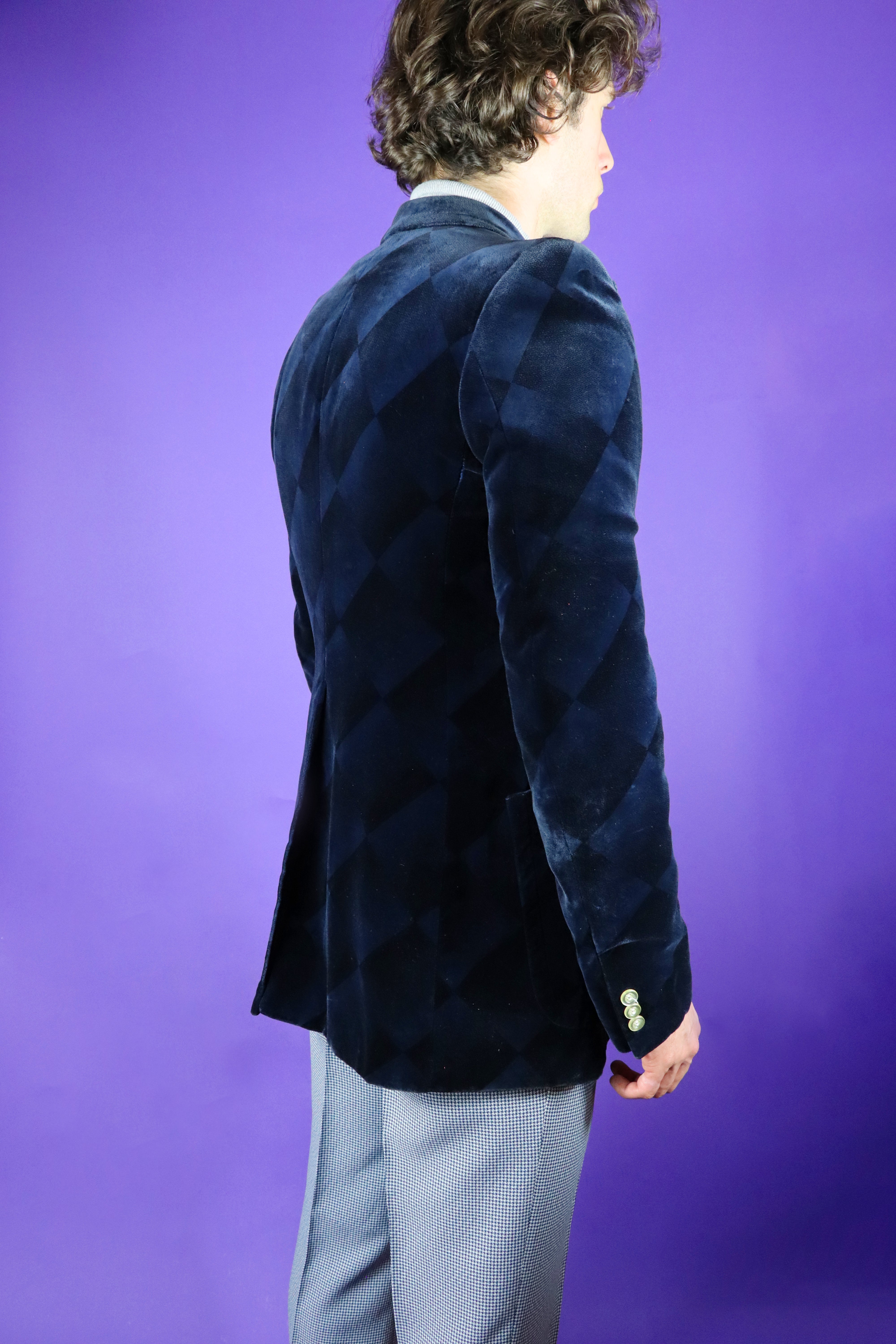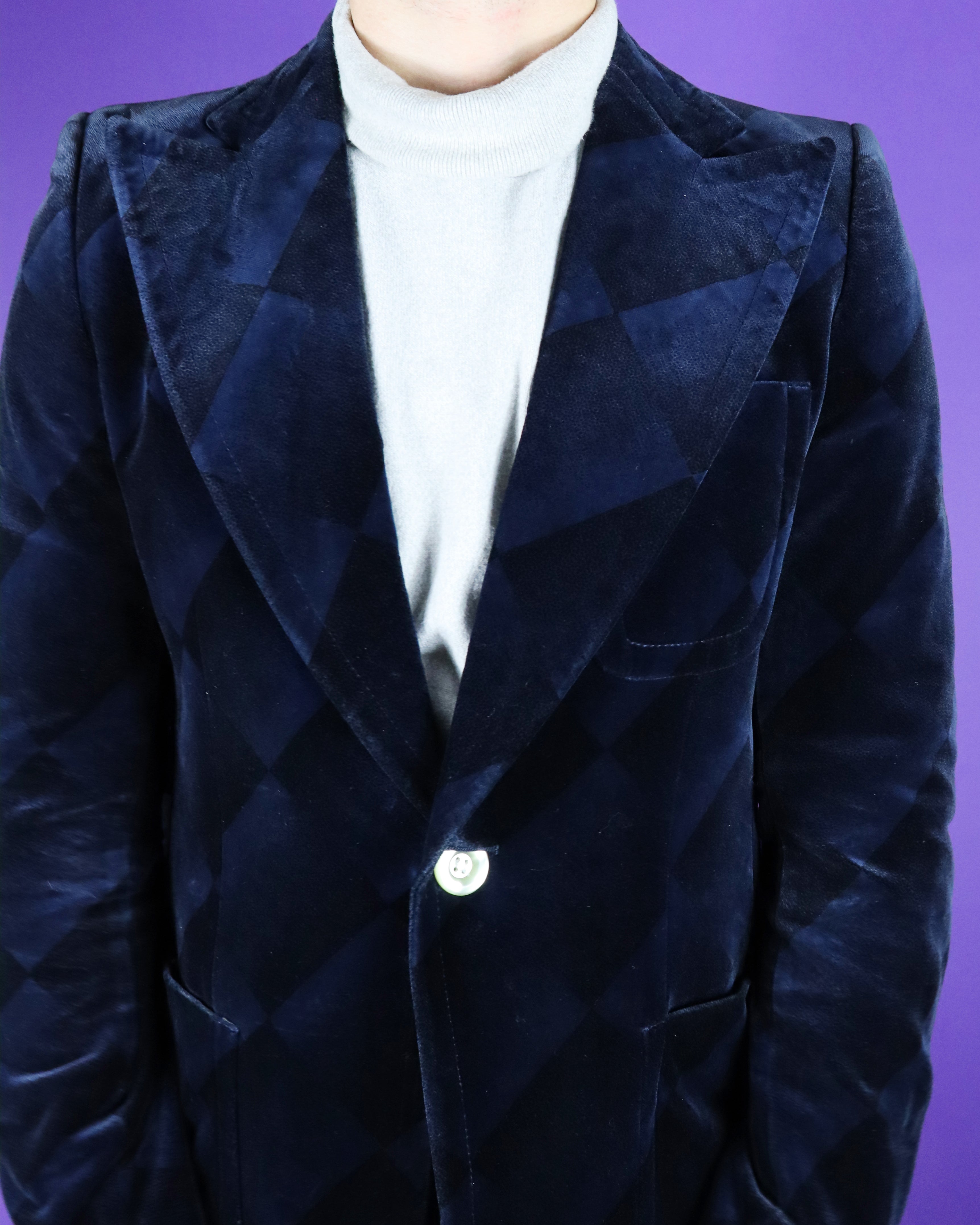 Vintage 1970s Midnight Blue Geometric Printed Velvet Blazer