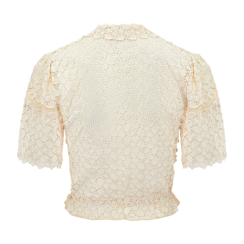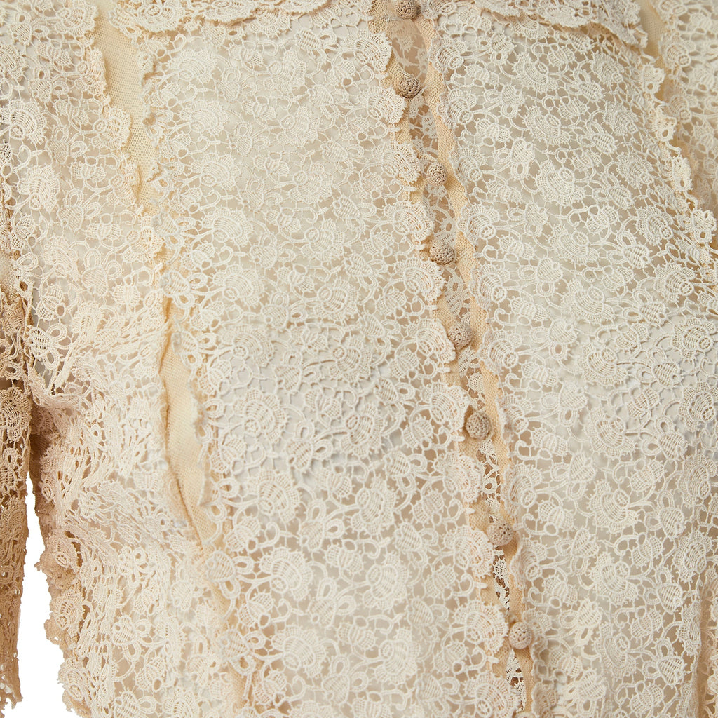 1930s Cream Lace and Tulle Blouse with Crochet Buttons