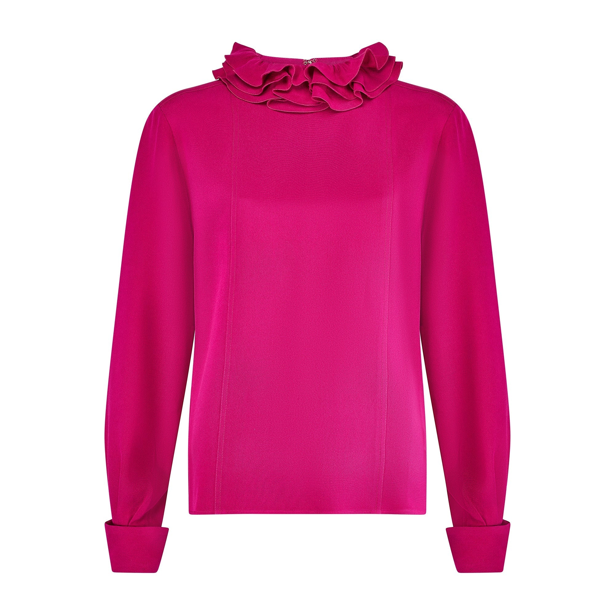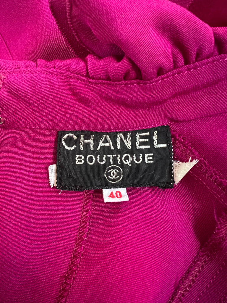 1980s Chanel Fuchsia Heavy Silk Blouse with Ruffle Collar