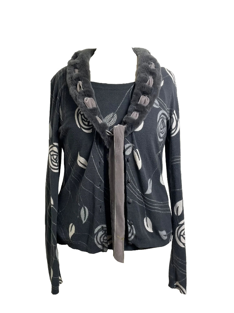 Blumarine Grey Cardigan and Top Twin Set