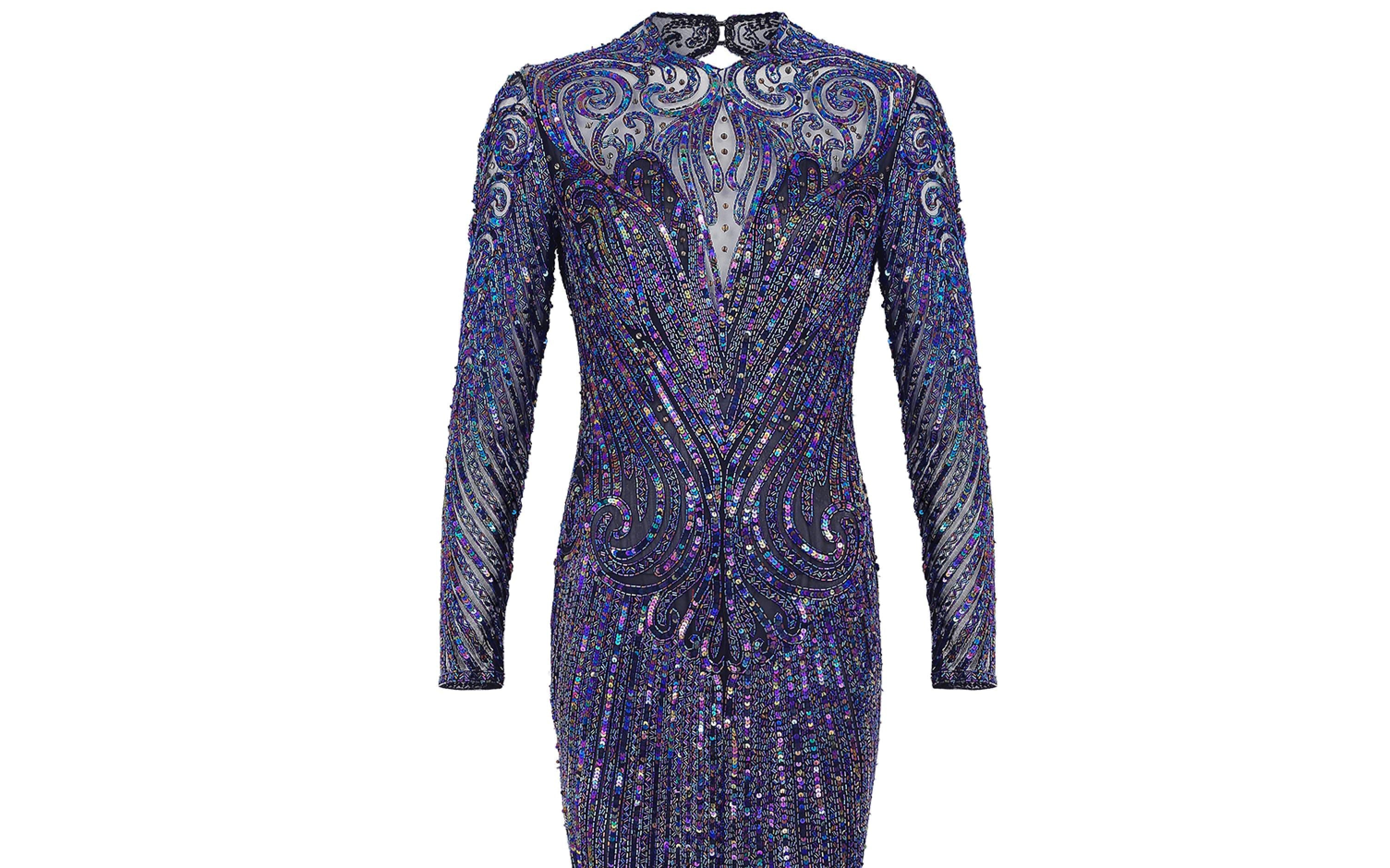 1990s Bob Mackie Blue Beaded and Sequinned Dress