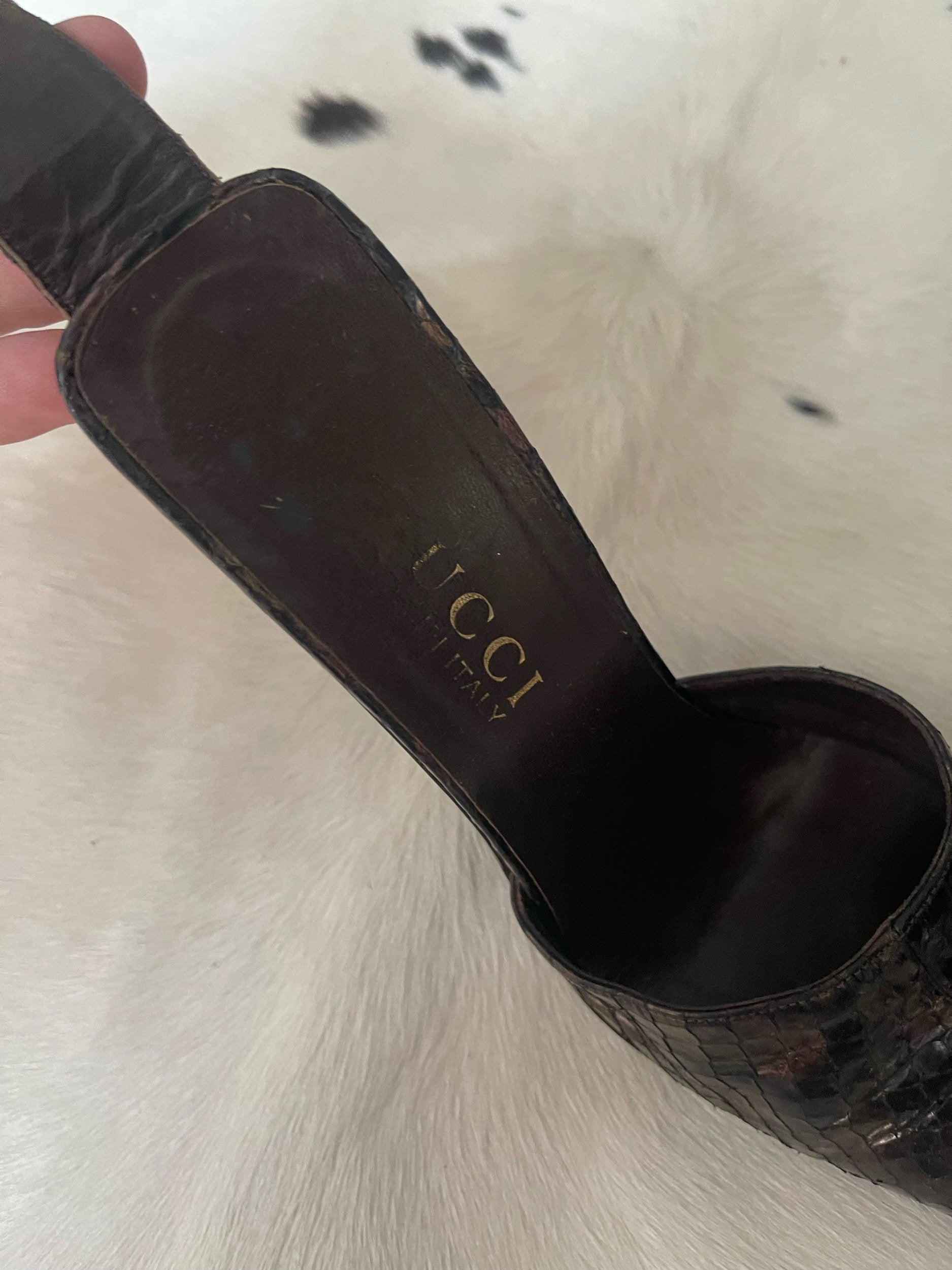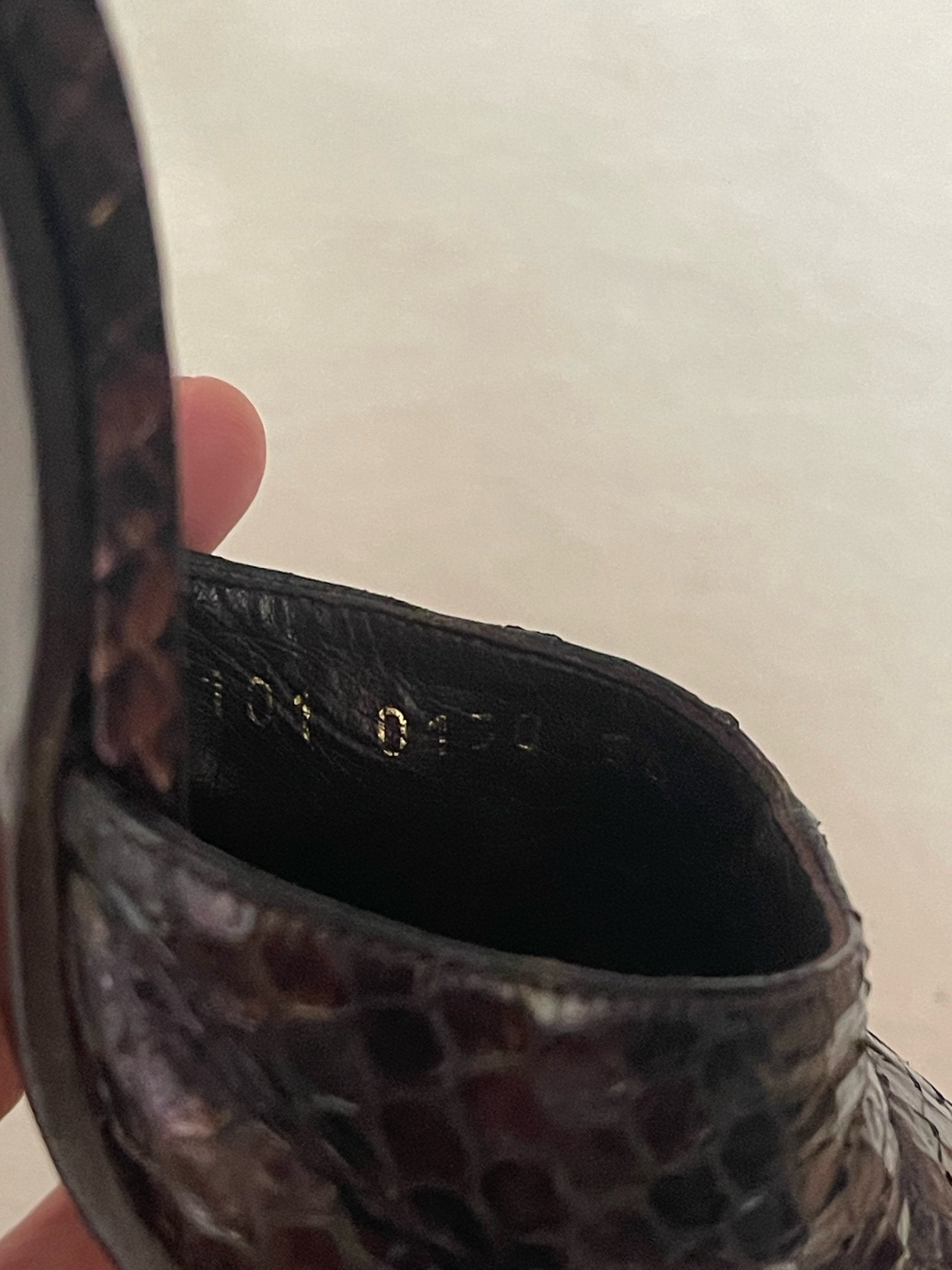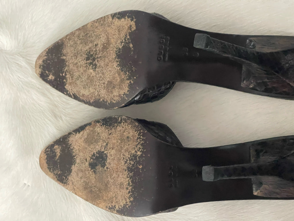 Discover elegance and timeless style with the Amazing 90’s Python Heels by Tom Ford at Gucci, crafted to perfection in a UK 3 These iconic heels embody the essence of luxury and sophistication, featuring exquisite python leather that exudes opulence and prestige. Whether you're stepping into a boardroom or attending a glamorous soirée, these heels effortlessly elevate any outfit with their sleek pointed toe and slender stiletto heel. Make a statement and indulge in the allure of vintage-inspired fashion with these rare and coveted heels from a bygone era.