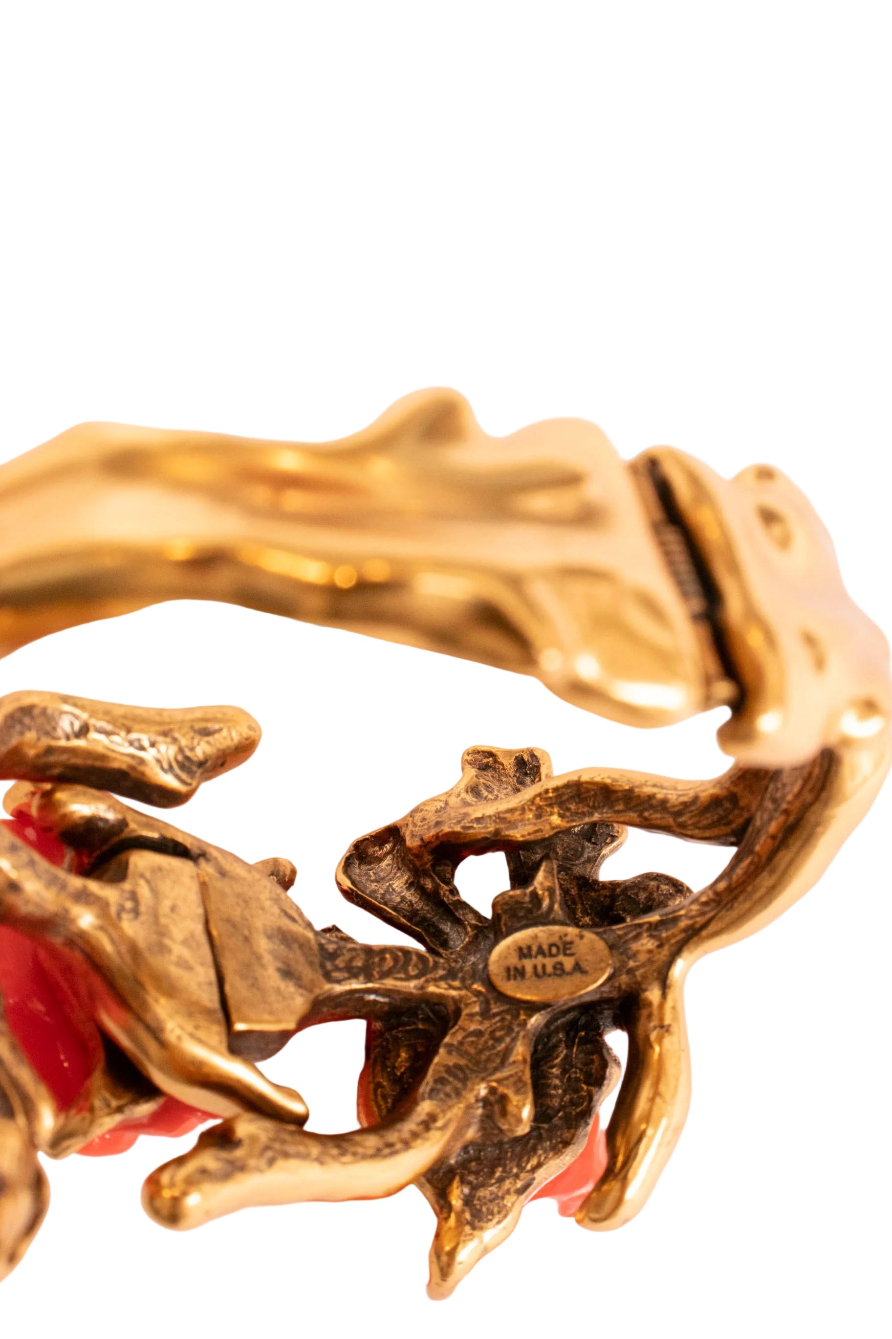 Oscar de la Renta Coral Flower Gold Branch Cuff Bracelet