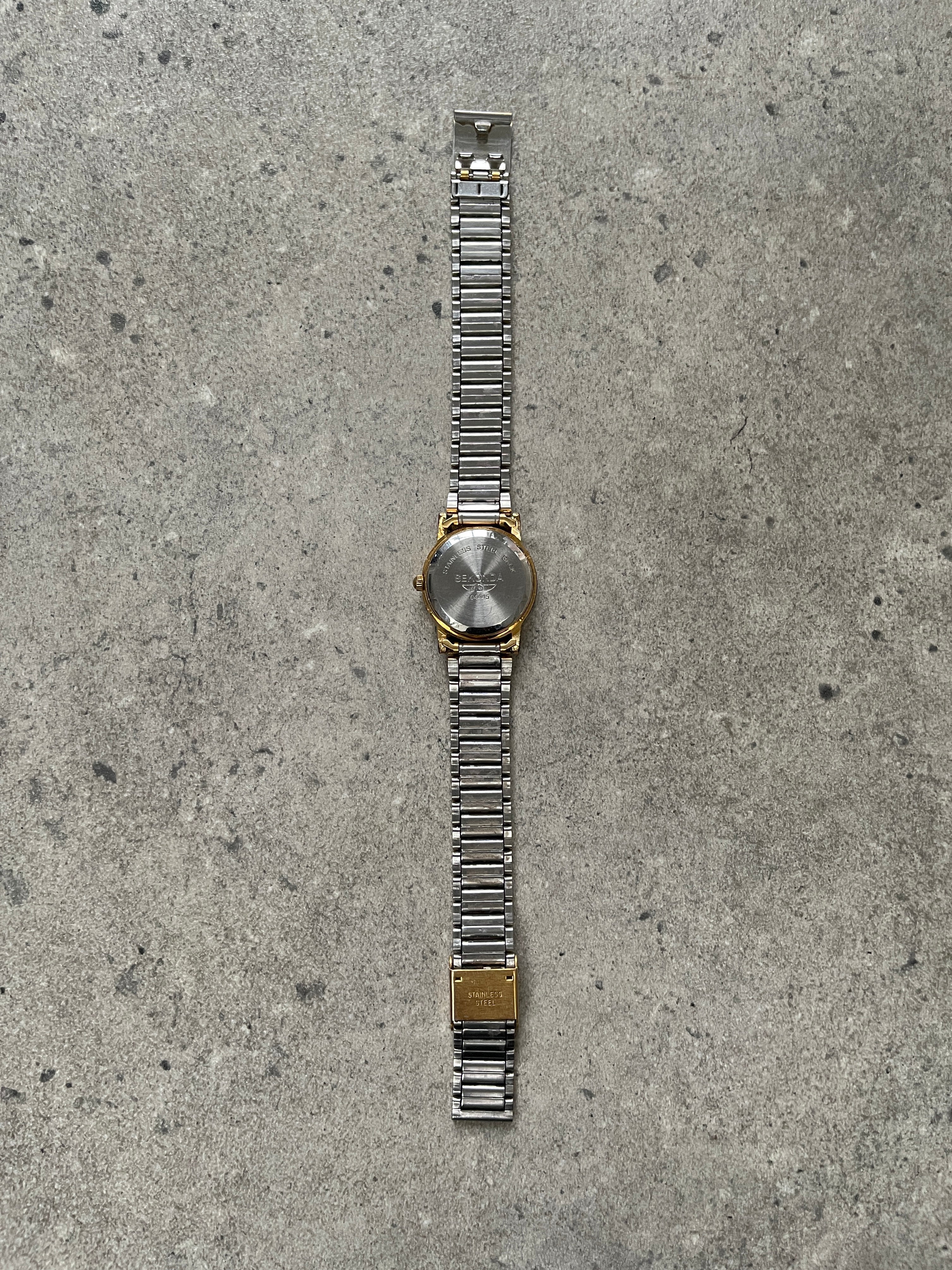 A classic women’s Sekonda wristwatch from the 1990s with a gold-tone round case and two-tone bracelet. Designed with a clean minimalist dial and slim profile, offering an understated vintage finish suited to everyday wear.