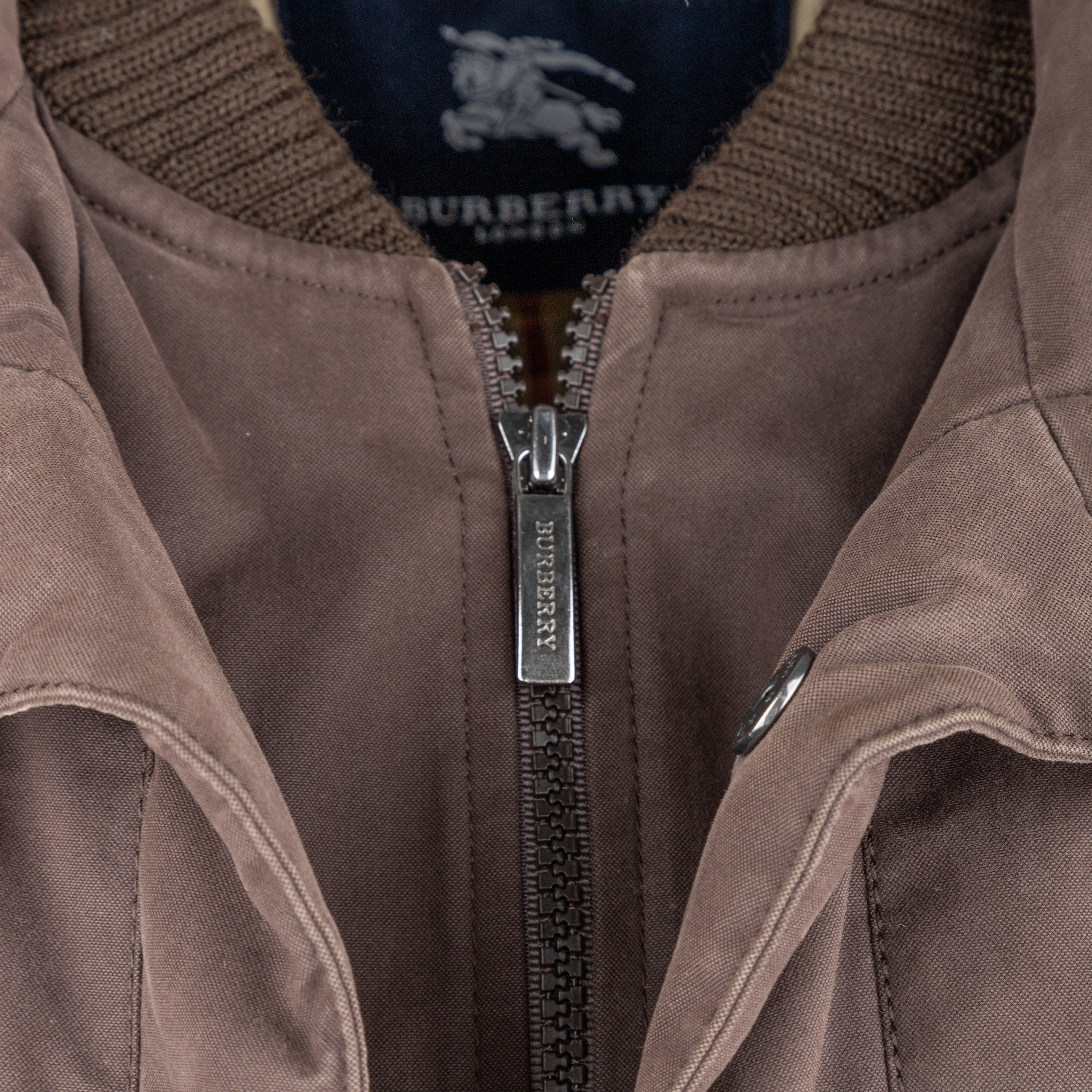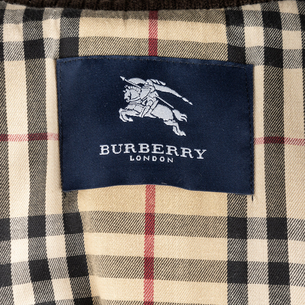 Expertly crafted from a soft cotton and polyester blend, the Burberry jacket is the perfect combination of style and functionality. Featuring a padded lining for added warmth and a double collar with zip and snap button closure, this jacket is both practical and iconic. Finished with the iconic Burberry check on the lining and a ribbed hem and sleeve cuff, this jacket is a must-have for any wardrobe.