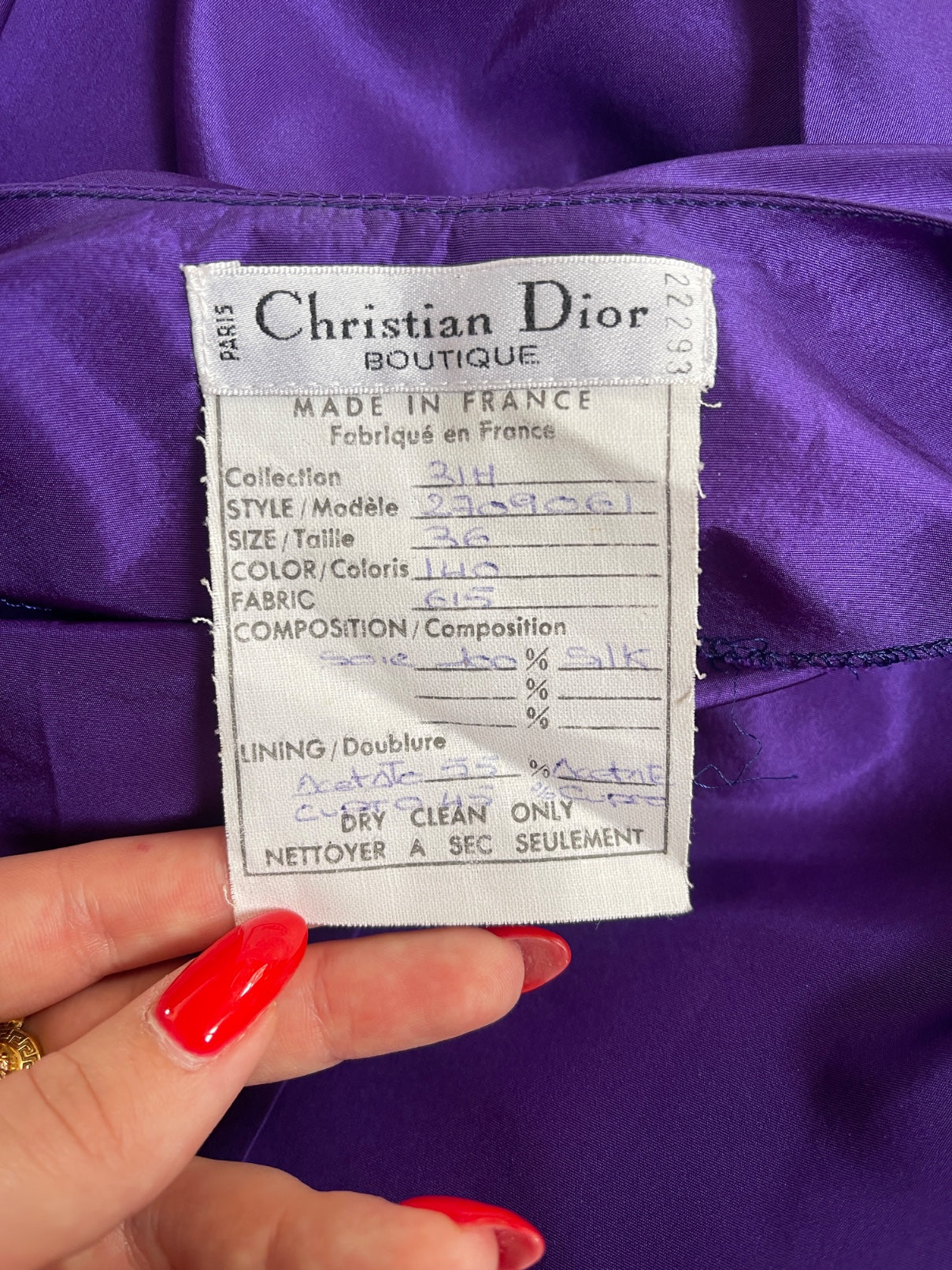 1993 Christian Dior Purple Taffeta Silk Ruffled Cape