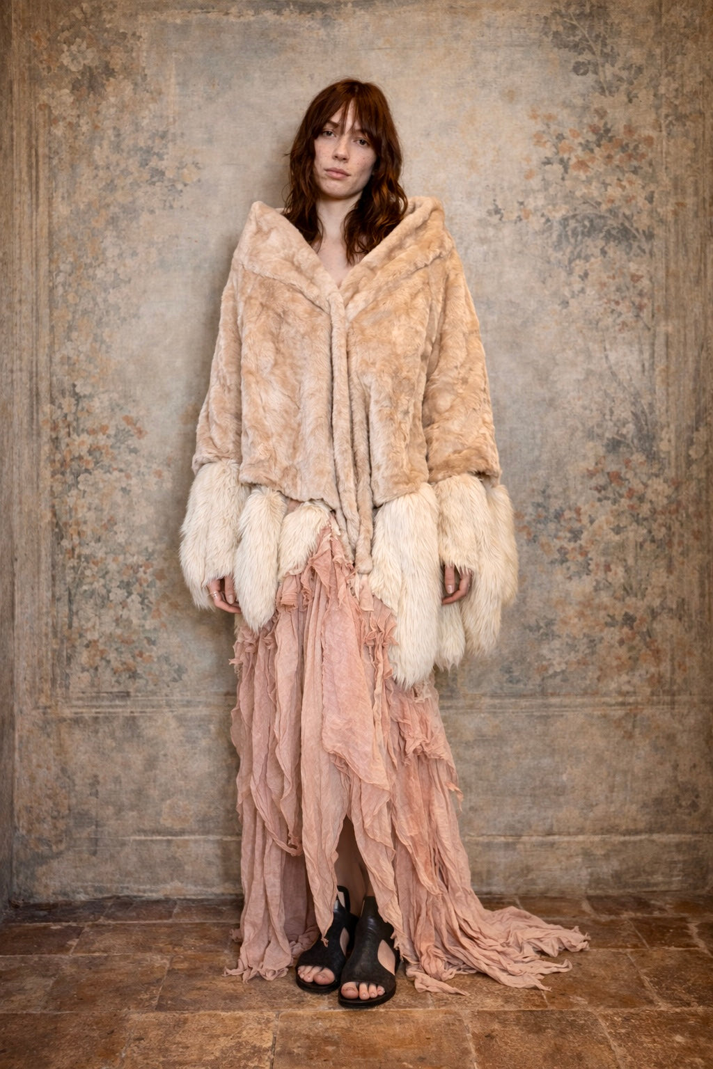 Sybil, 60s shaved fur tassel cape