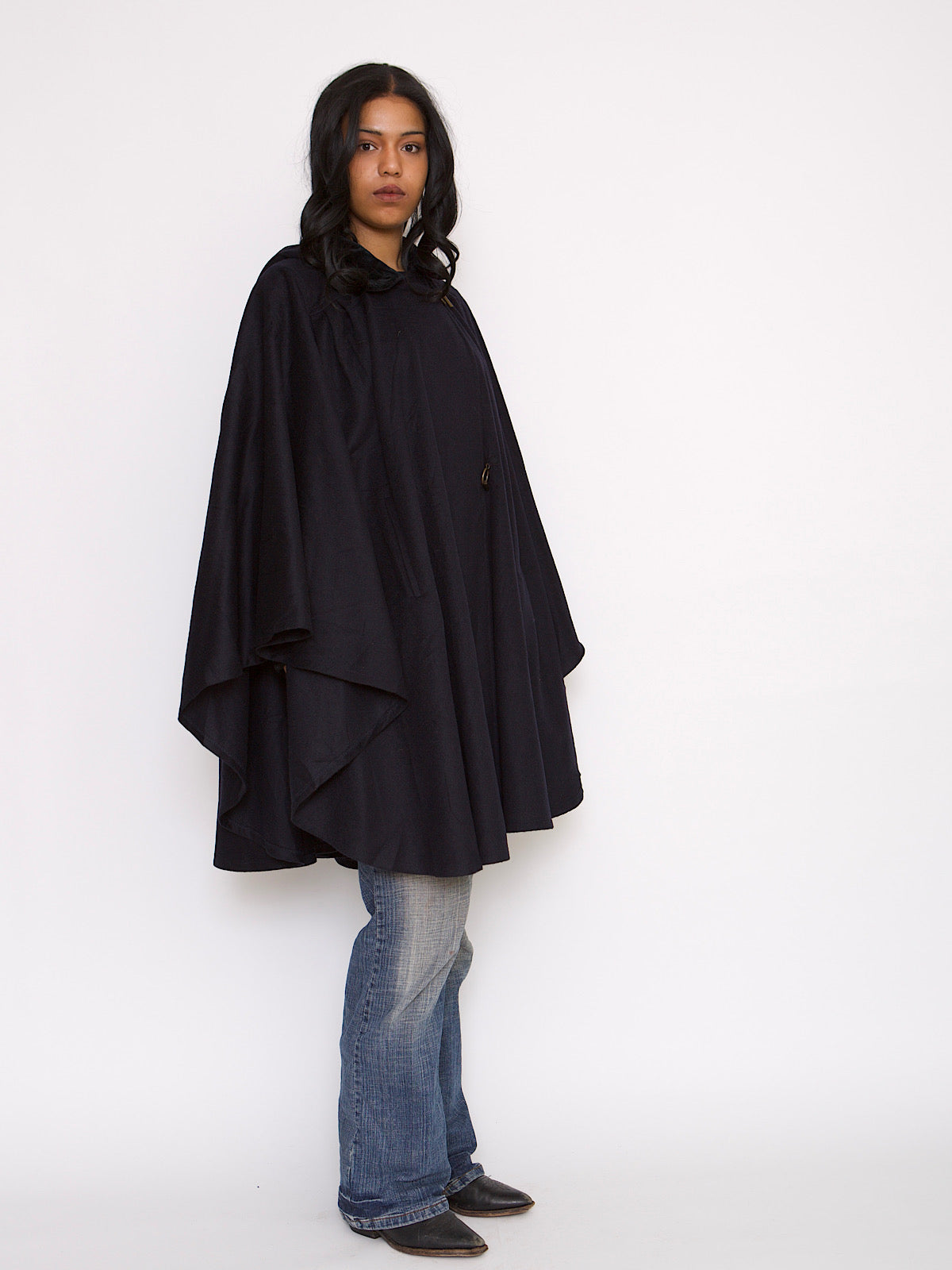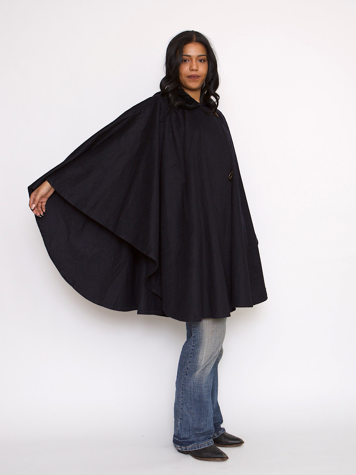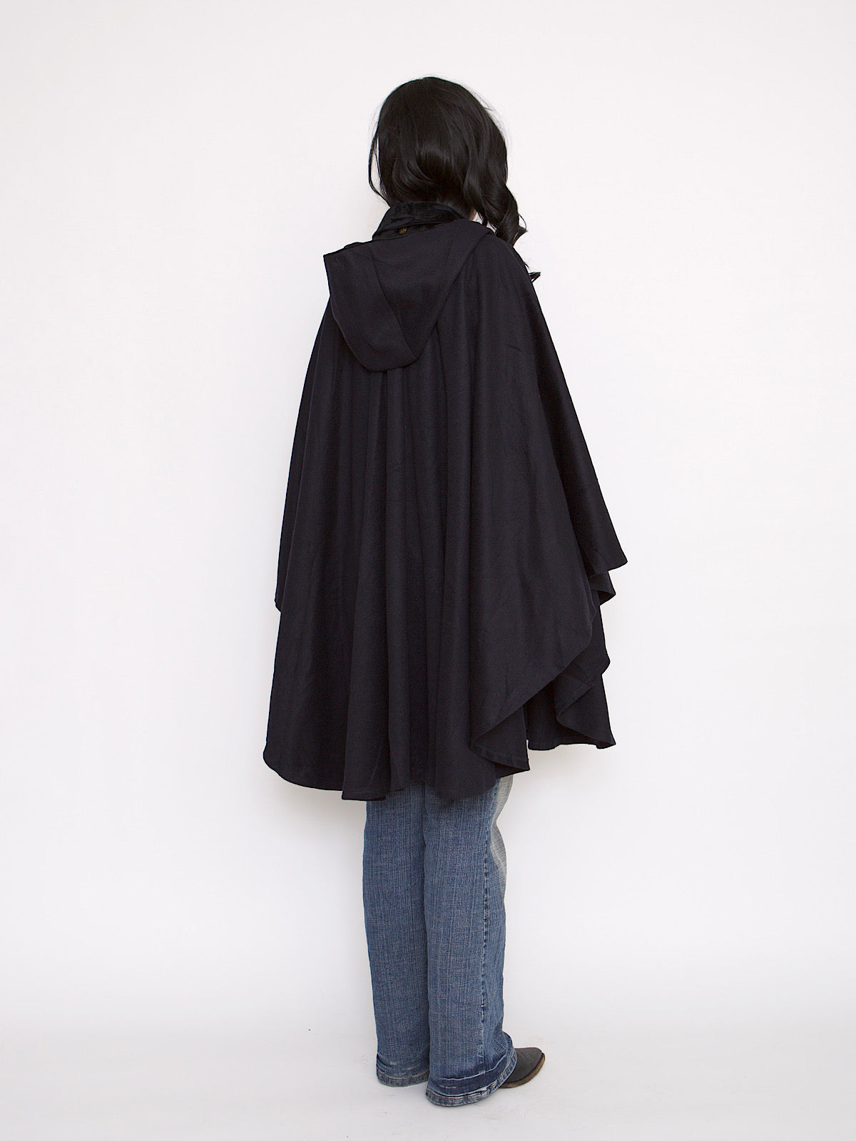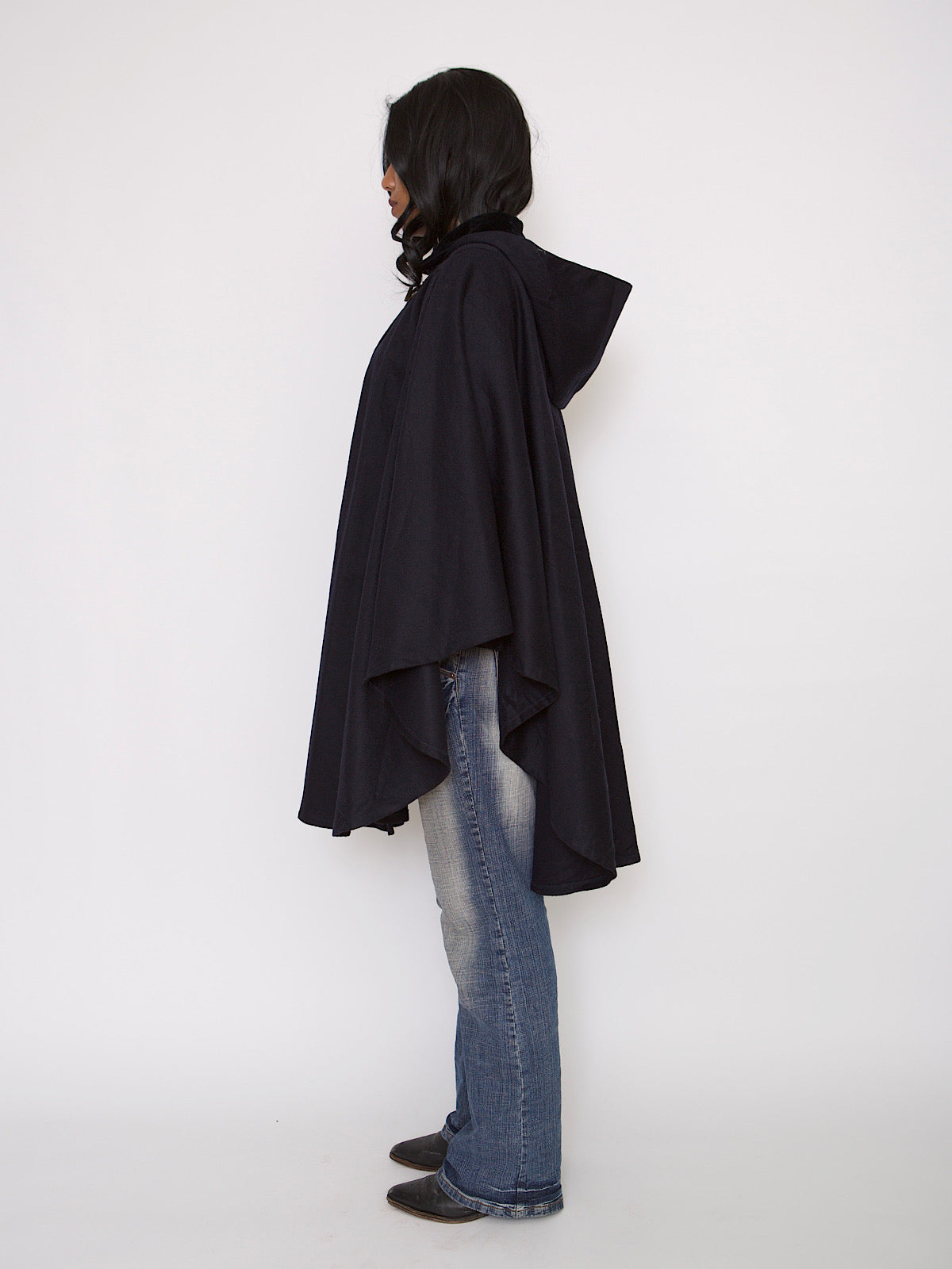 VINTAGE NAVY CAPE MID LENGTH BLACK VELVET COLLAR & HOOD