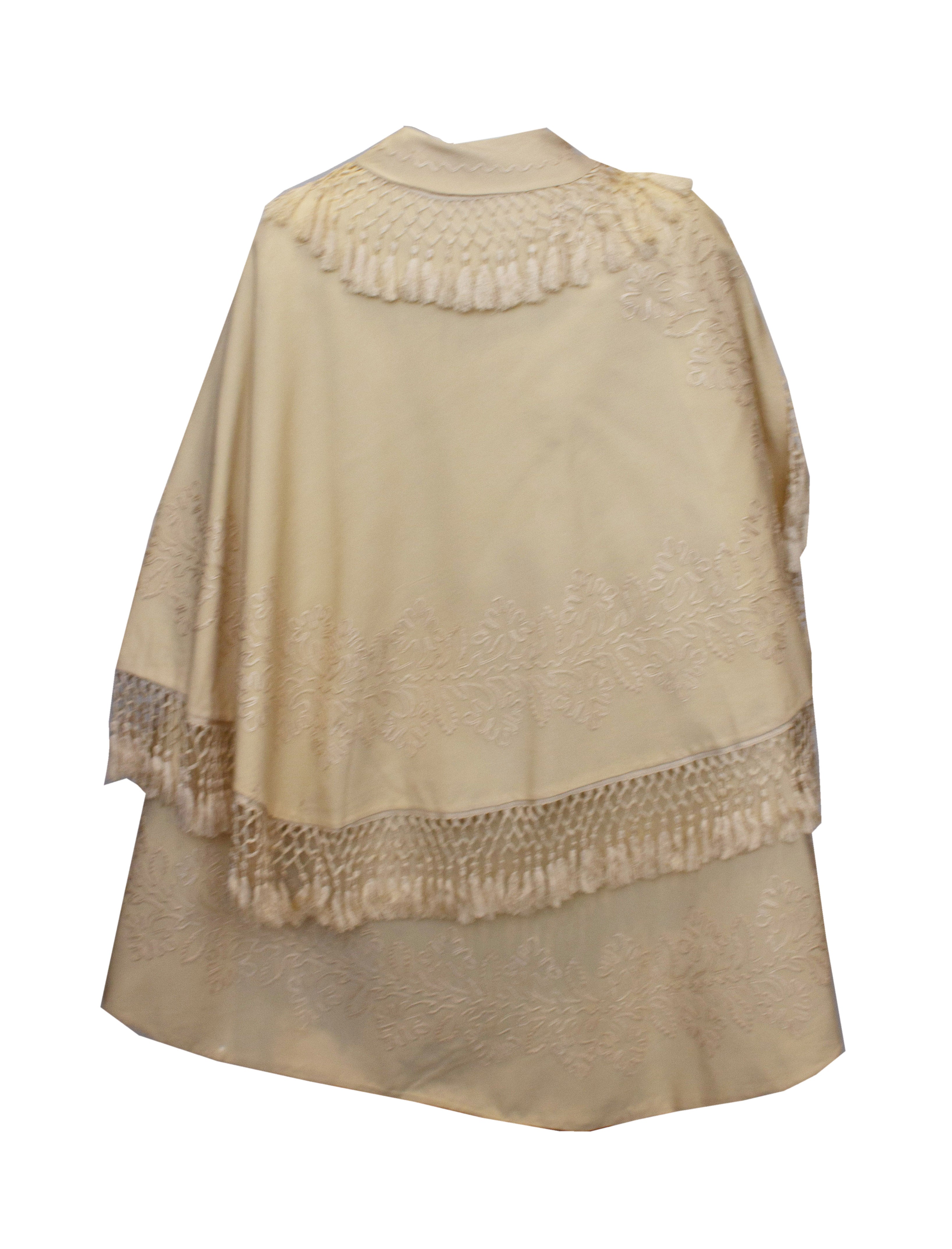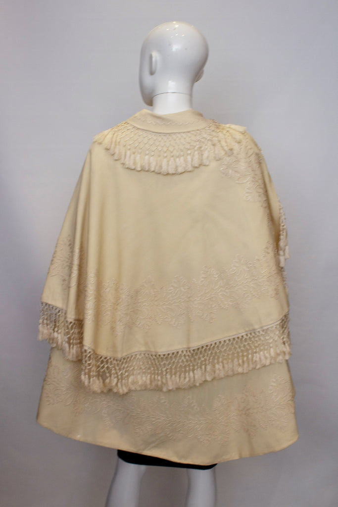 A Vintage edwardain White Wool Cape with Embroidery and Fringing
