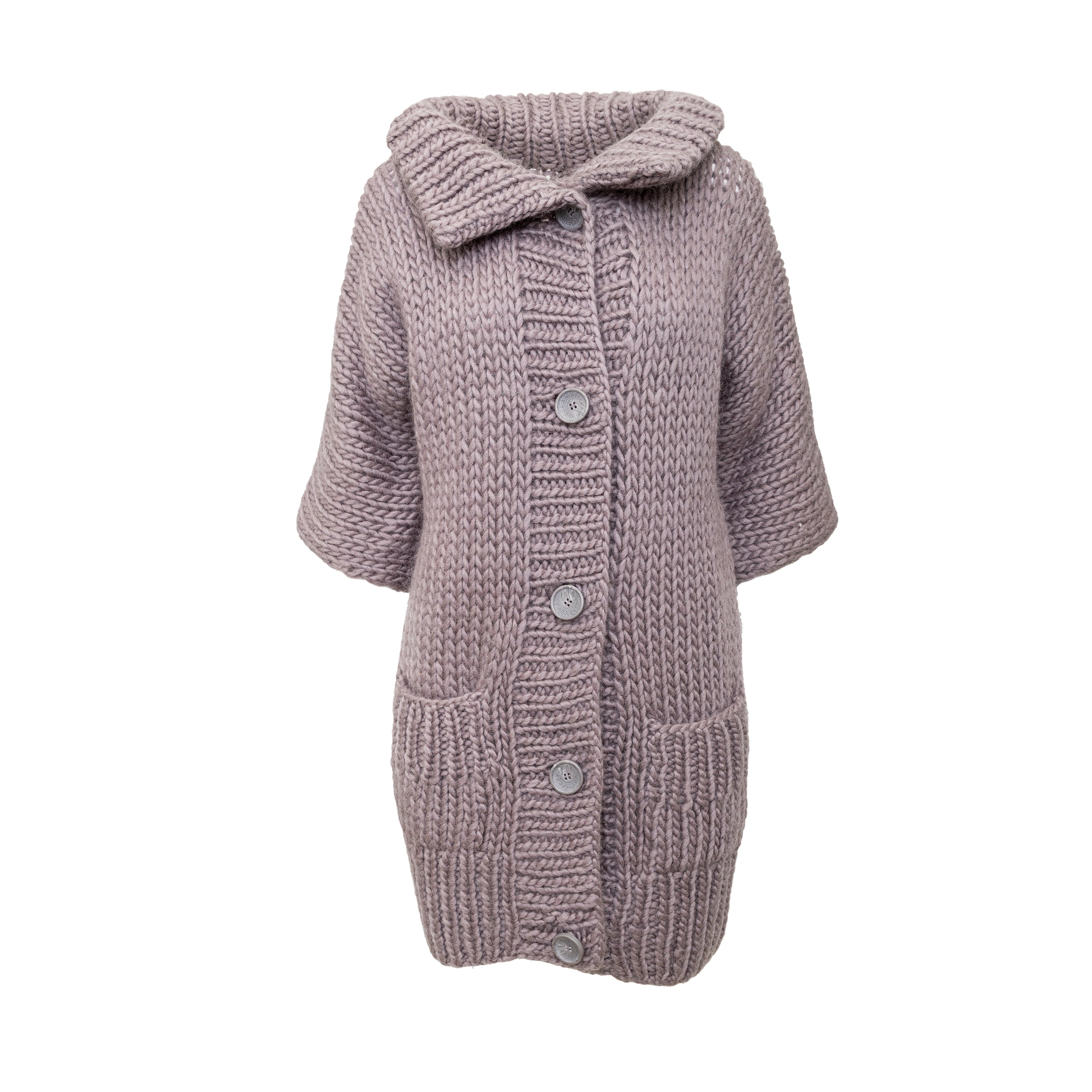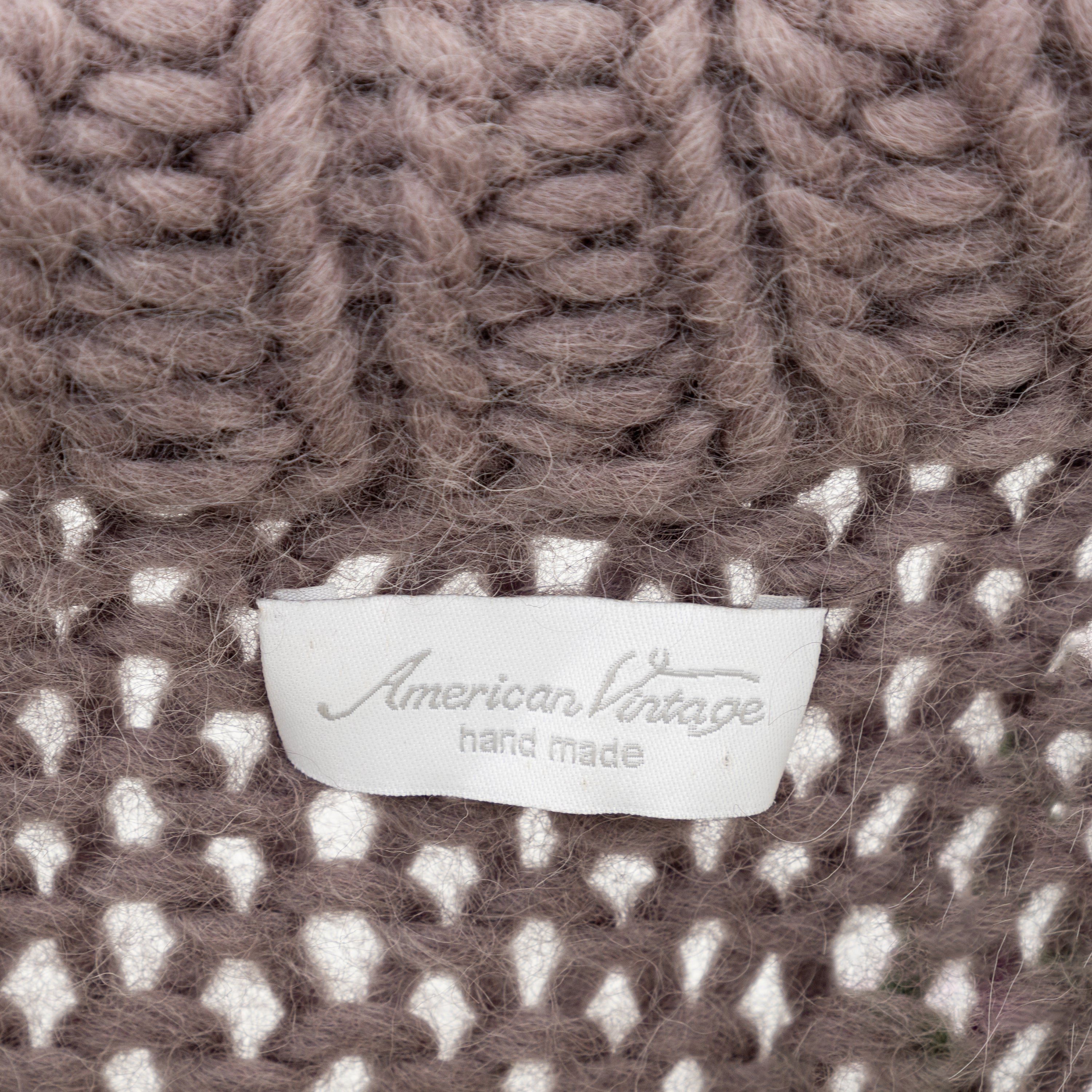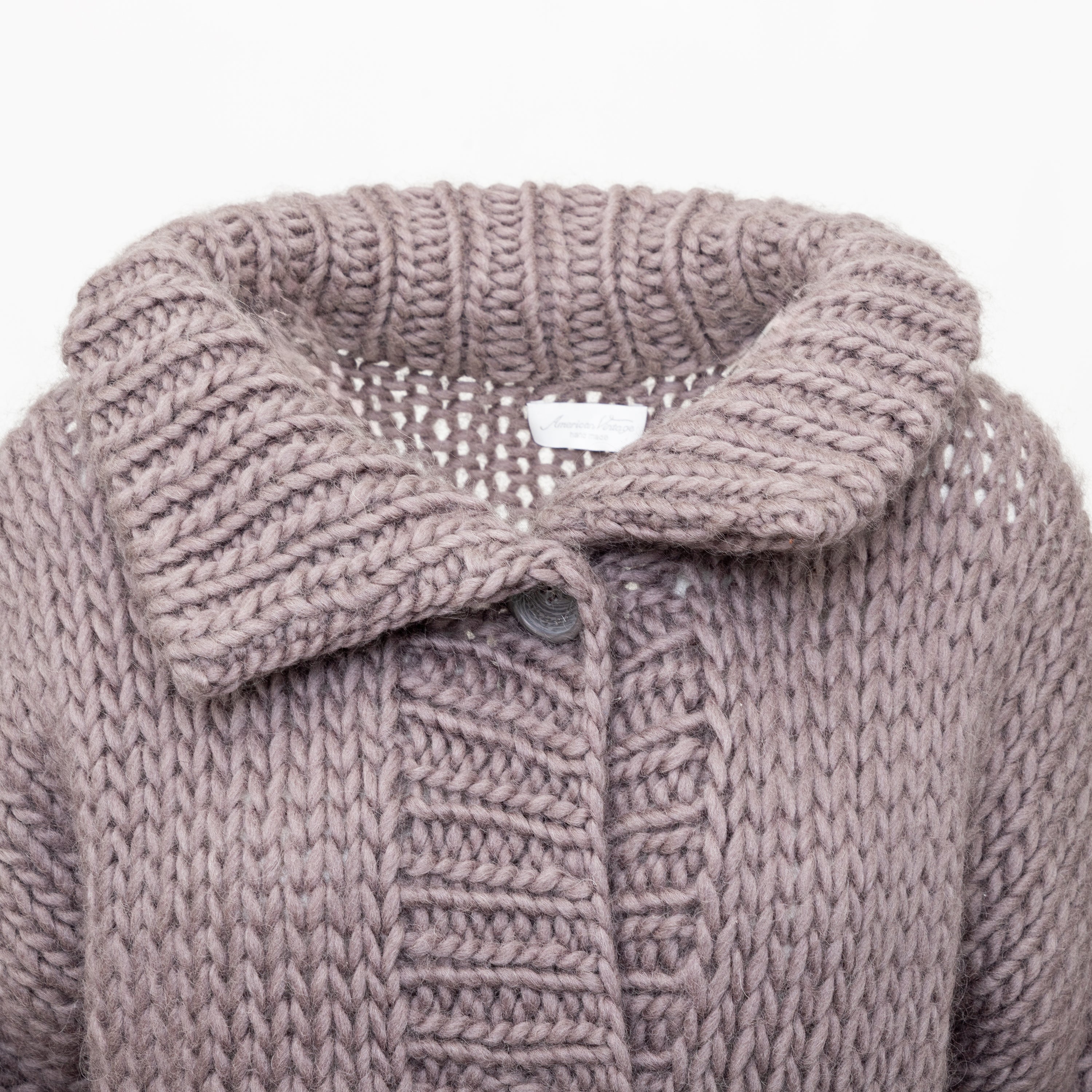 This American Vintage beige tricot cardigan is a perfect blend of style and comfort. Its long fit and half sleeves provide a flattering silhouette while the central buttoning and front pockets add functionality. Hand crafted with braided wool, this cardigan is a timeless addition to any wardrobe.