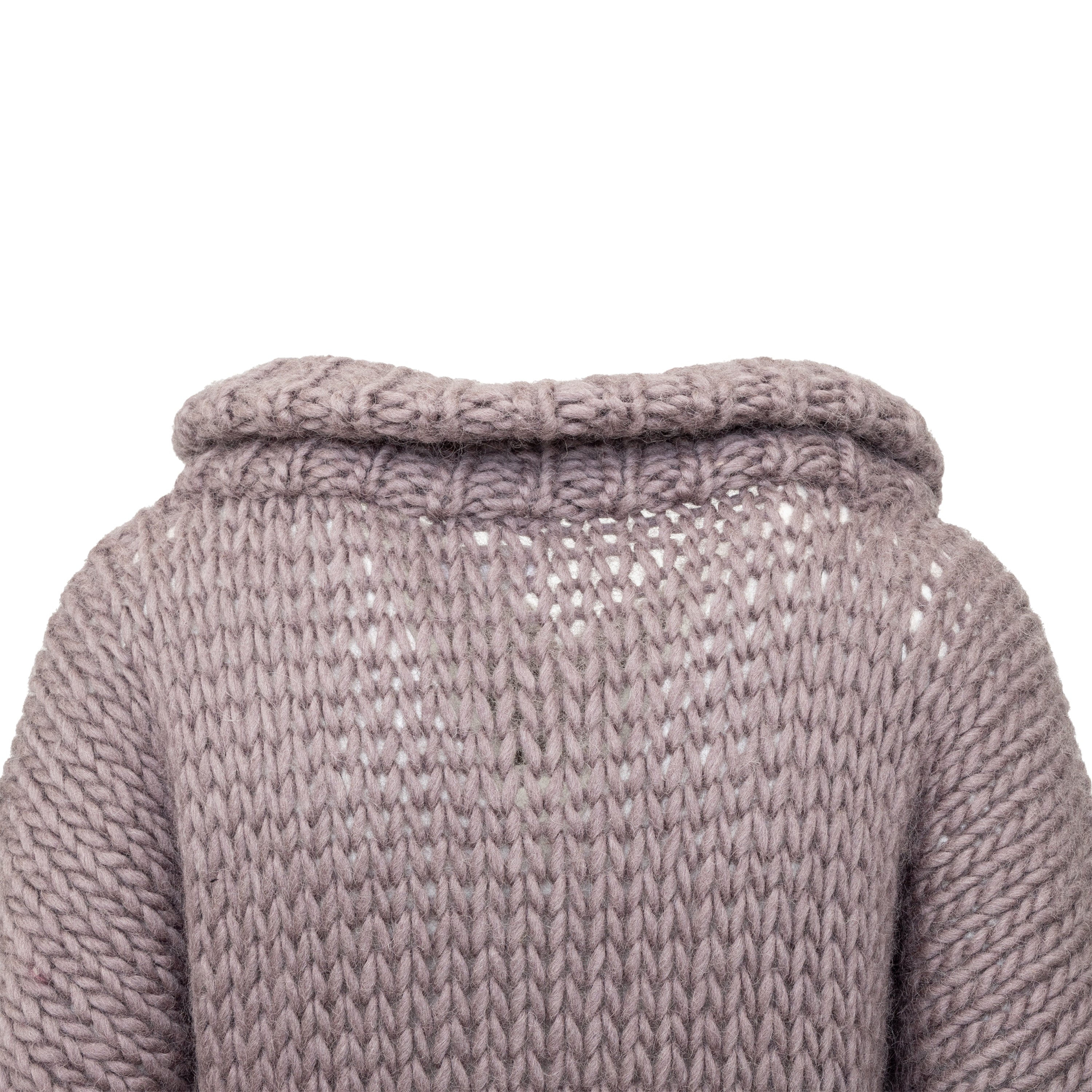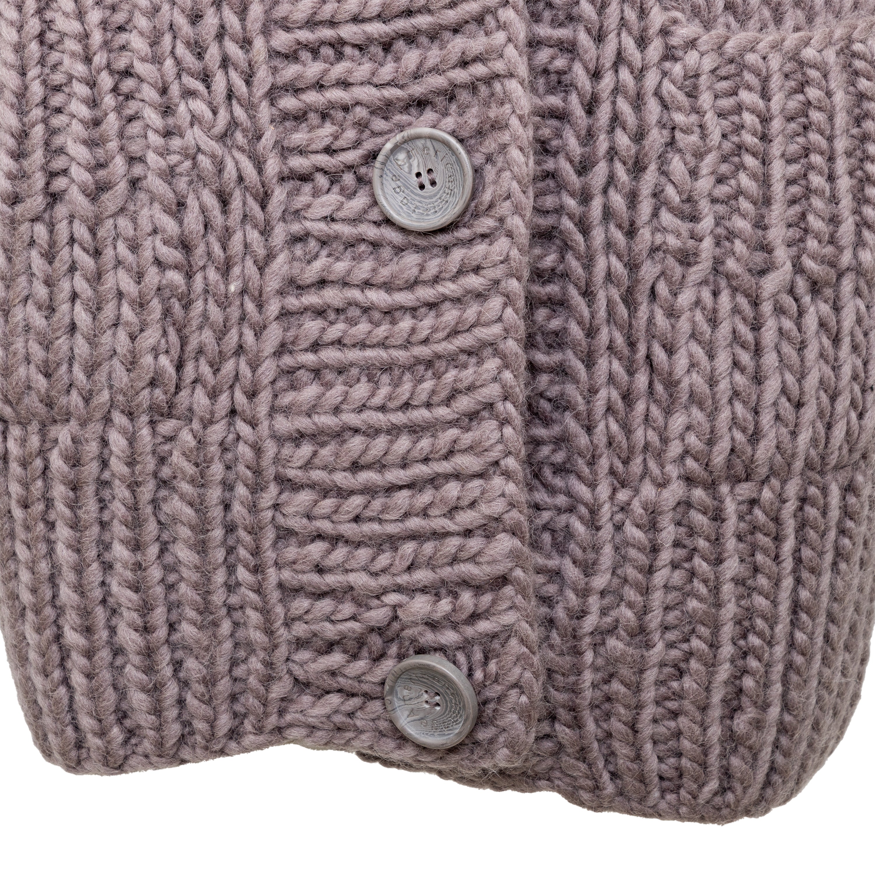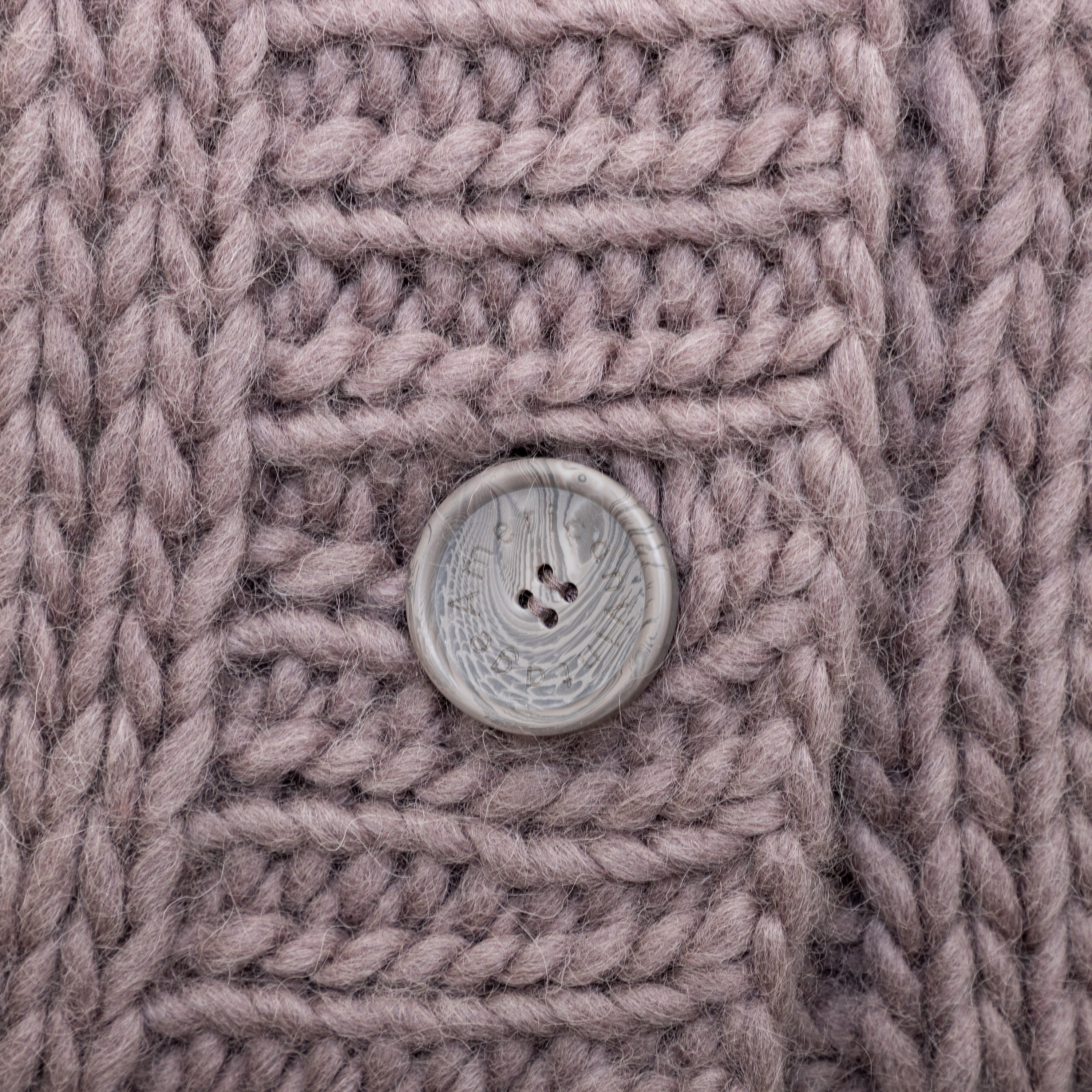 This American Vintage beige tricot cardigan is a perfect blend of style and comfort. Its long fit and half sleeves provide a flattering silhouette while the central buttoning and front pockets add functionality. Hand crafted with braided wool, this cardigan is a timeless addition to any wardrobe.