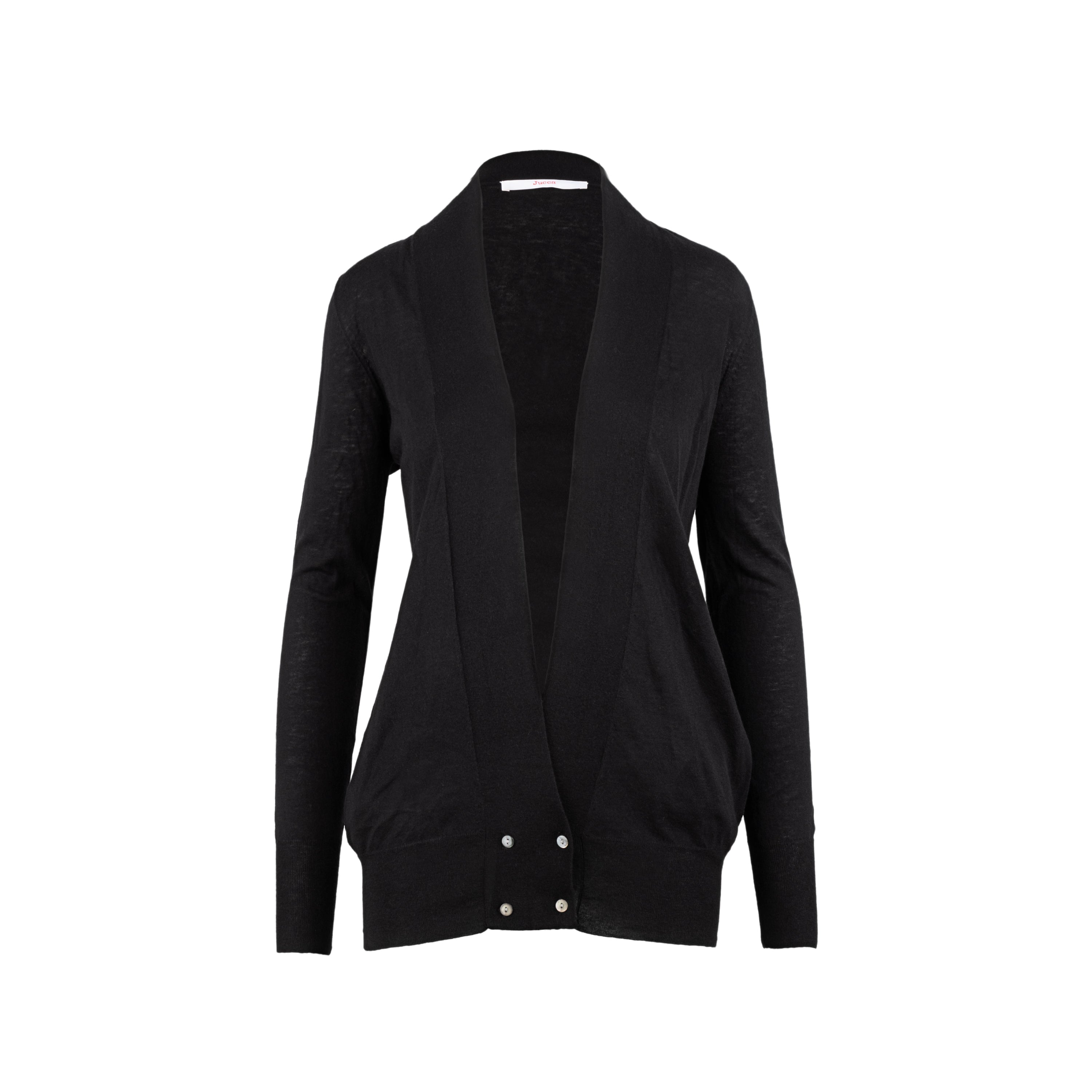 Jucca black cardigan with long sleeves and double buttoning, offering a stylish and versatile addition to any wardrobe for both casual and formal looks.