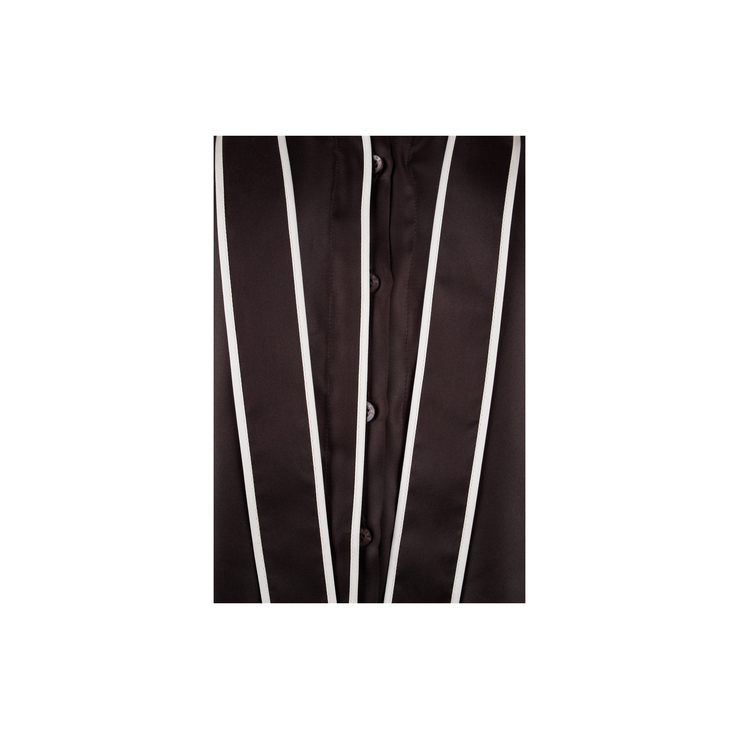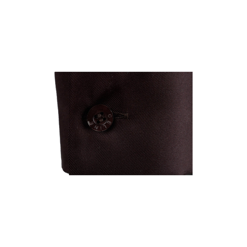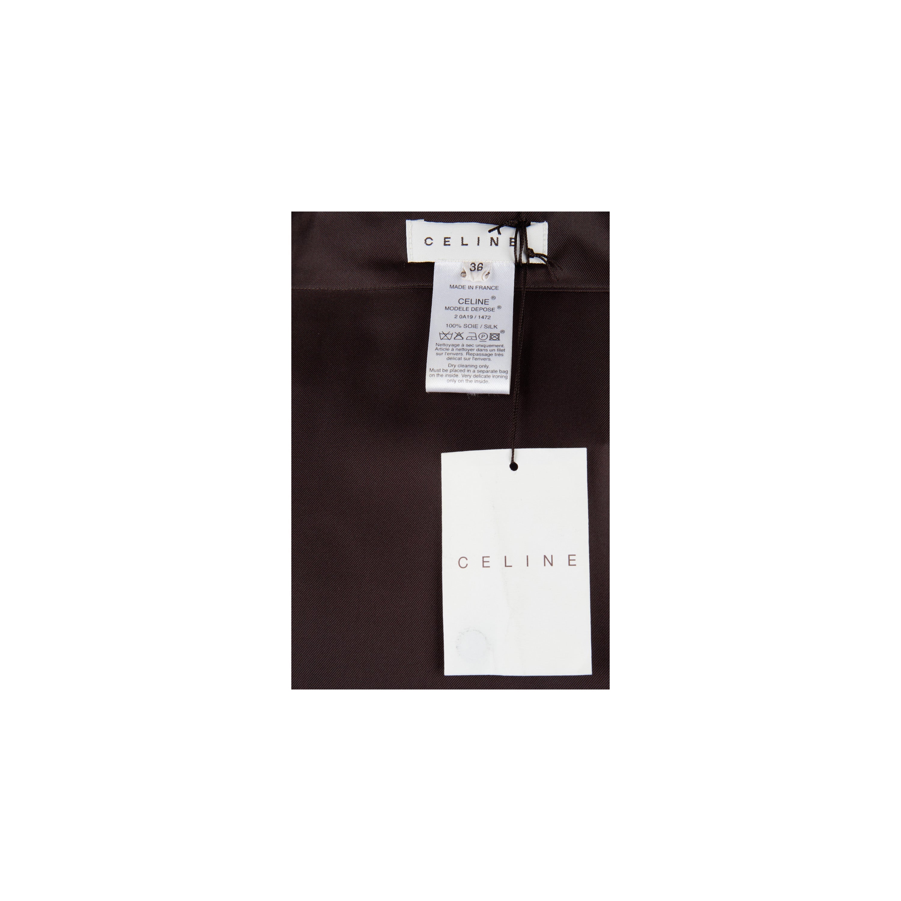 This Celine Contrast Top with Collar is the perfect professional piece for any wardrobe. Crafted with luxurious silk in dark chocolate brown, it features long sleeves, shirt-styled collar, and sleeve cuffs. A contrast piping and panels from the shoulder add to its sleek design. The perfect blend of sophistication and modern design.