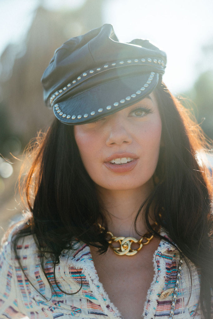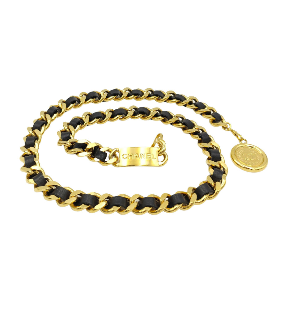 CHANEL 95P LOGO TAG AND PENDANT BLACK LEATHER GOLDEN METAL CHAIN BELT