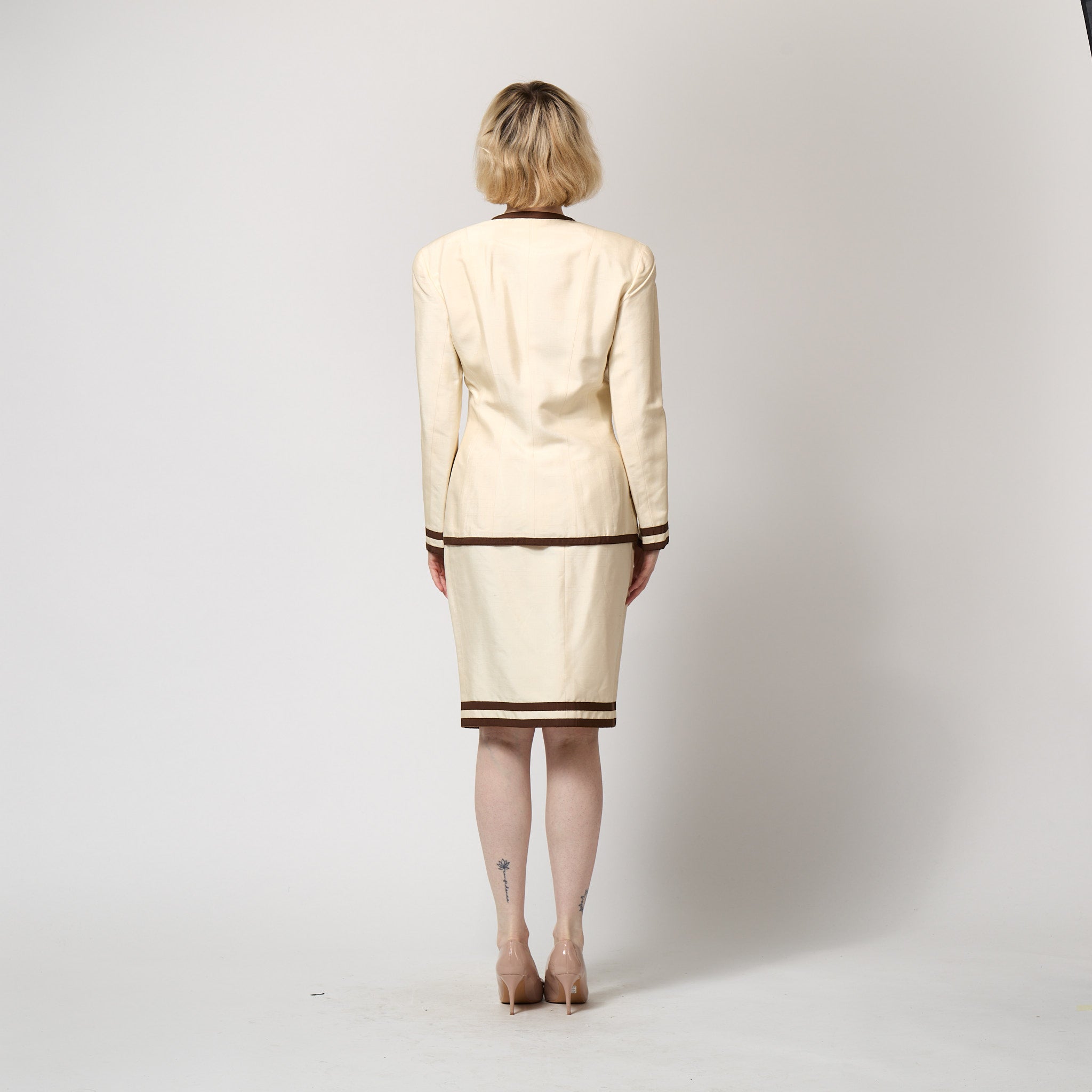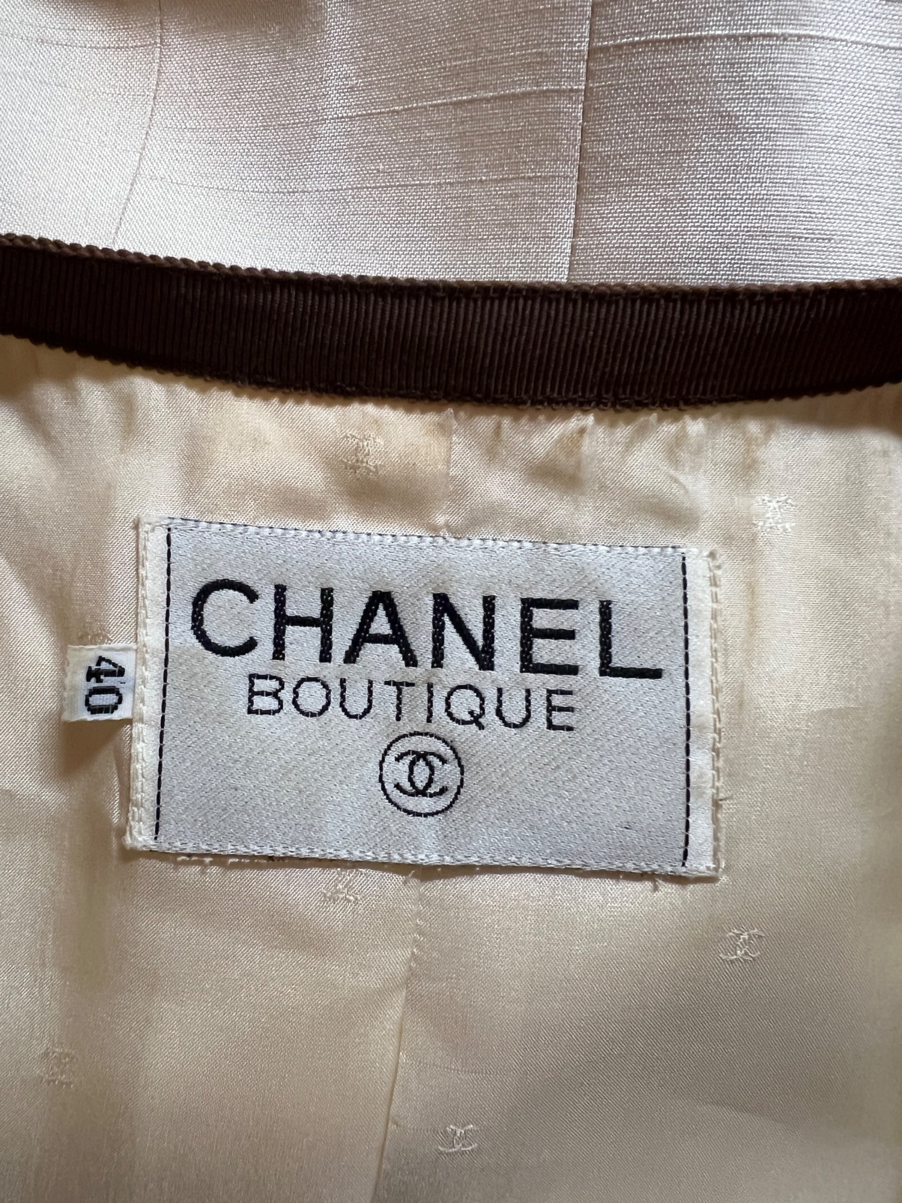 1991 Runway Chanel Cream and Brown Skirt Suit