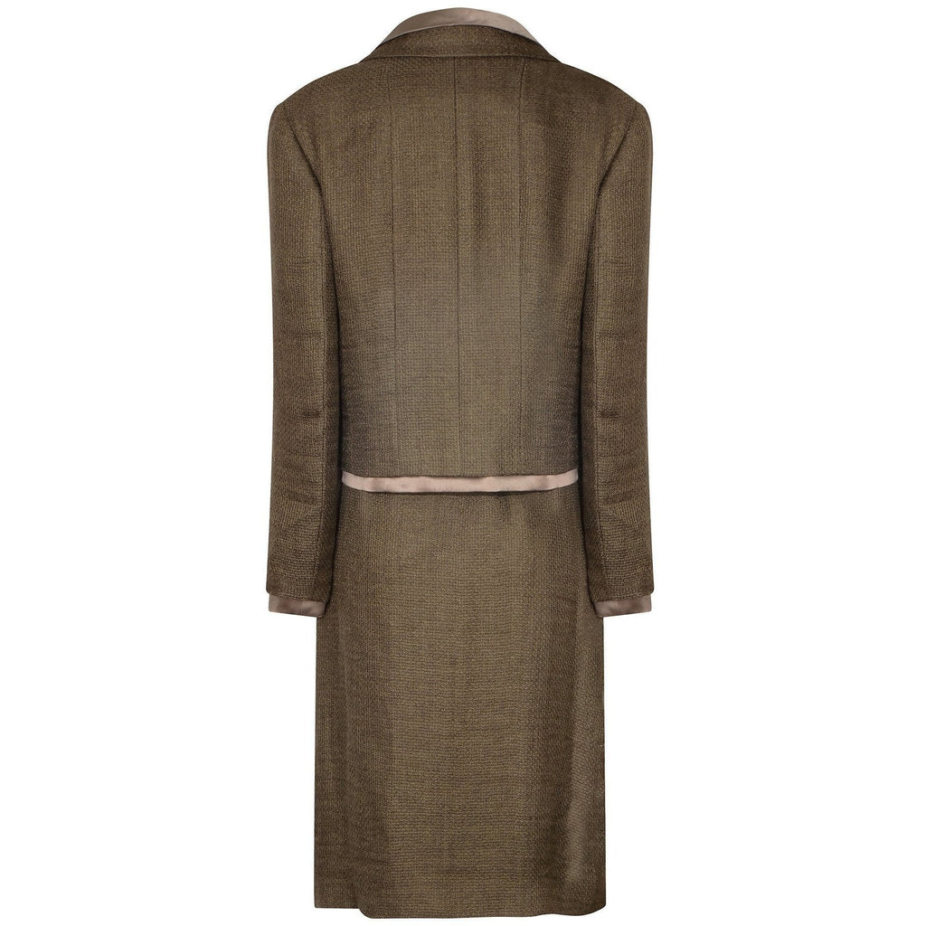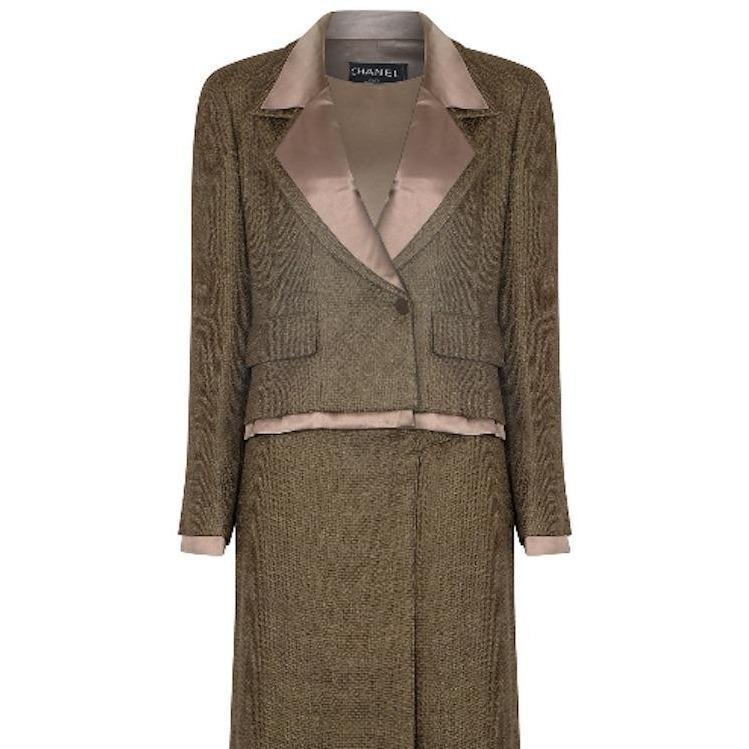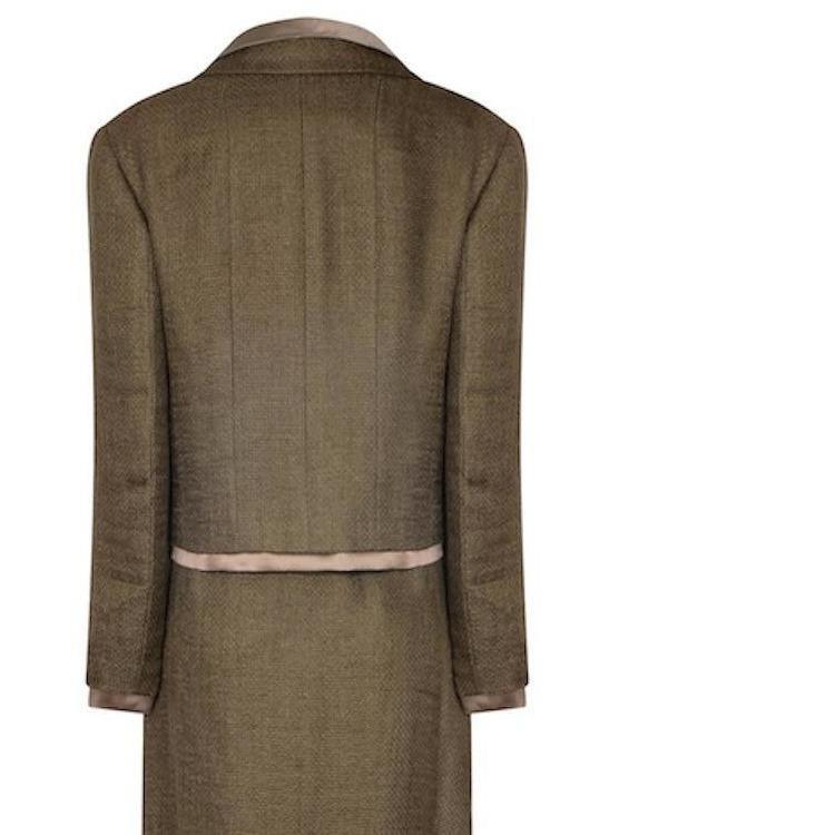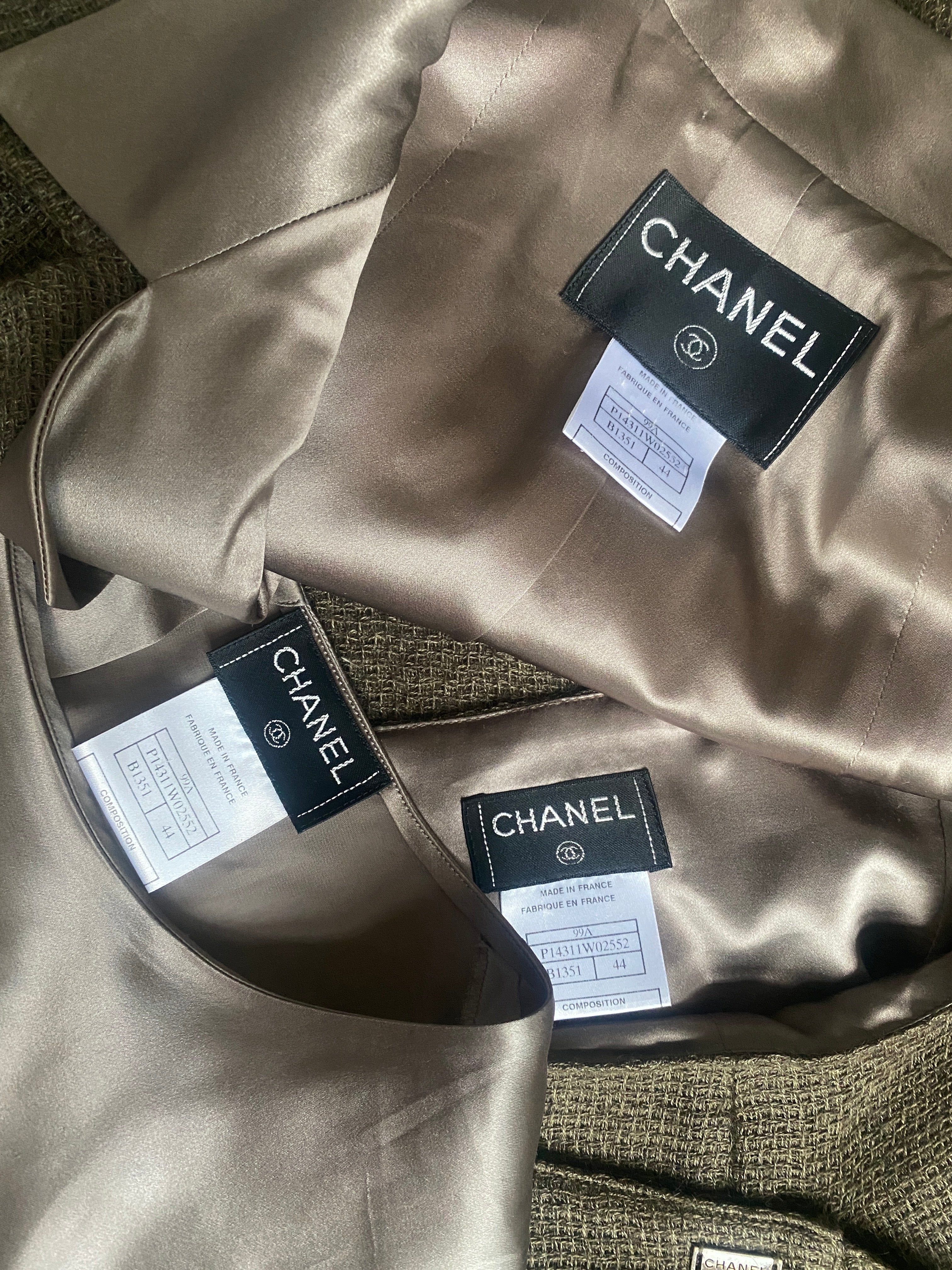 1999 Chanel Green Brown Tweed and Silk Three Piece Suit