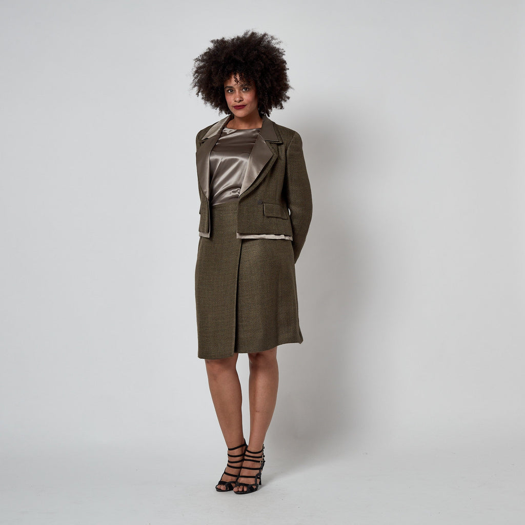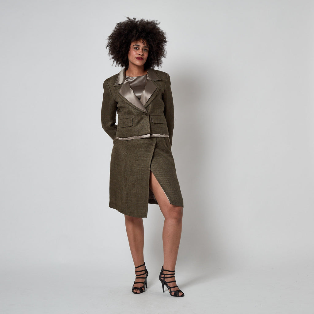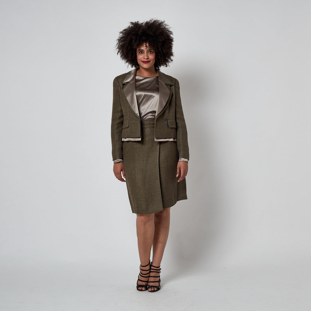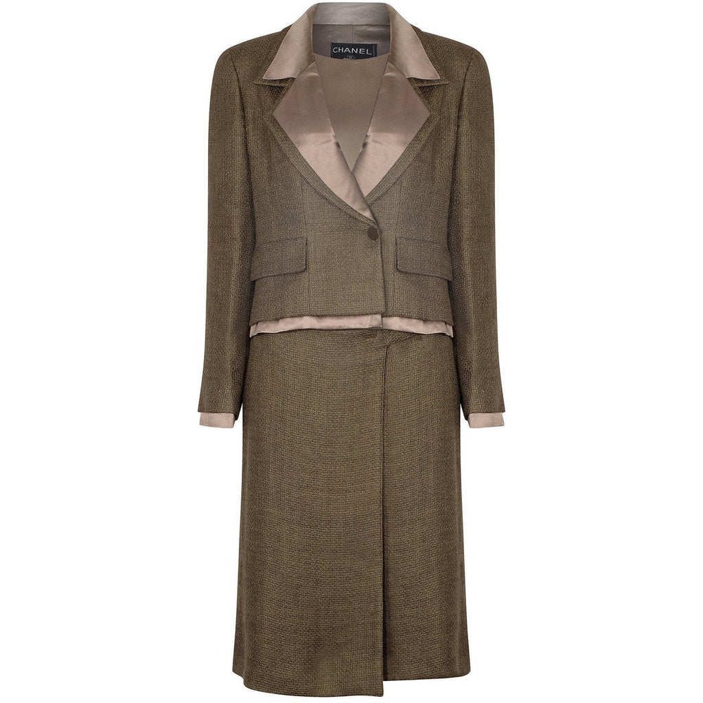 1999 Chanel Green Brown Tweed and Silk Three Piece Suit
