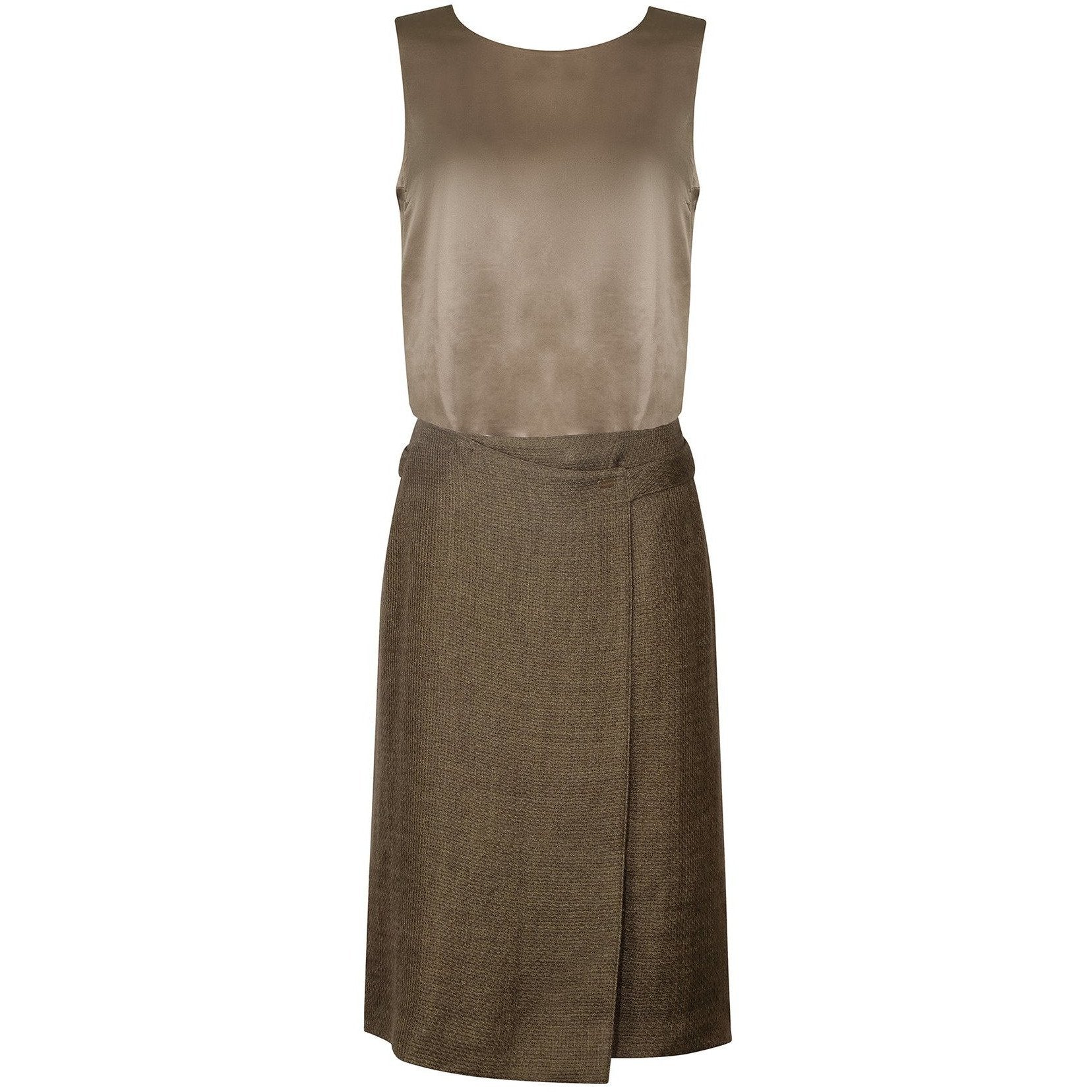 This is a sophisticated look from the Chanel 1999 autumn/winter collection comprising of a three piece skirt, jacket and cami ensemble. The tweed knit single-breasted jacket with 2 x patch pockets and wrap tie knee length skirt is made up of a 60% mohair and 40% lyocell blend in an usual shade of deep olive/chestnut brown. The silk scoop neck, button back camisole top is in a complimentary mushroom grey/brown tone. The notch lapel and cuffs on the jacket together with the linings are all in the matching silk whilst the minimalist buttons are all marked Chanel. This ensemble is in excellent, barely worn condition with just the faintest signs of gentle age appropriate use and wear. All three pieces are marked a vintage French 44 which roughly equates to a US 10 or UK 14.