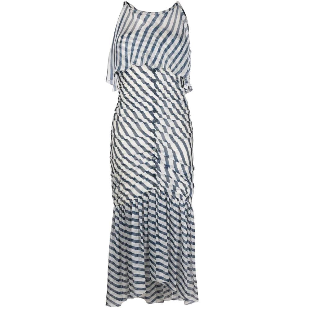 Chanel Blue and White Striped Silk Long Dress - 2000s