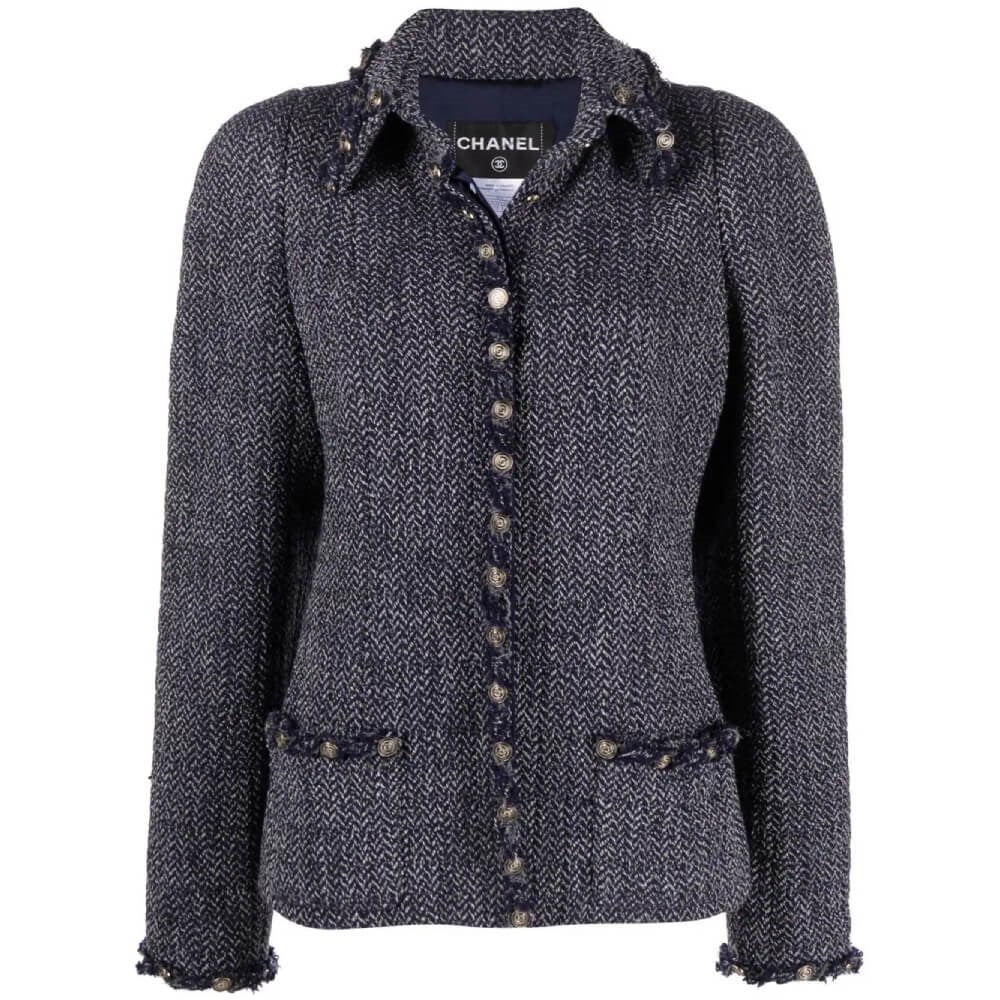 Chanel Blue Herringbone Wool Jacket - 2000s