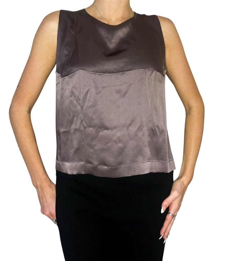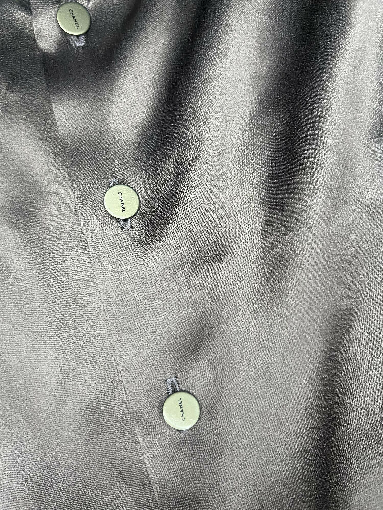 Beautiful silk sleeveless top from Chanel’s Fall 1999 Ready-to-Wear collection. In a muted plum tone, this piece is a simple and elegant addition to your wardrobe. Featuring Chanel logo-embellished buttons cascading down the back centre.