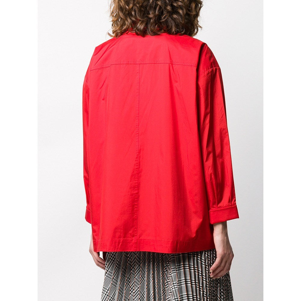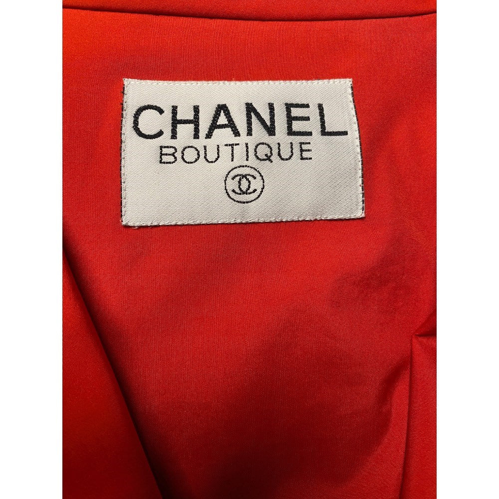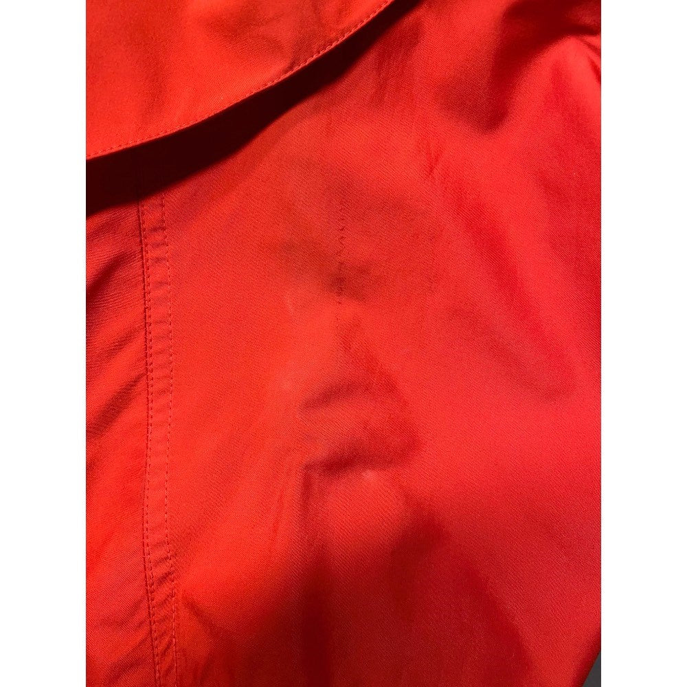 Chanel red nylon jacket. Peak lapel collar, English front closure and welt pockets.
