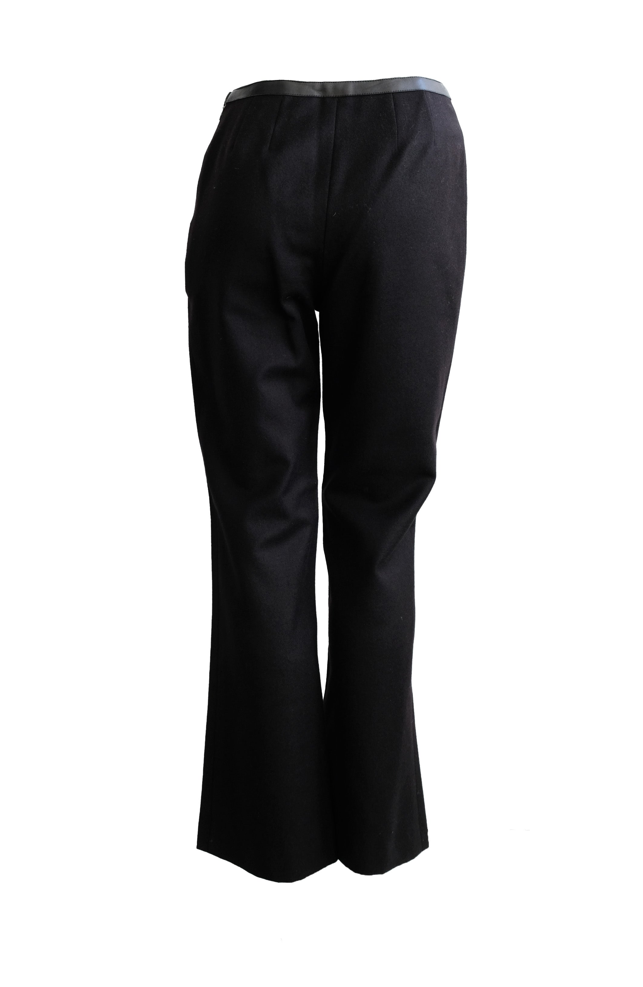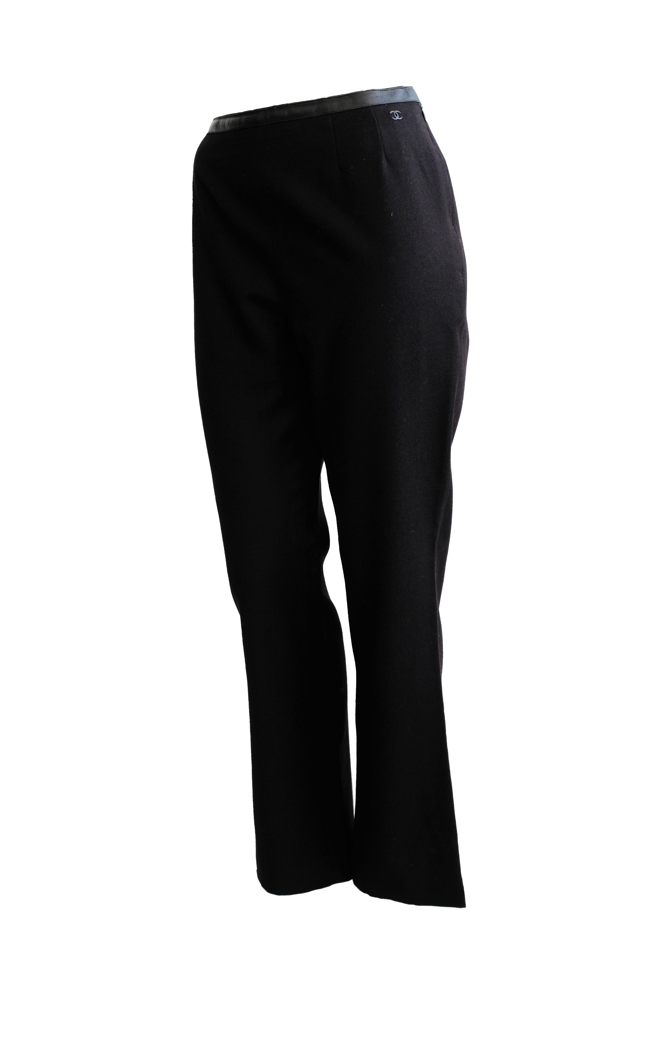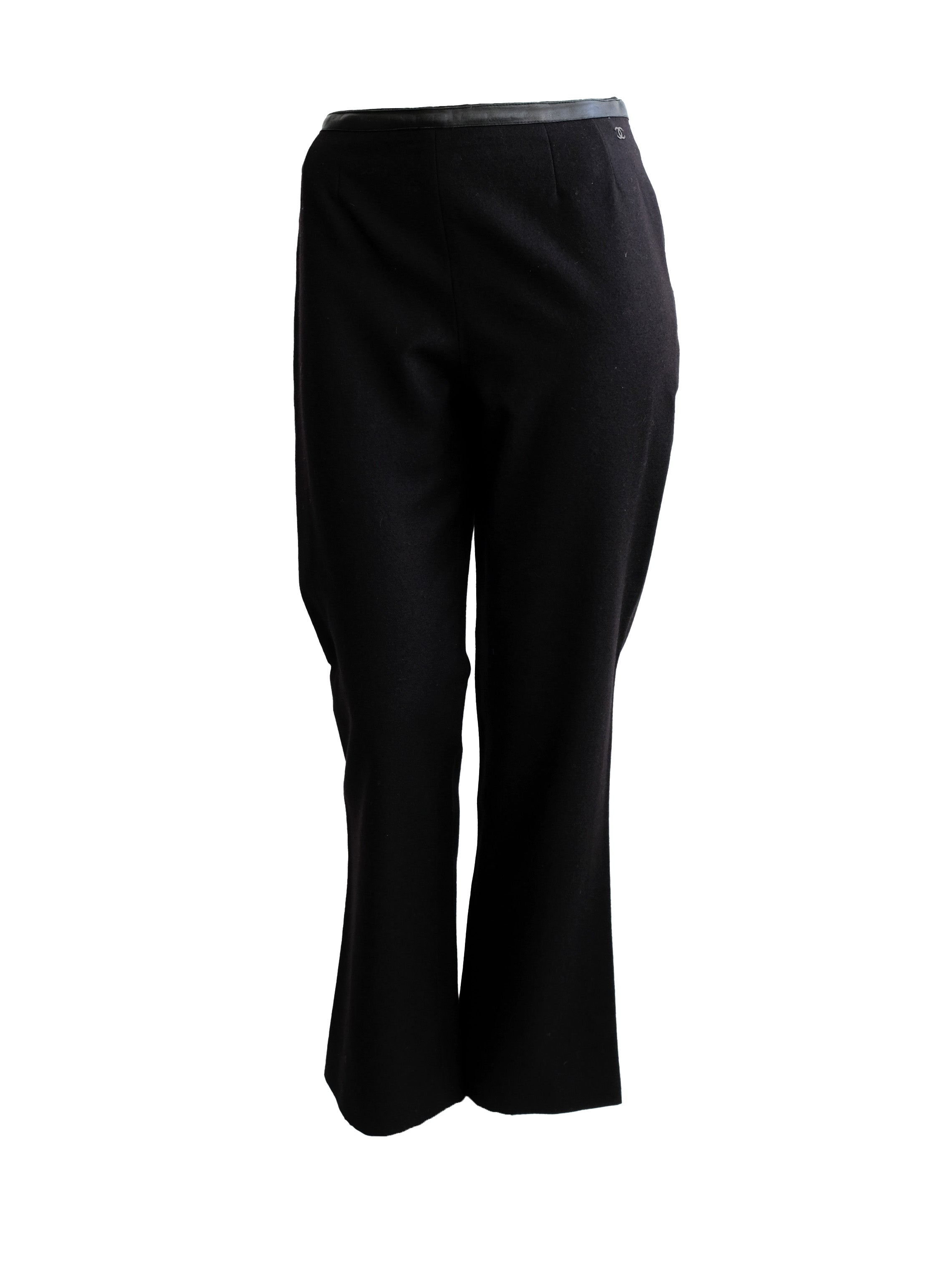 Chanel Vintage Trousers in Black Wool & Cashmere with Leather Trim, UK10