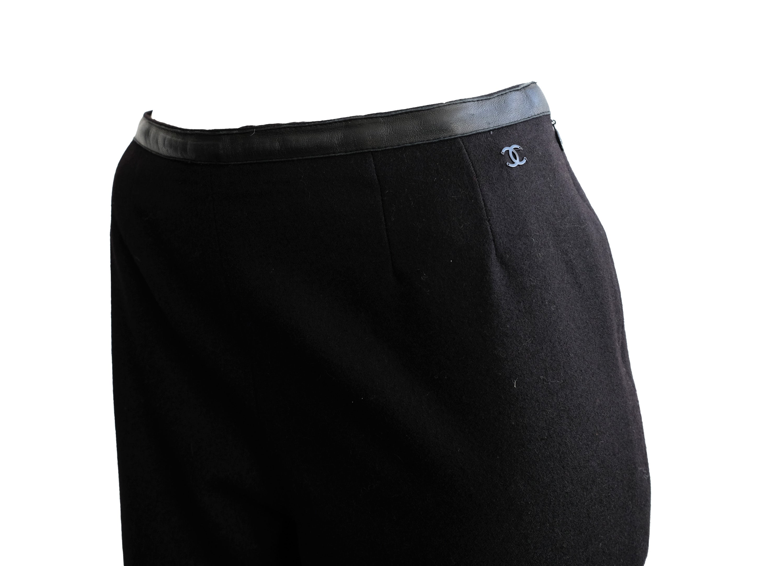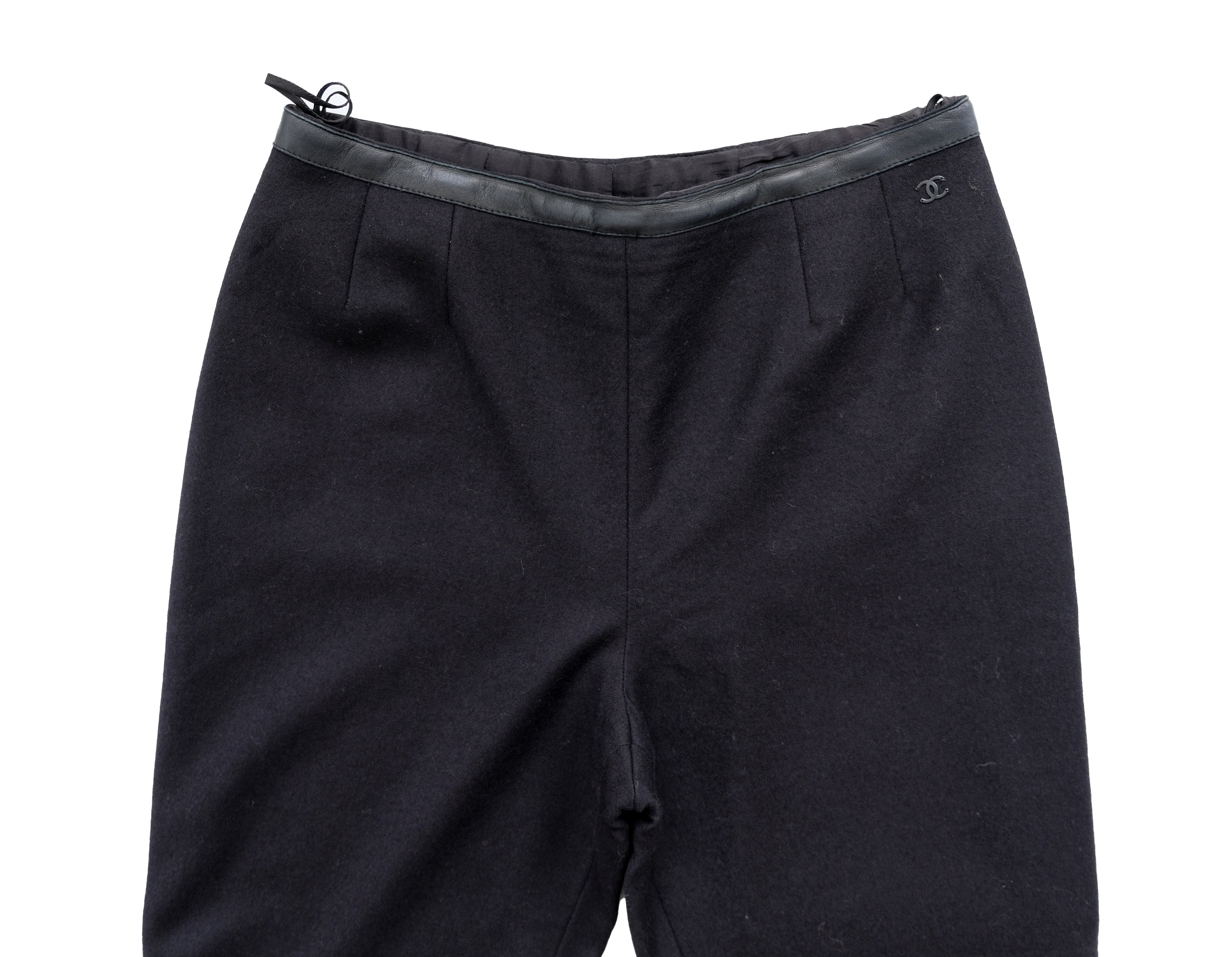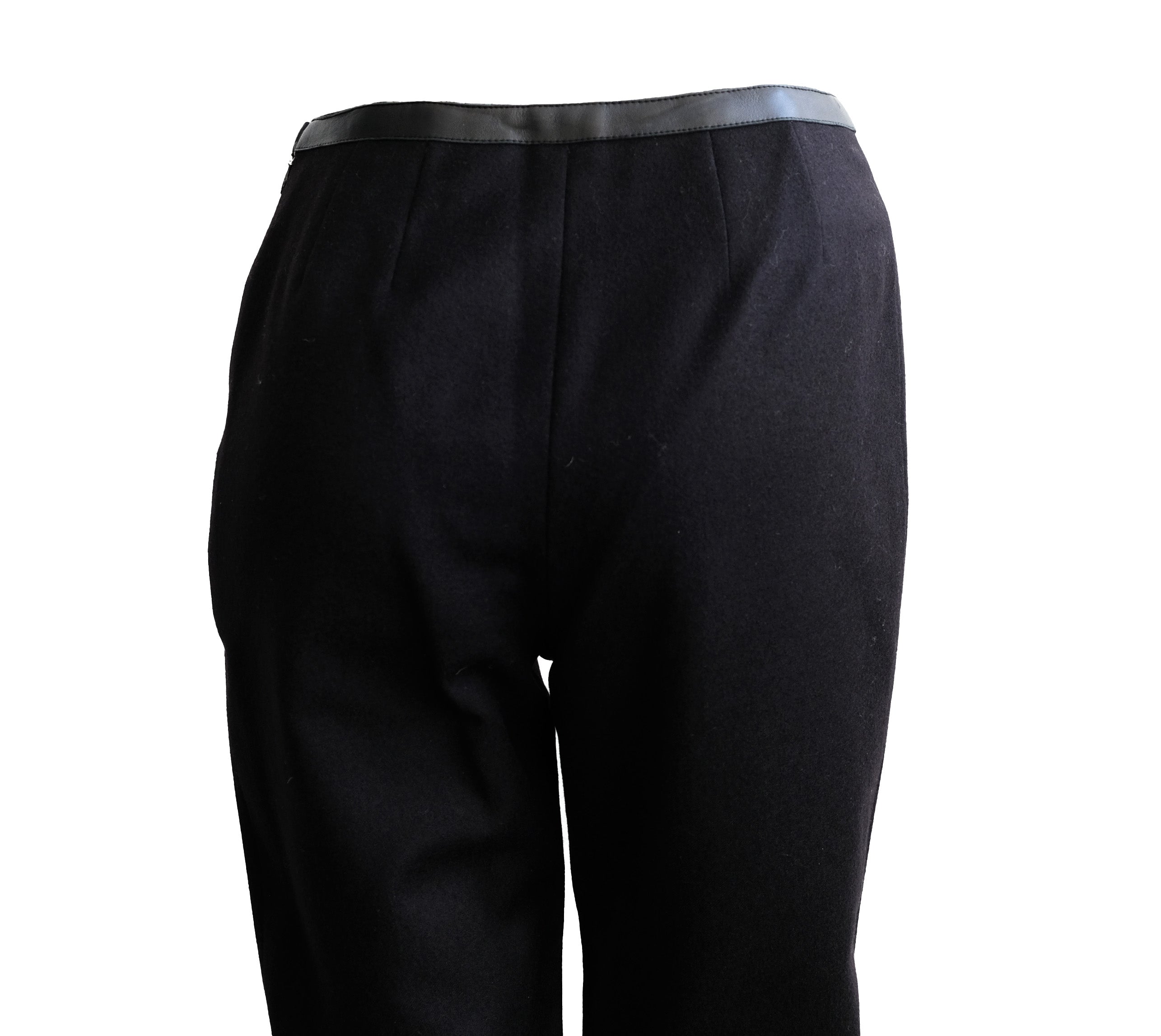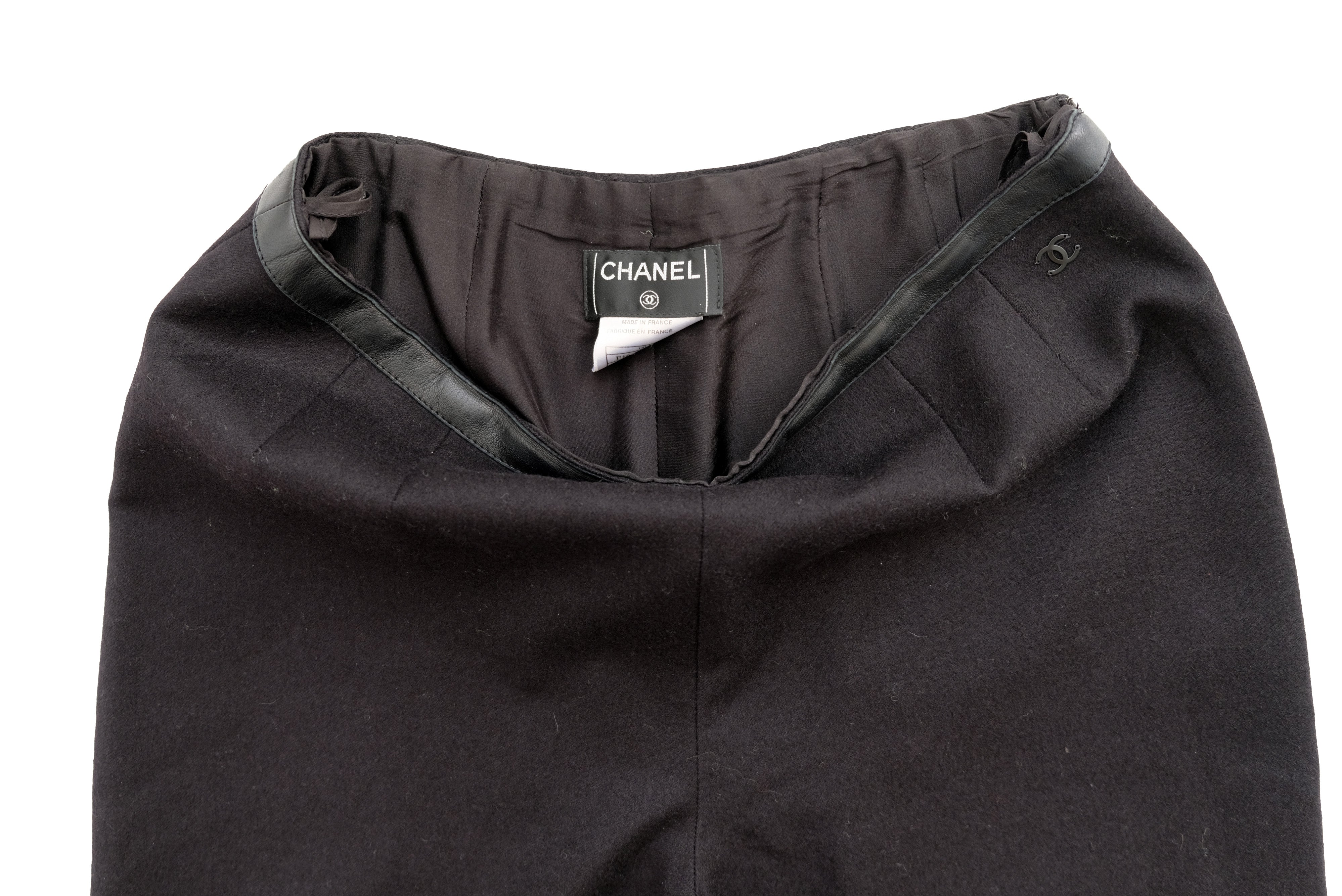 Chanel Vintage Trousers in Black Wool & Cashmere with Leather Trim, UK10