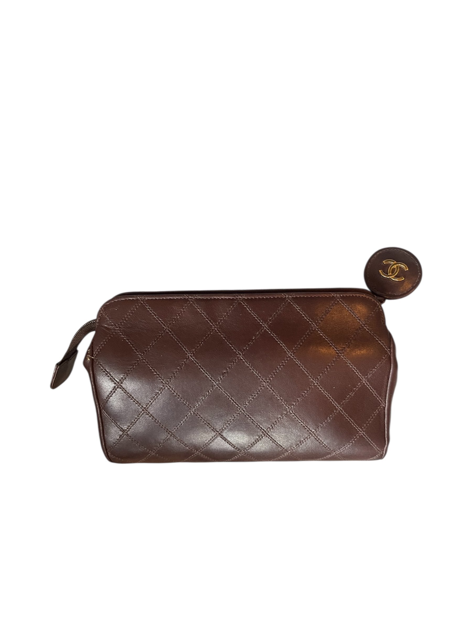 Vintage 1990s Chanel Quilted Lambskin Cosmetic / Travel Pouch – Brown