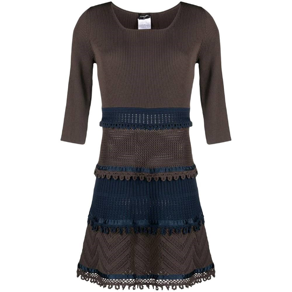 Chanel Vintage Trousers in Black Wool & Cashmere with Leather Trim, UK10