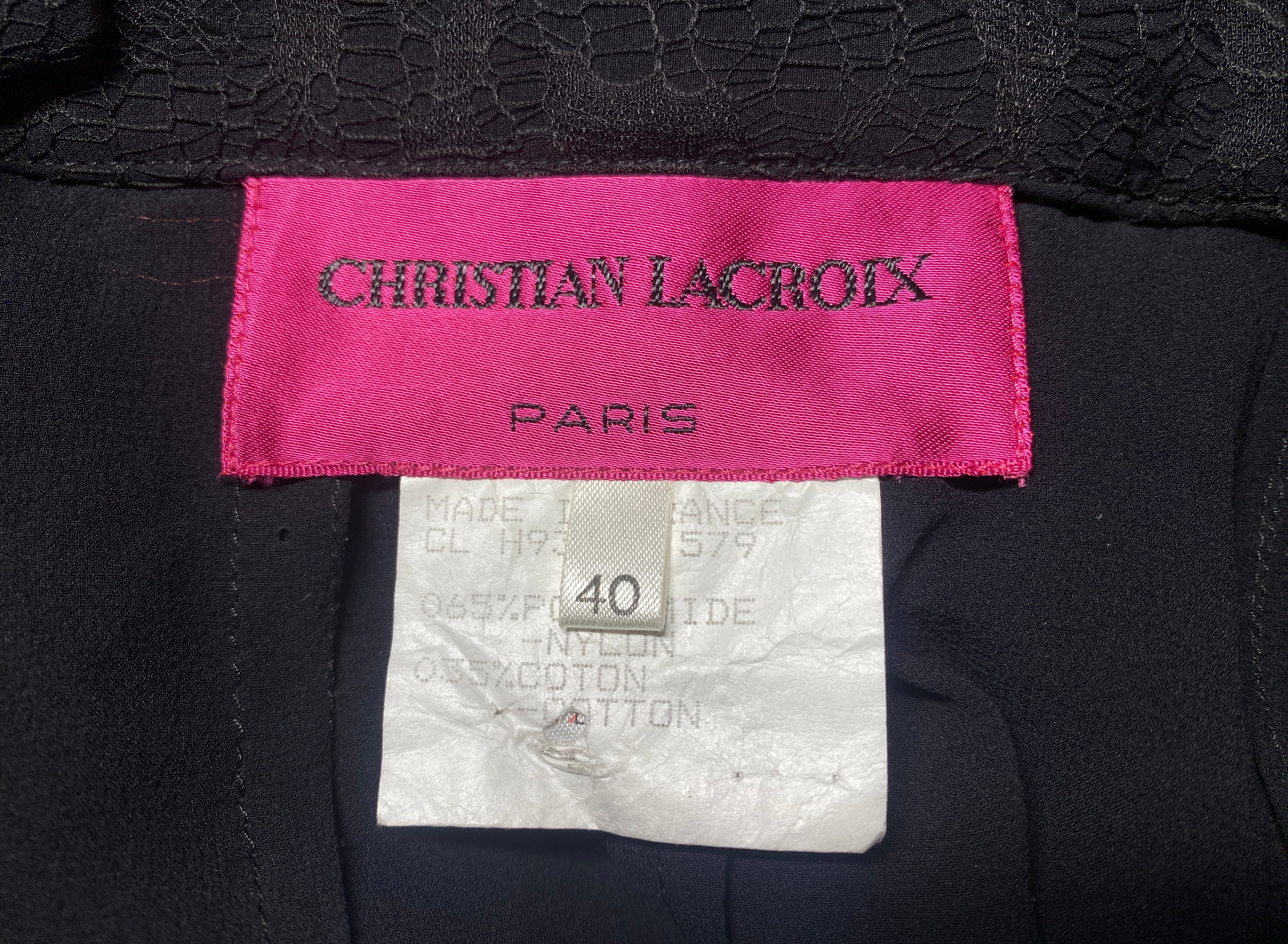 1990s Christian Lacroix Black Lace and Silk Chiffon Harem Pants