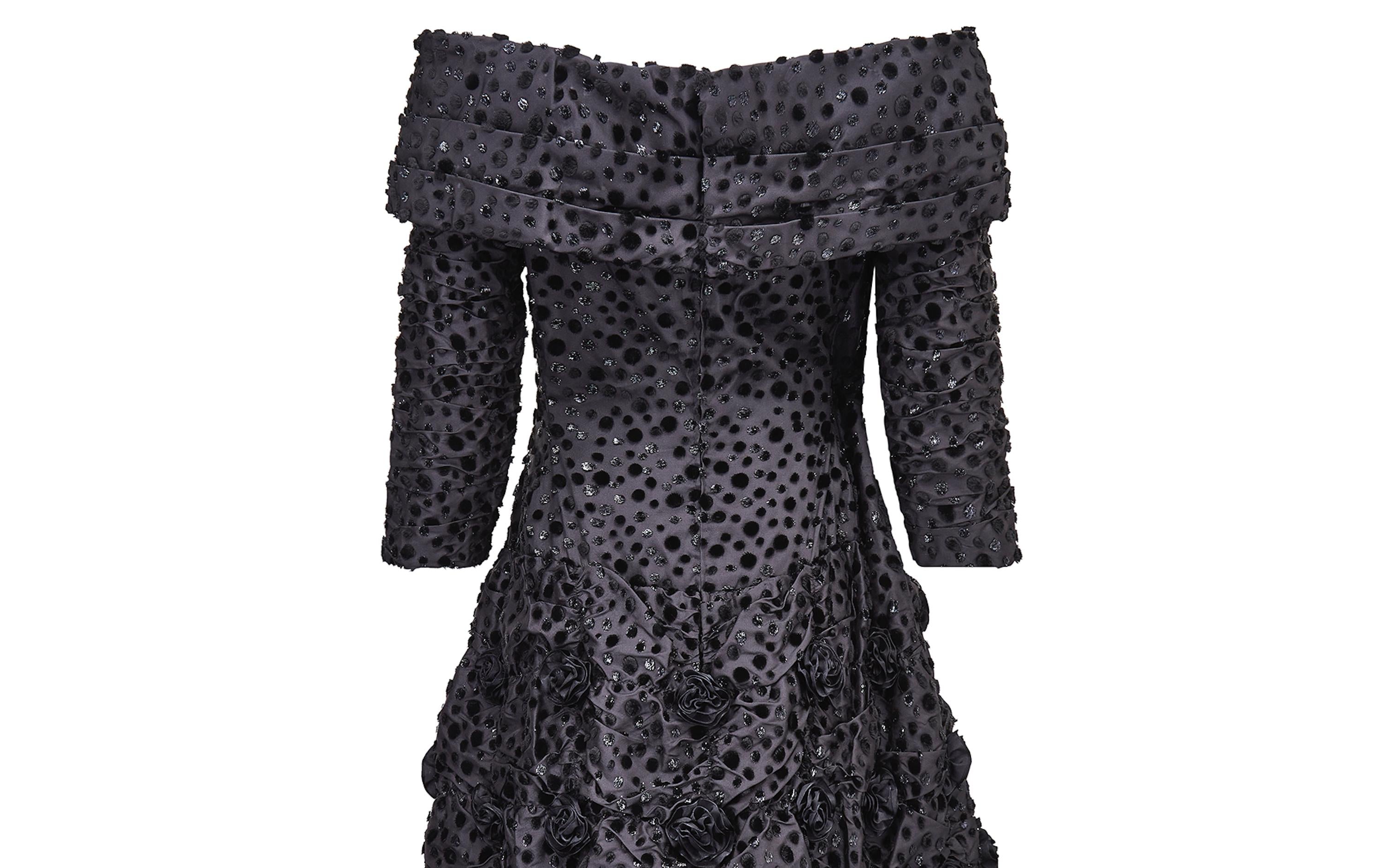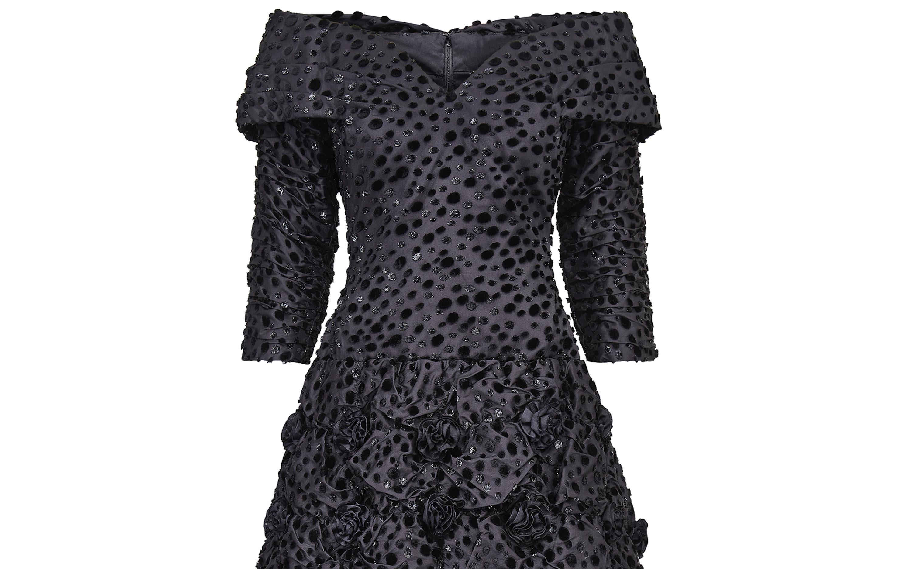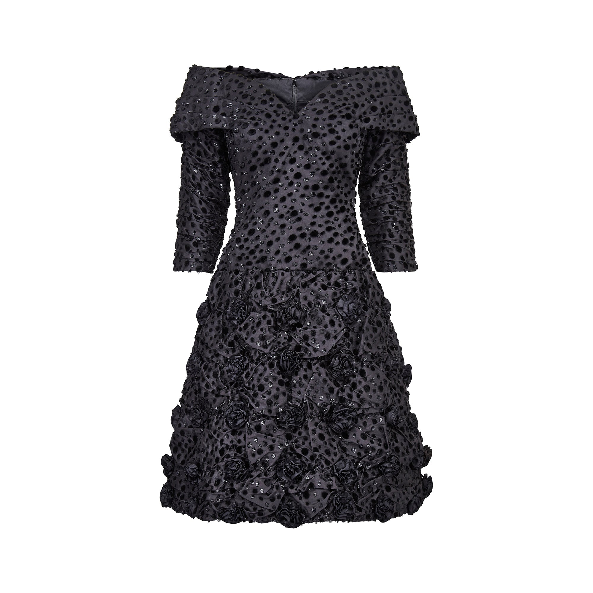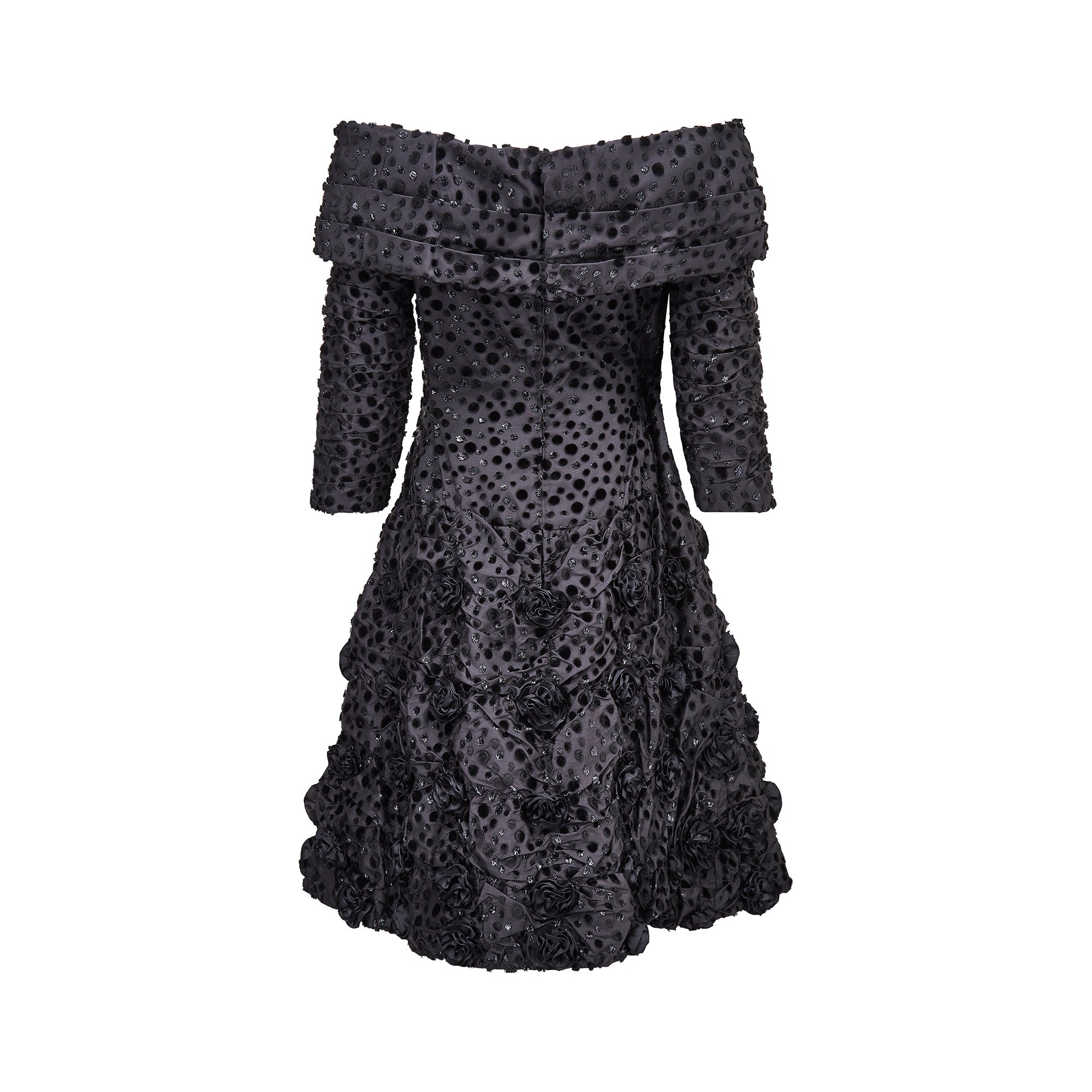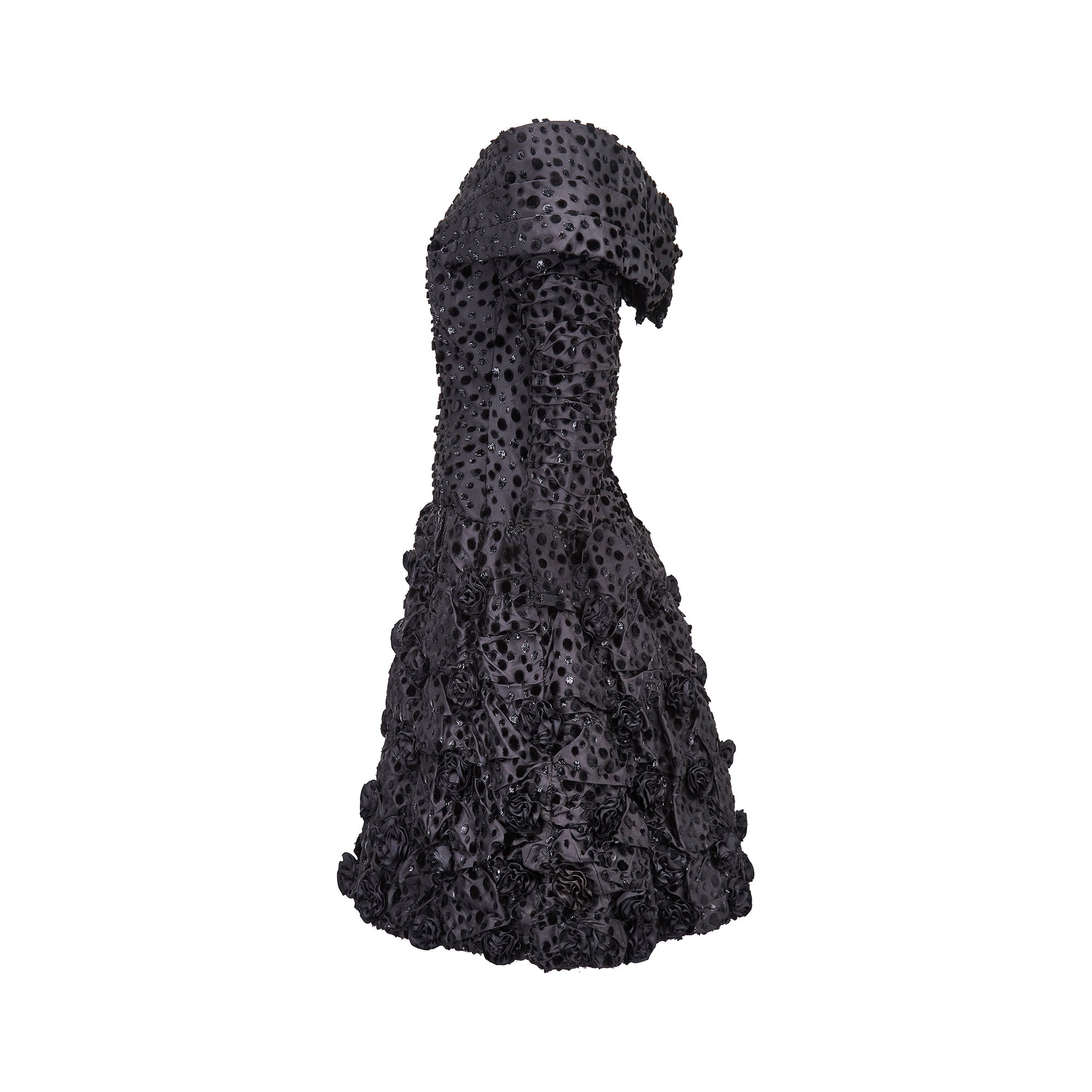 1980s Arnold Scaasi Couture Black Velvet Rosette Dress