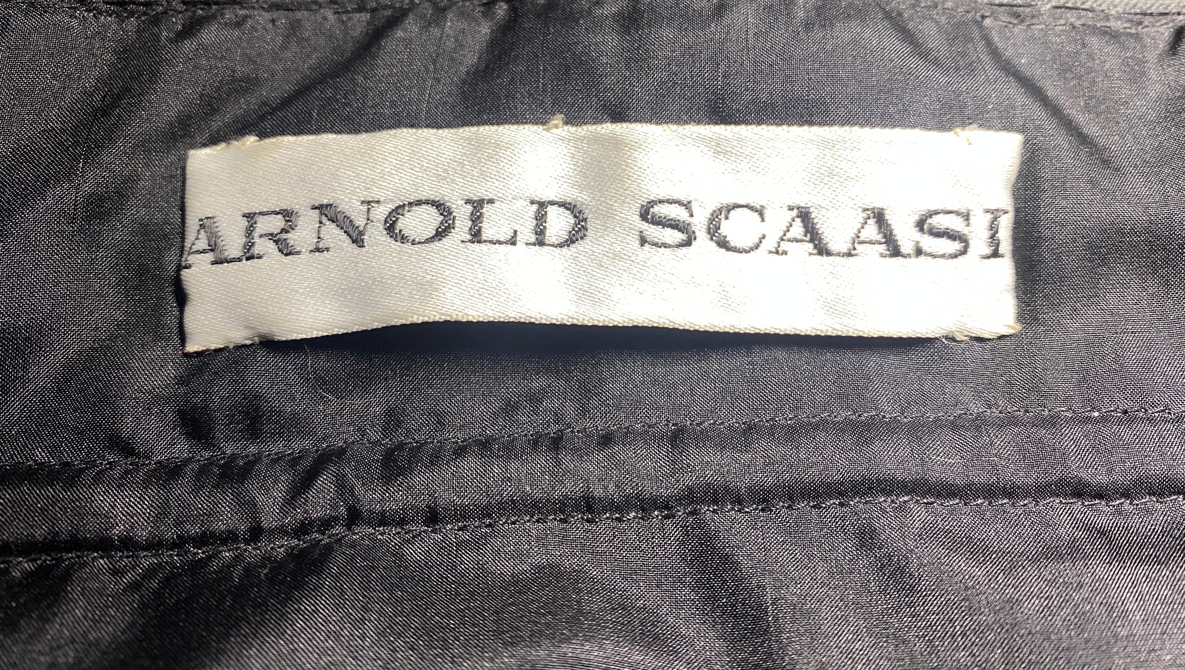 NOTES ON THE DESIGNER : Arnold Isaacs, known as Arnold Scaasi, was a Canadian fashion designer who designed dresses for a number of First Ladies including Mamie Eisenhower, Barbara Bush, Hillary Clinton and Laura Bush. Other Scaasi fans were Barbara Streisand, Joan Crawford, Ivana Trump, Princess Yasmin Aga Khan, Lauren Bacall, Elizabeth Taylor & Catherine Deneuve to name a few. His designs were noted for their tailoring and he became synonymous with glamorous evening wear and cocktail dresses.